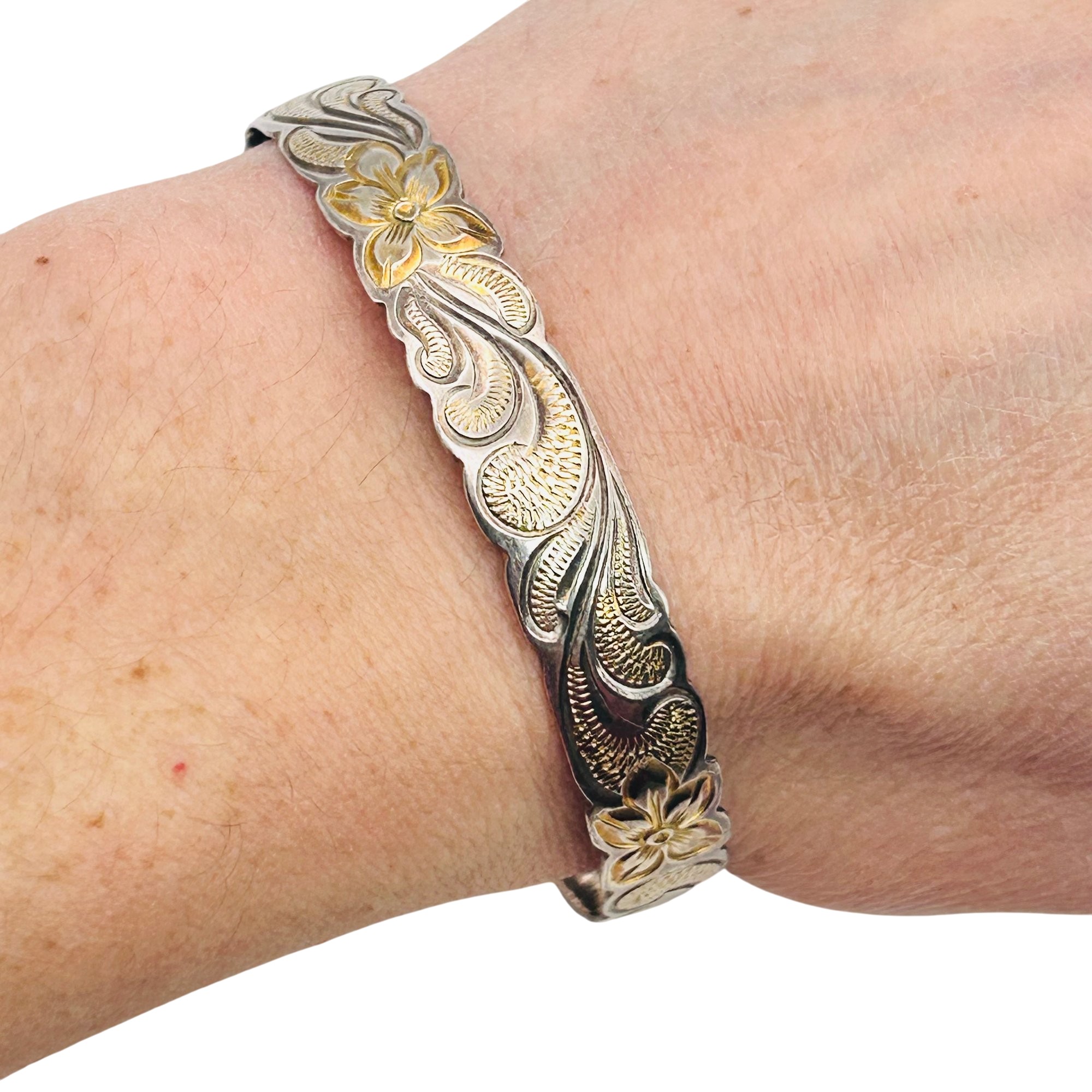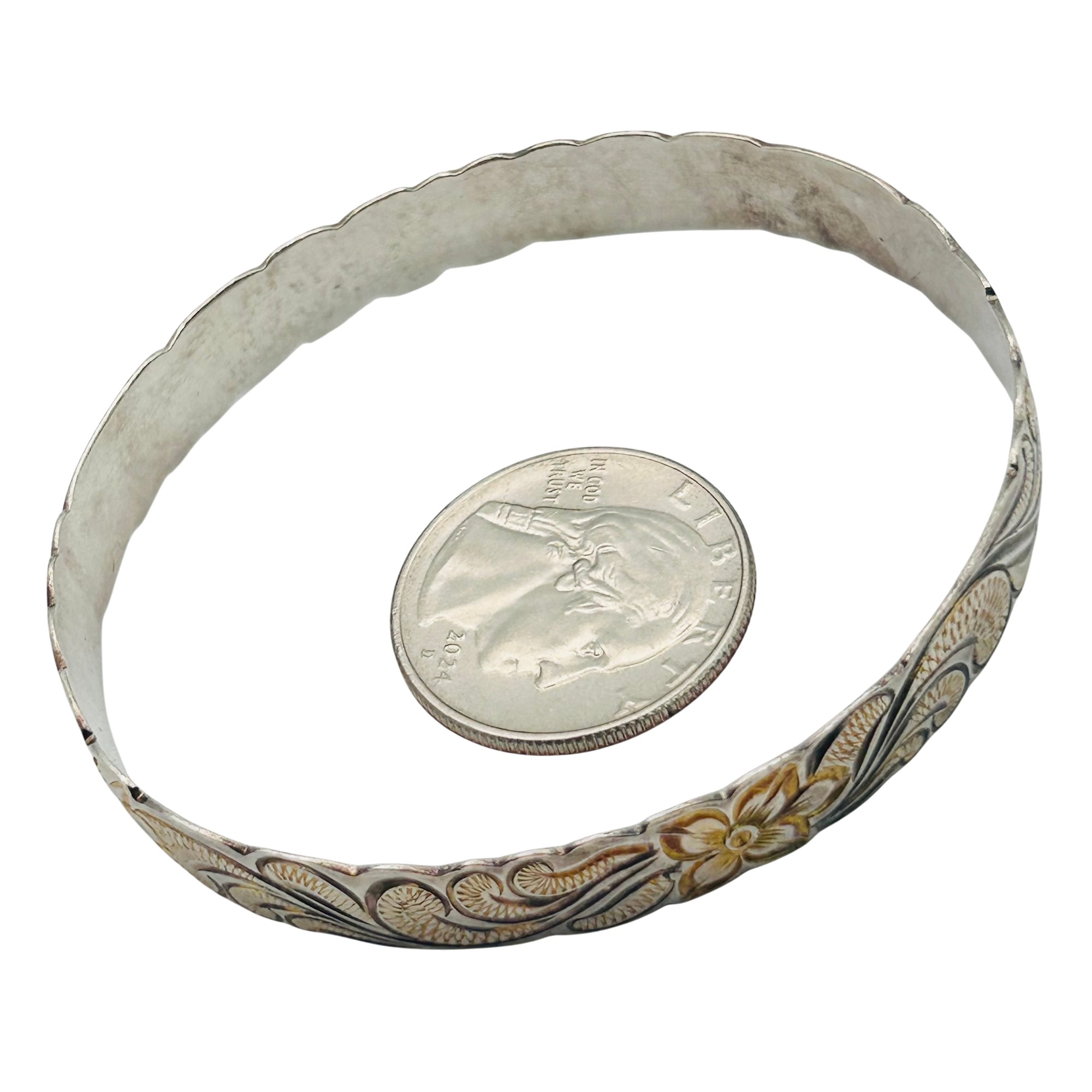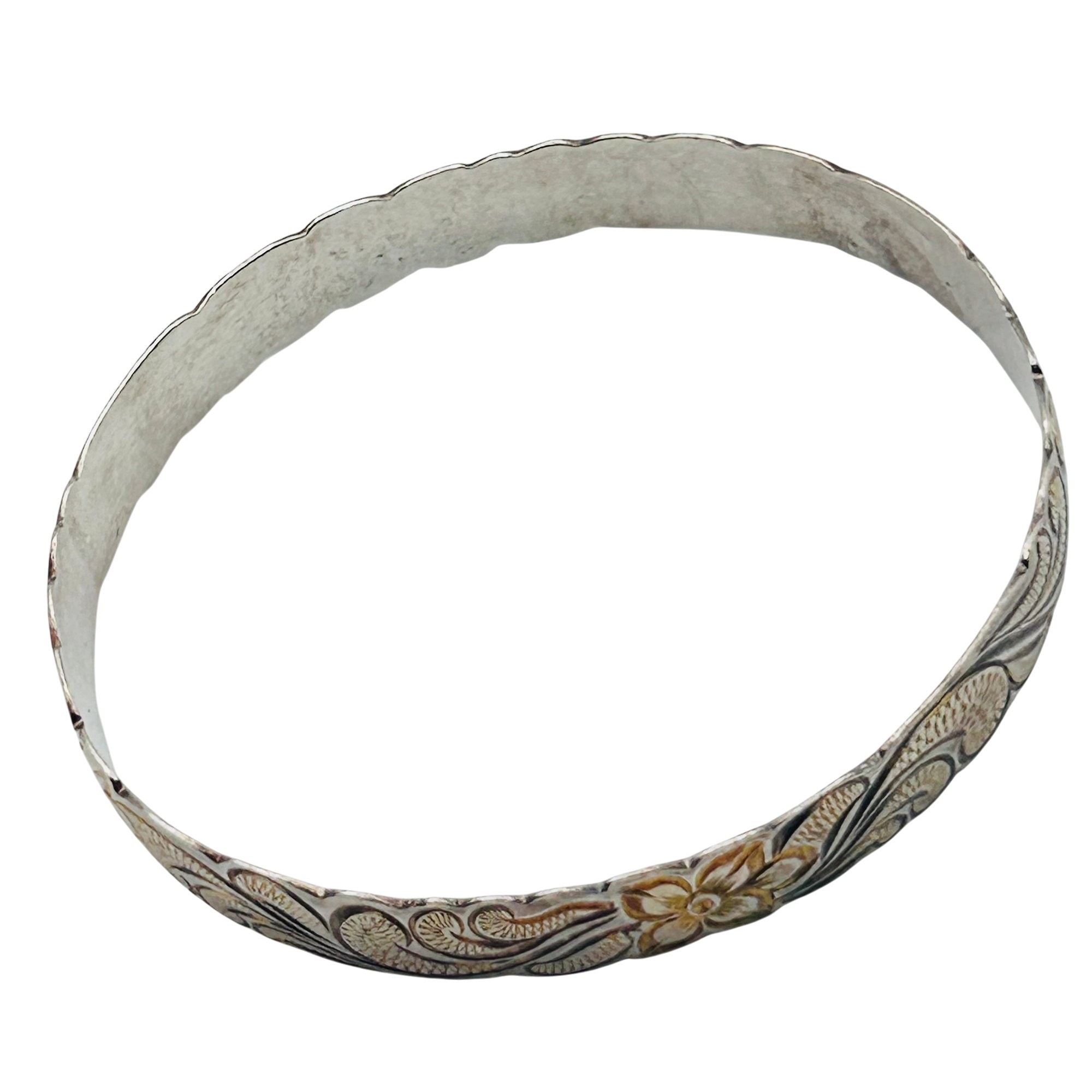 MD Sterling Flower Detail Bangle Bracelet