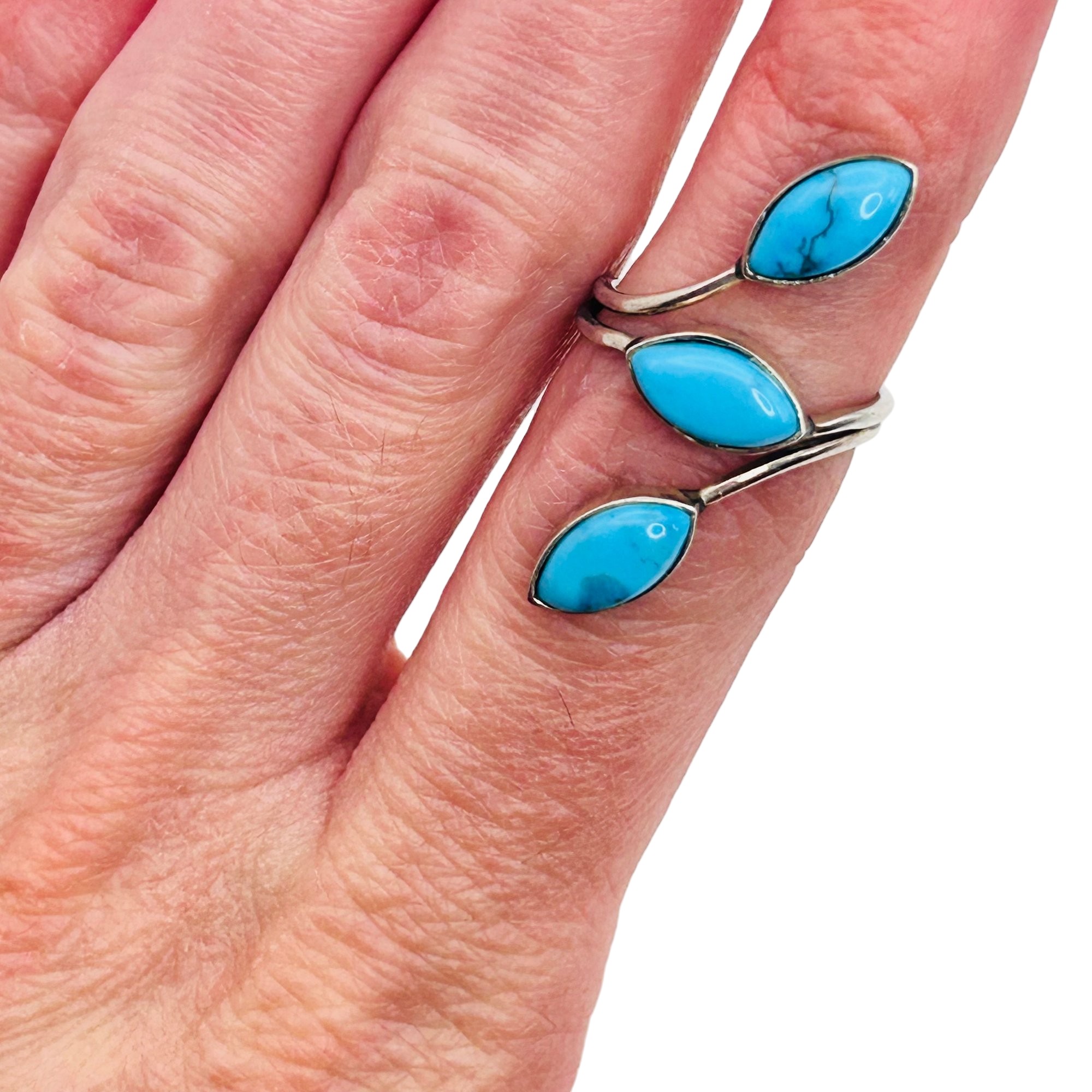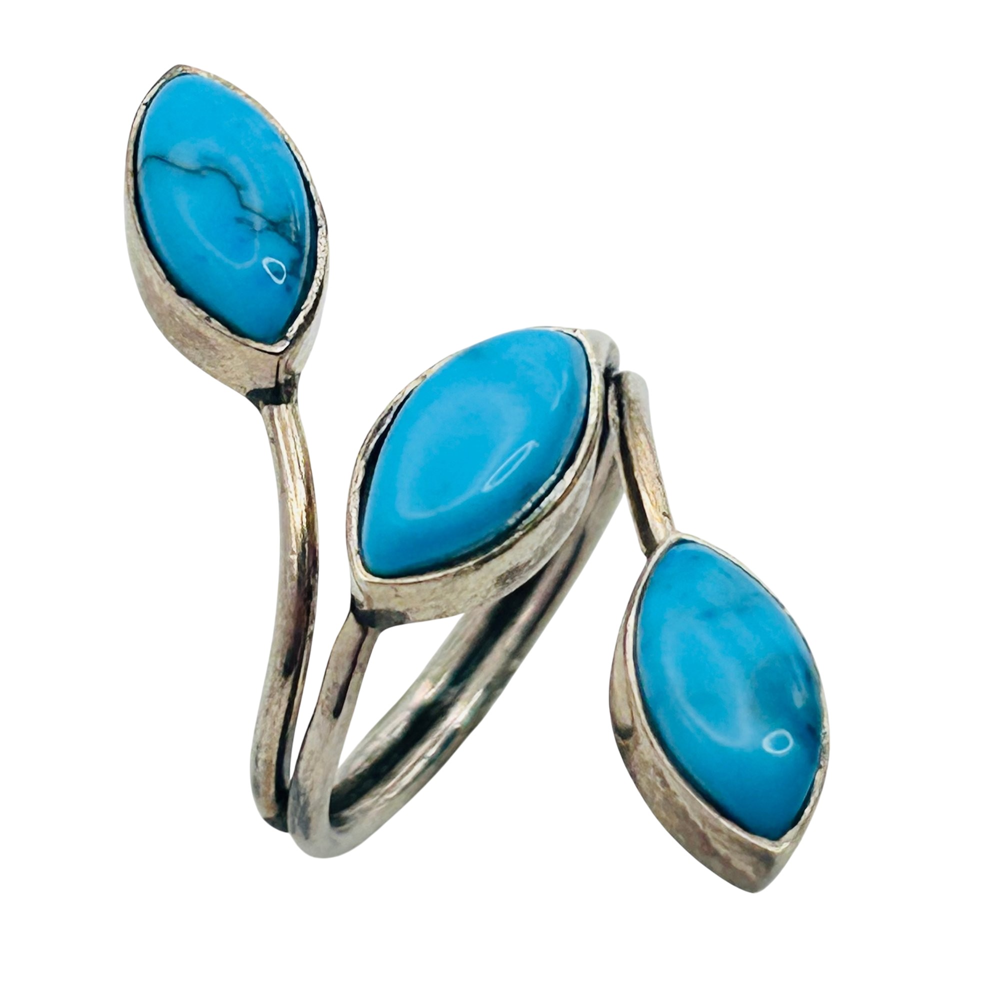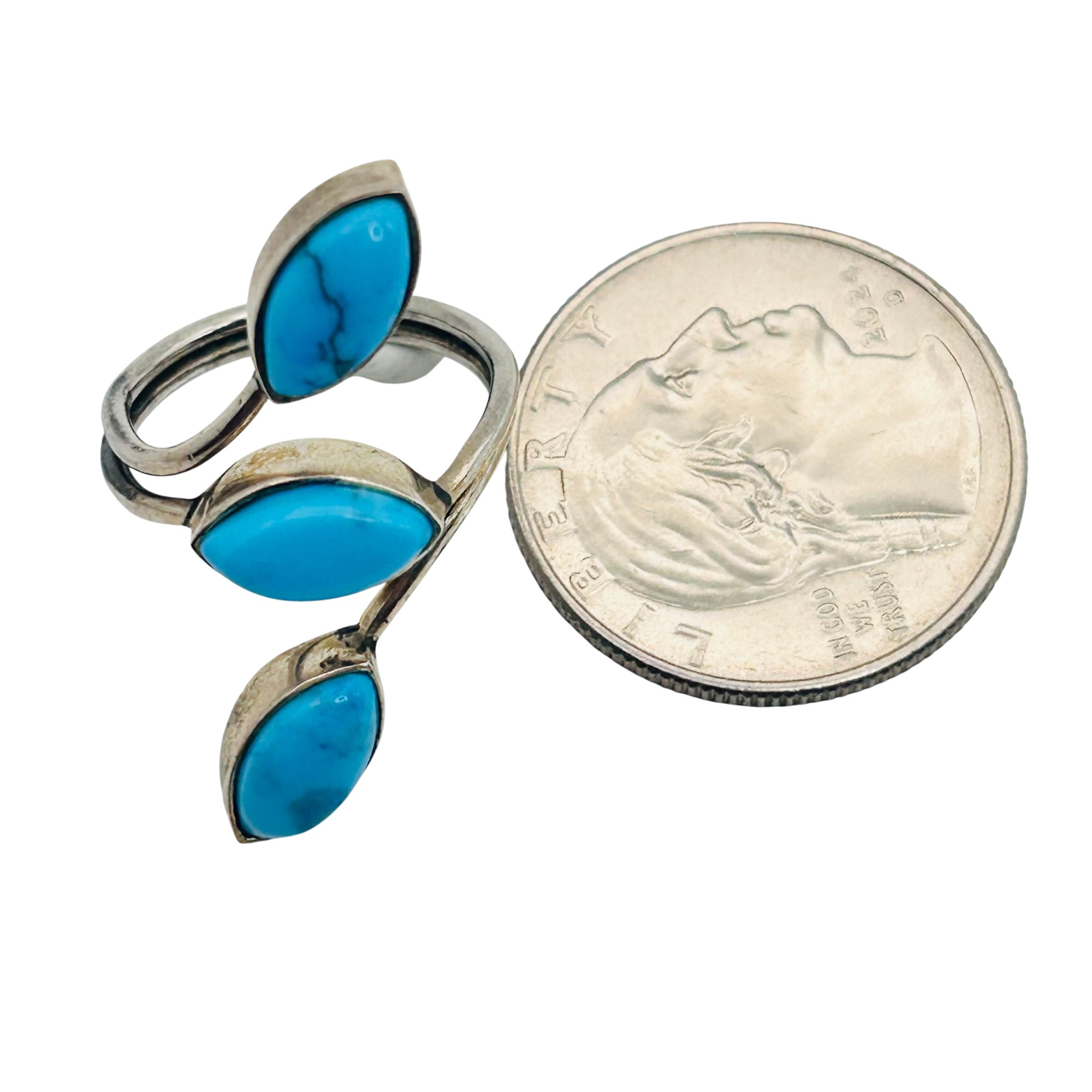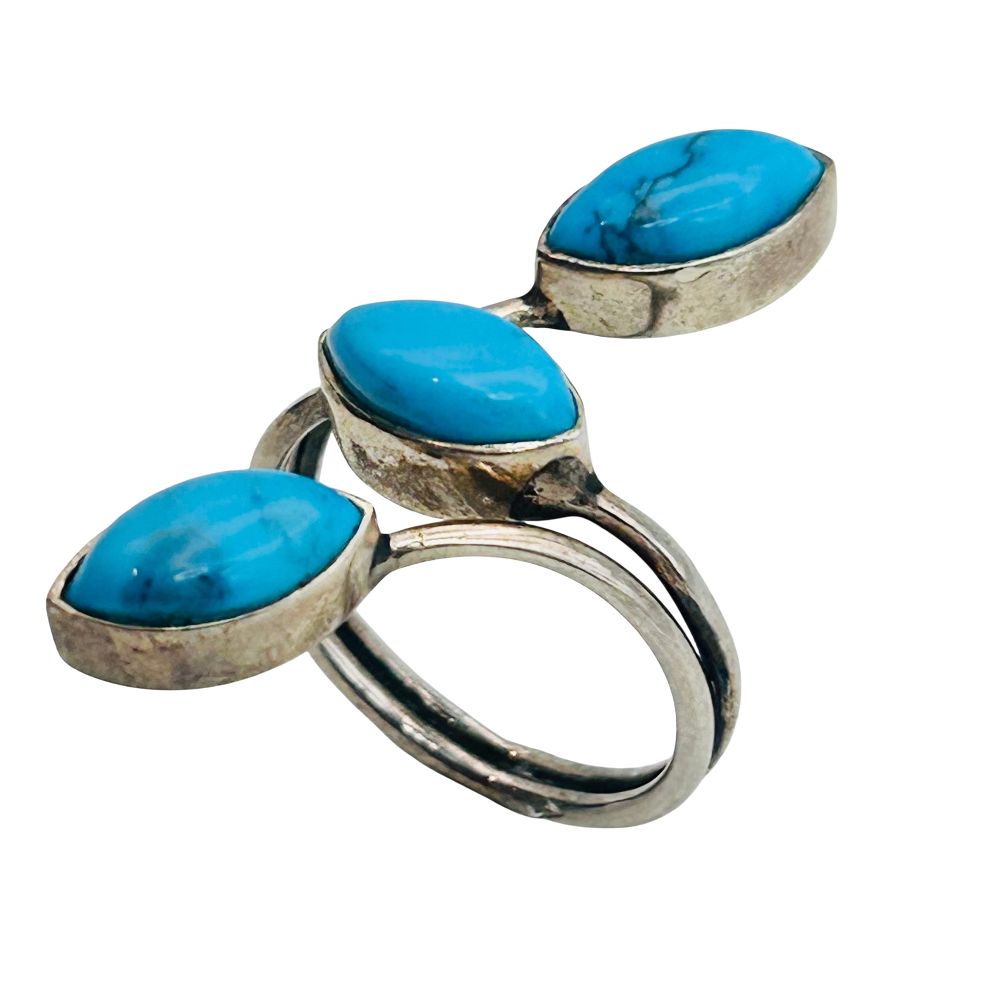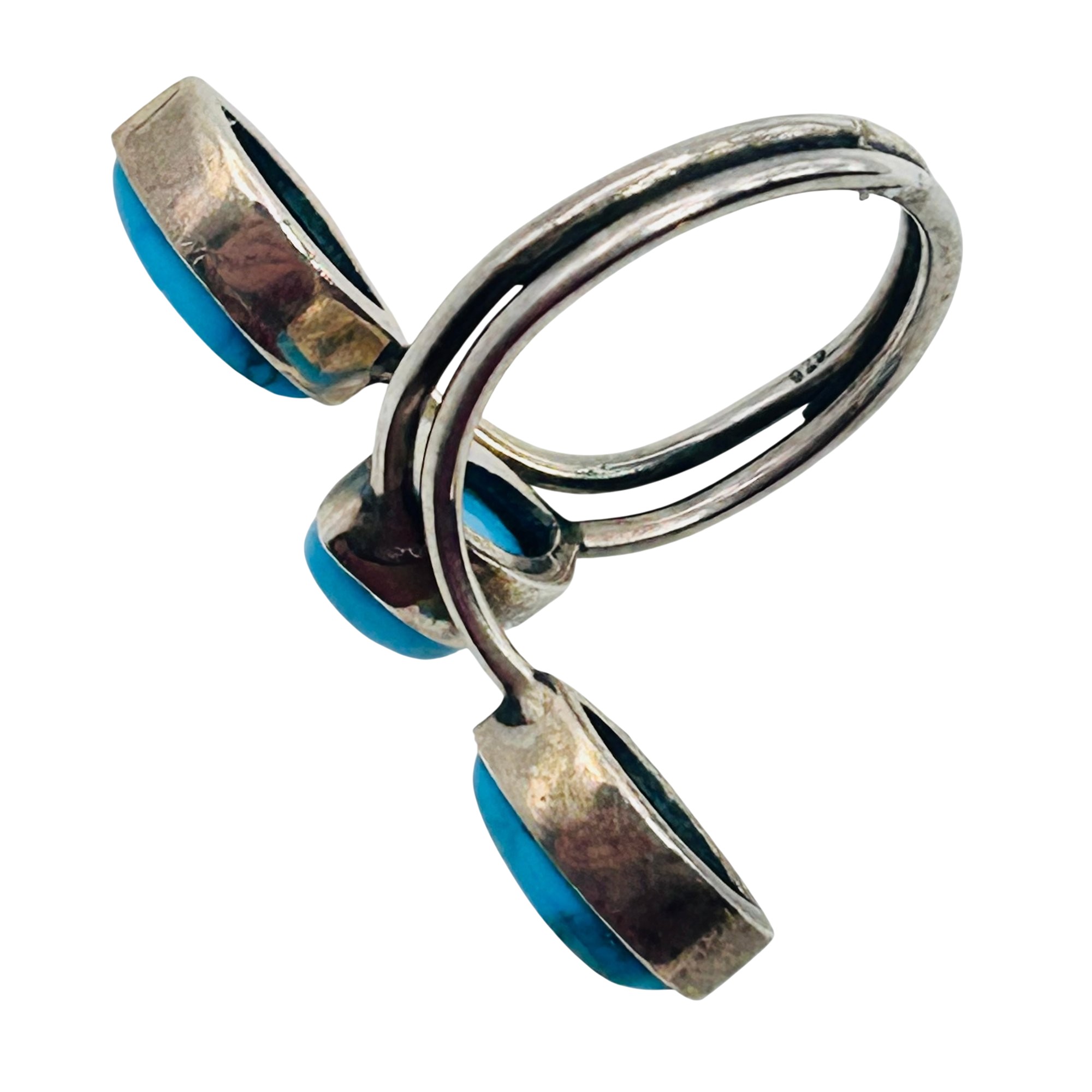 Sterling Turquoise Three Stone Ring. Size 5.5