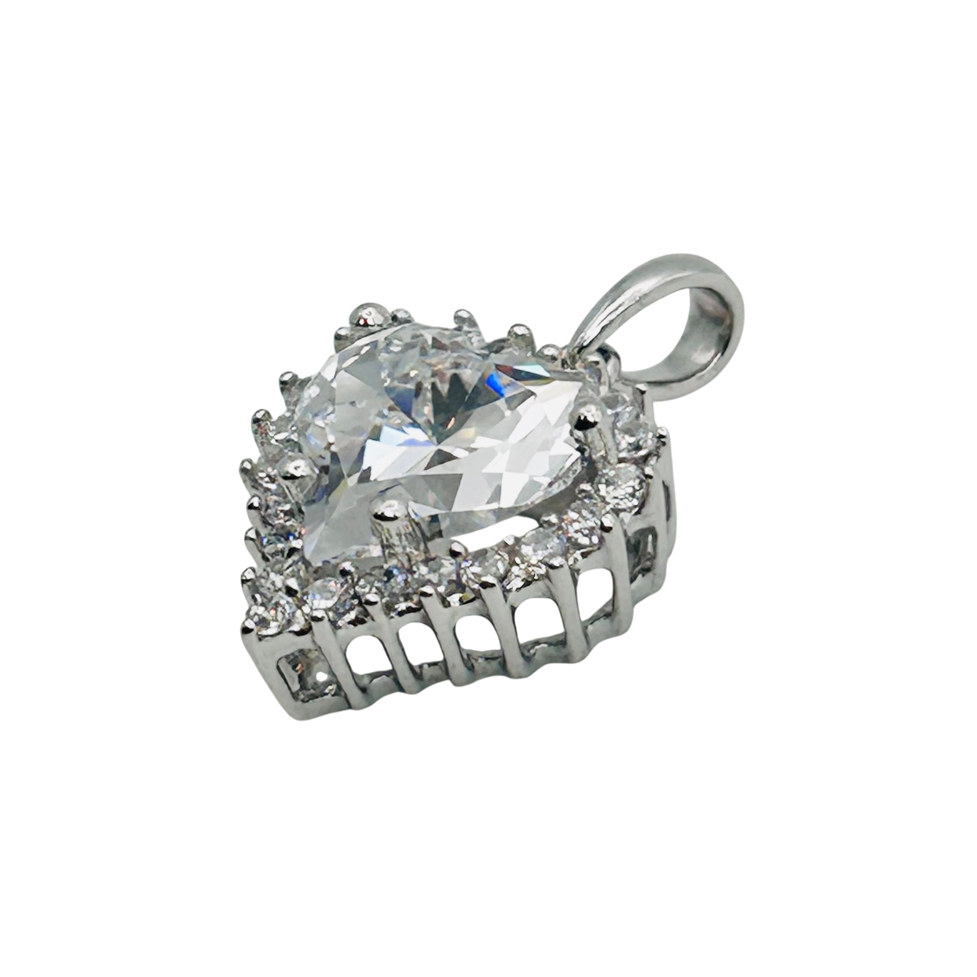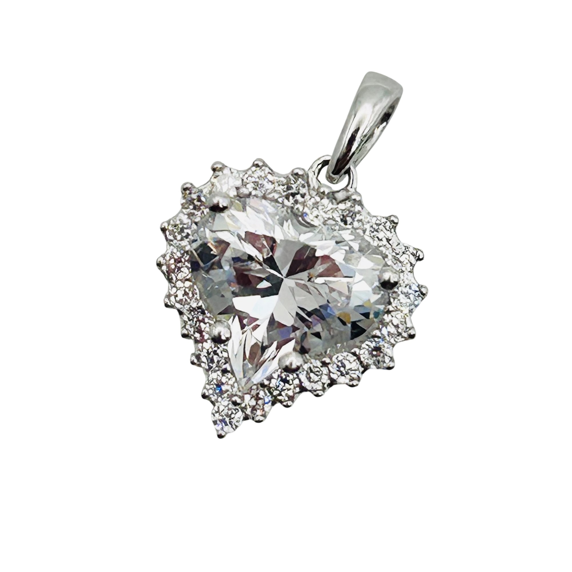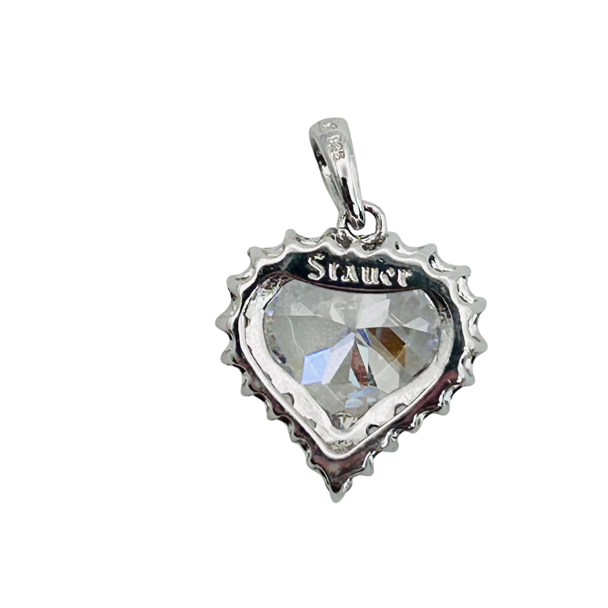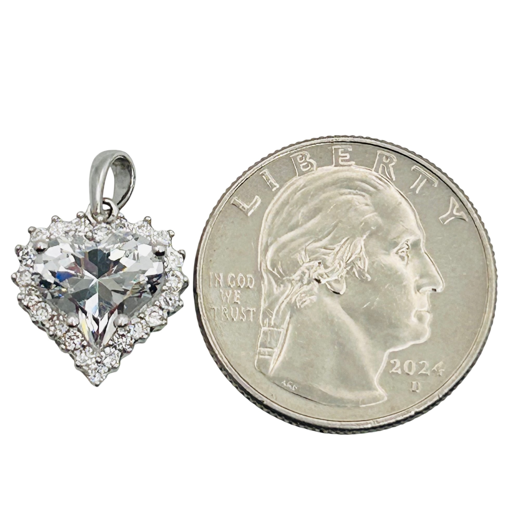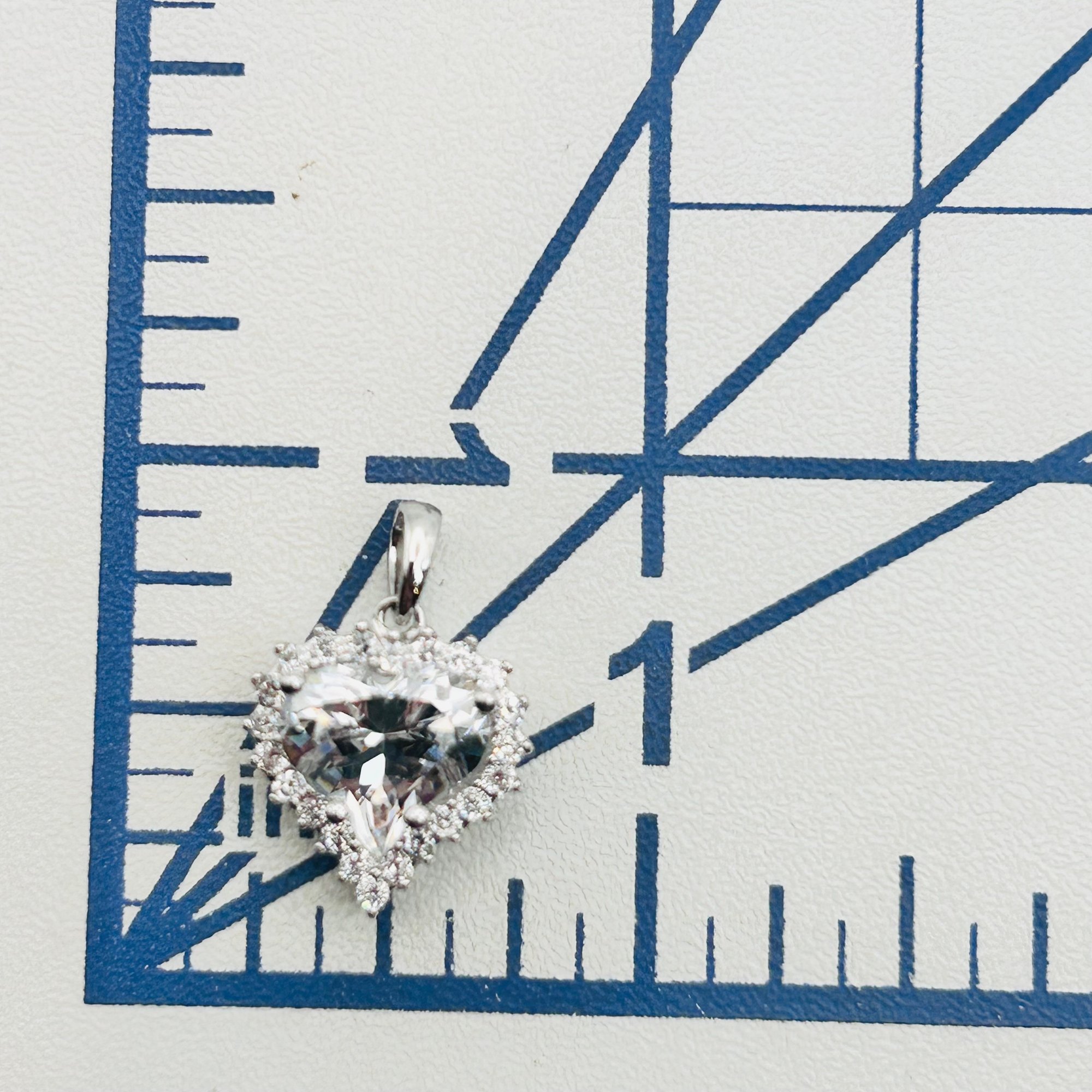 Stauer sterling clear stone halo design heart pendant. 2.40g