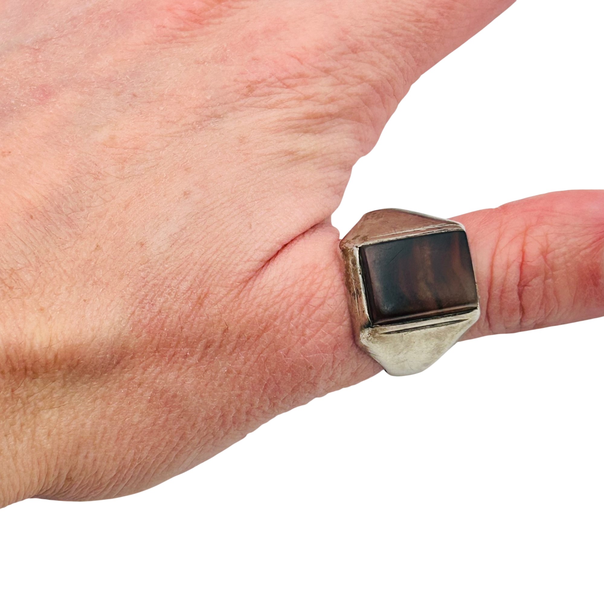 Sterling tigers eye square ring. Size 10. 7.20g