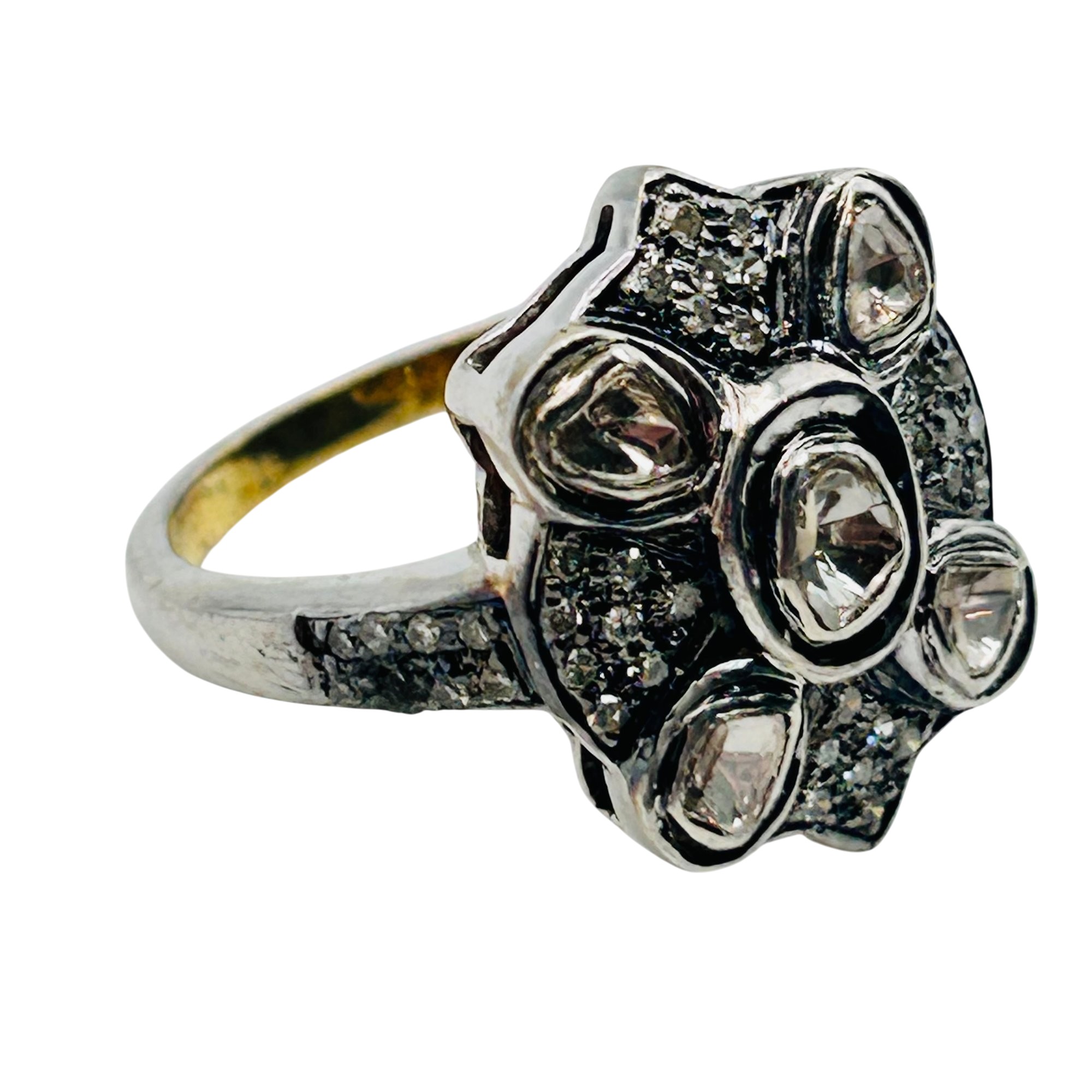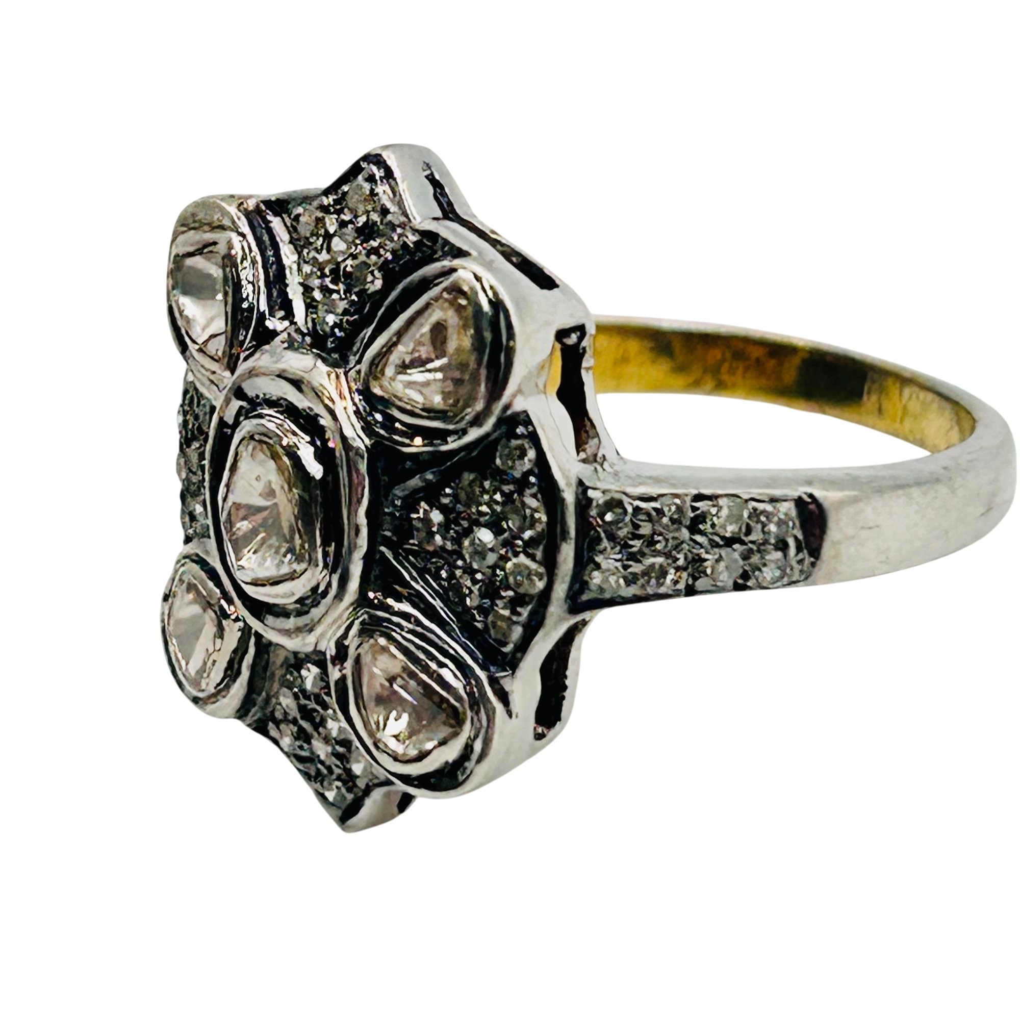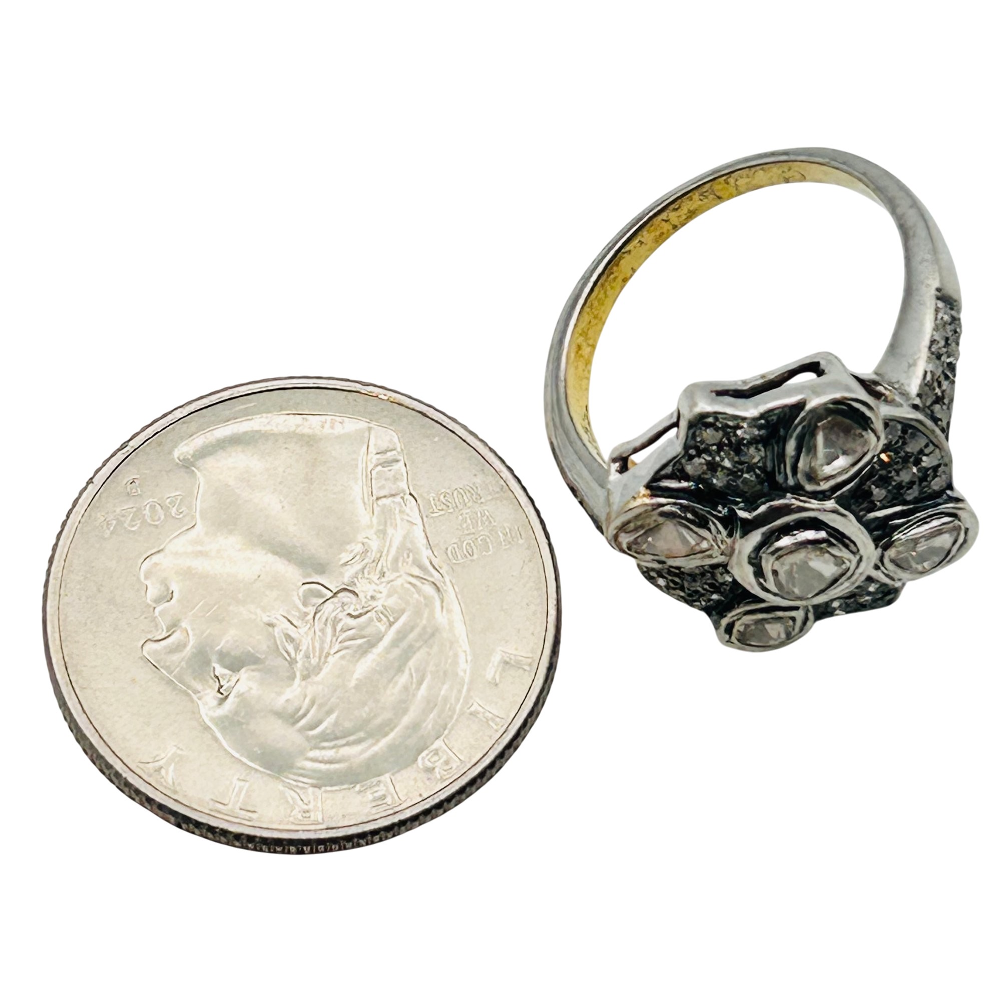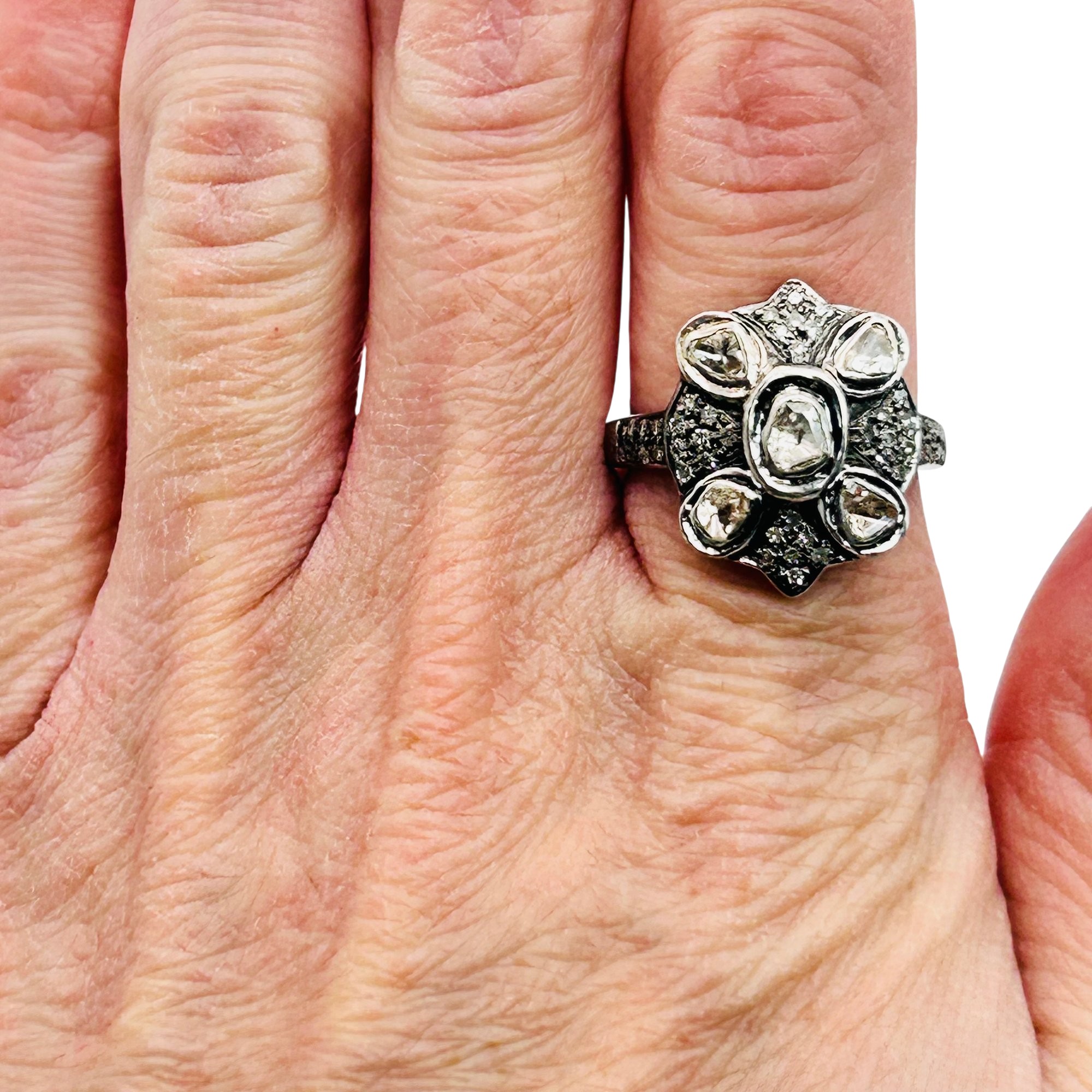 Sterling sapphire Victorian style Polki and rose cut ring Size 7.5. 5.80g