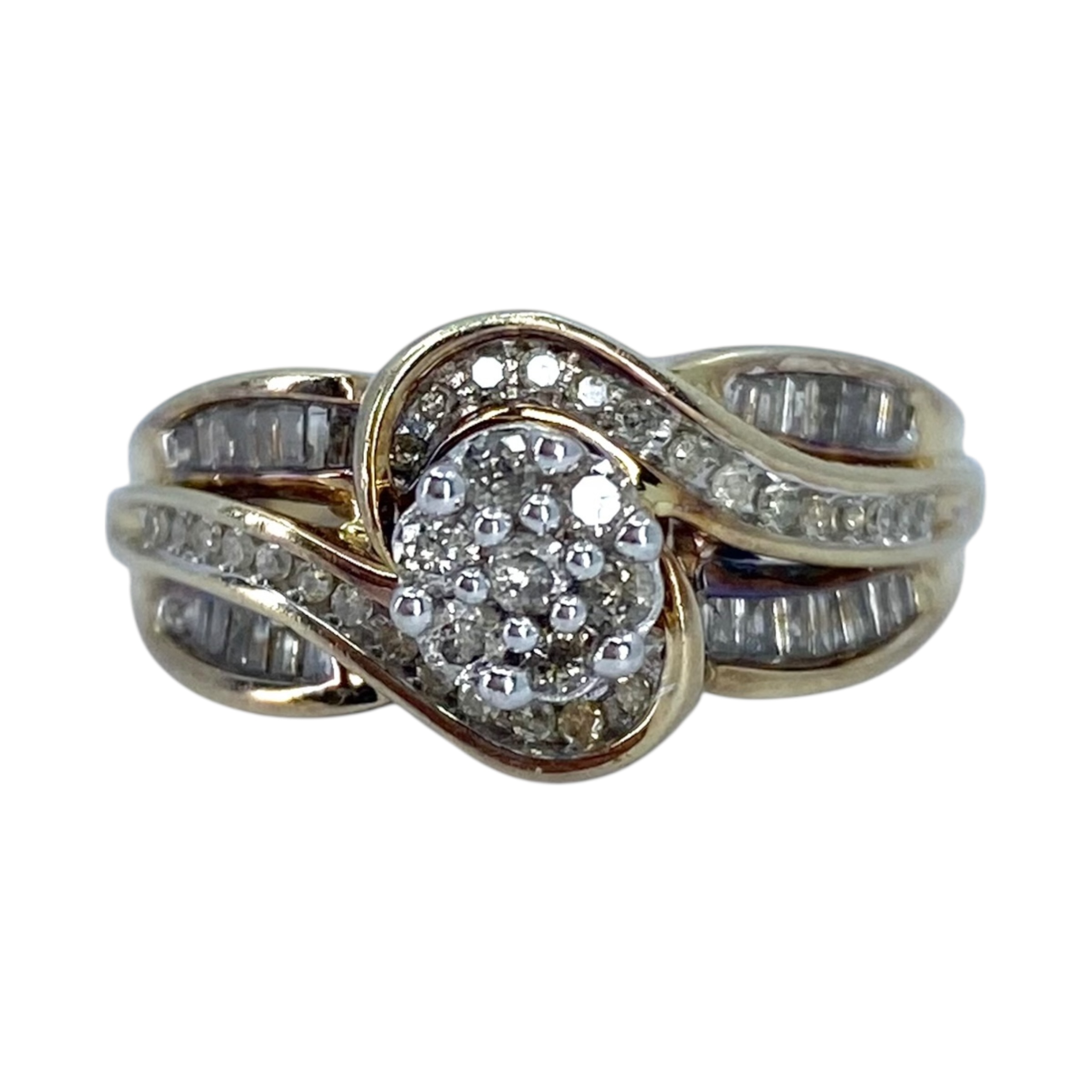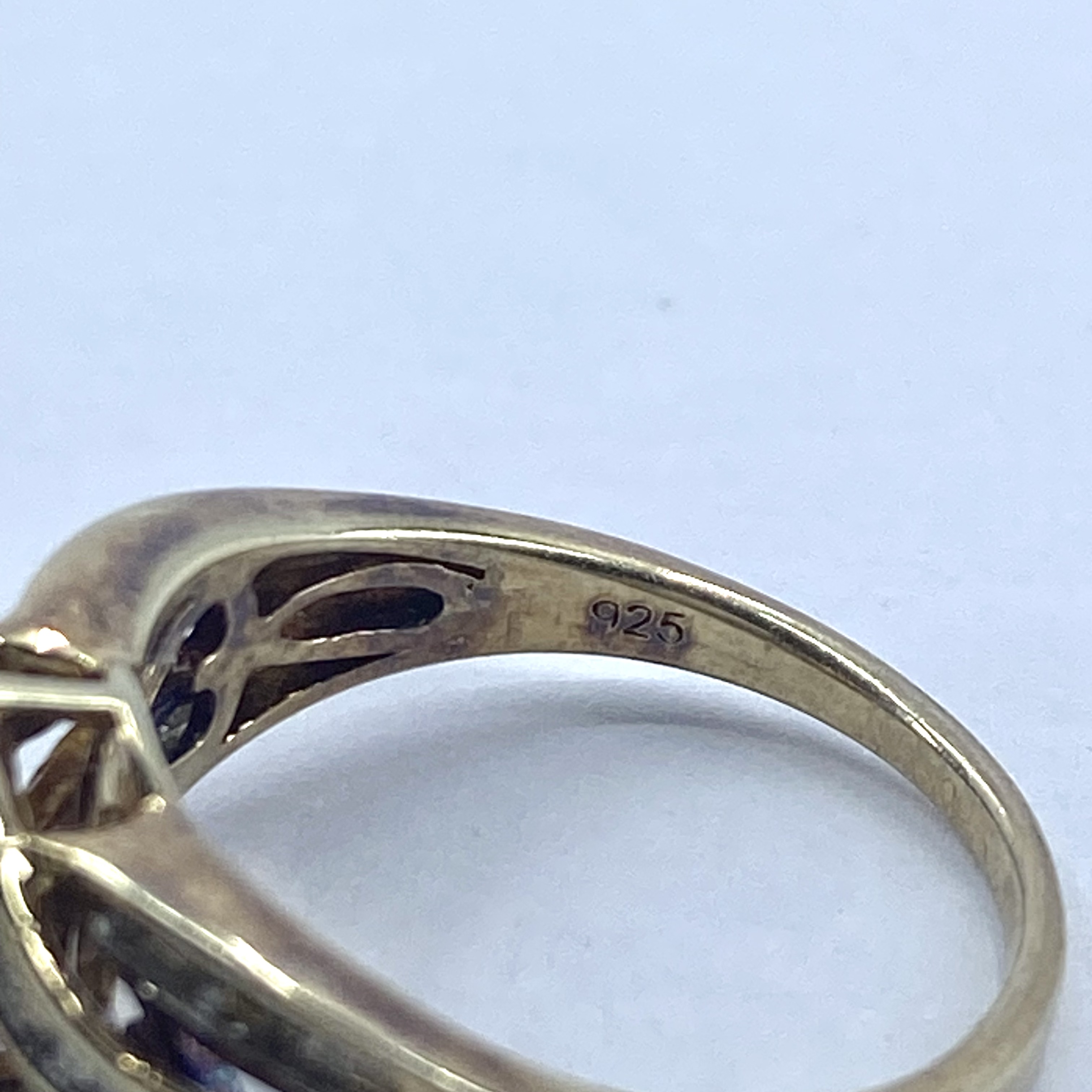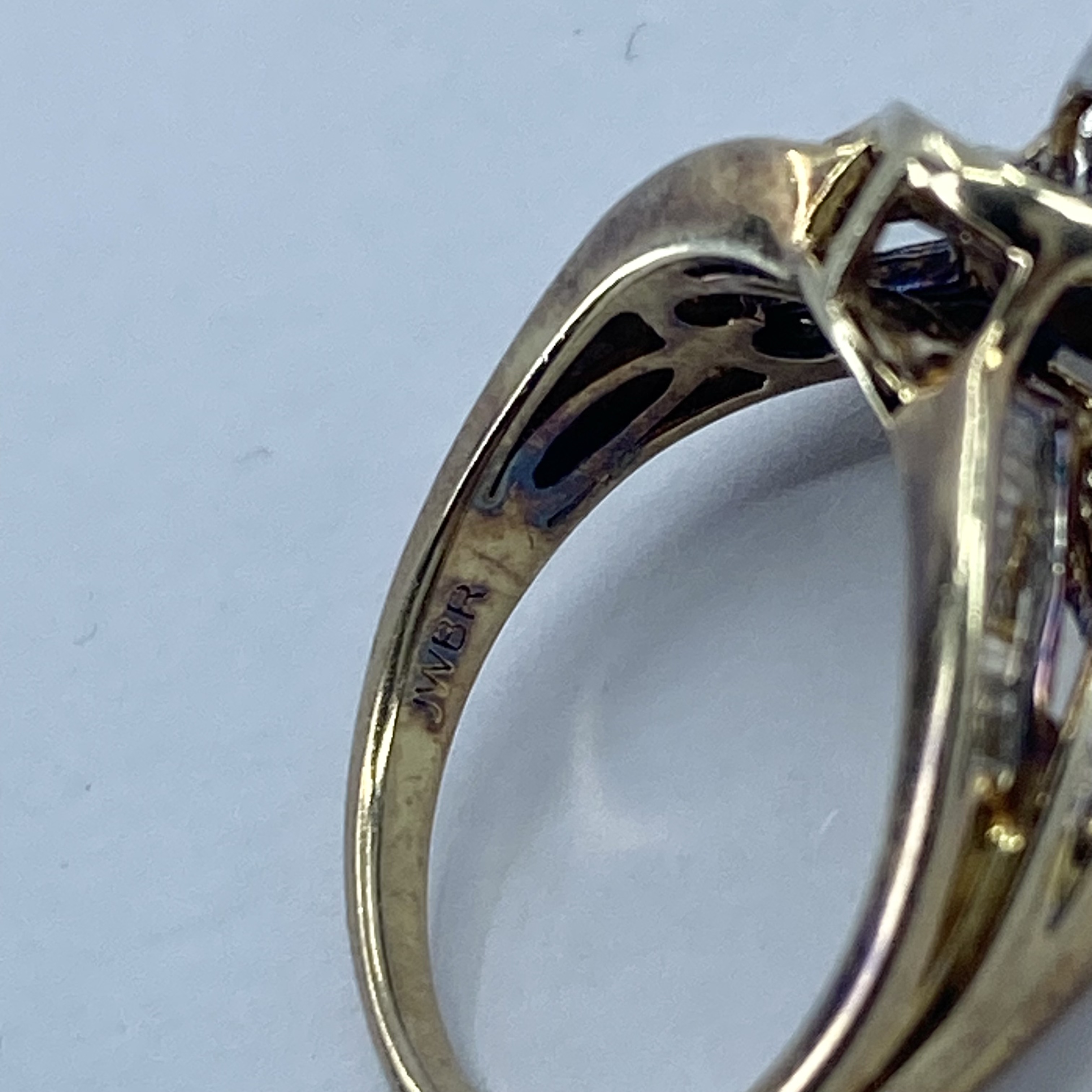 Signed Gold over Sterling Diamond Cluster Ring 4g sz 6.75 Engraved JWBR 925