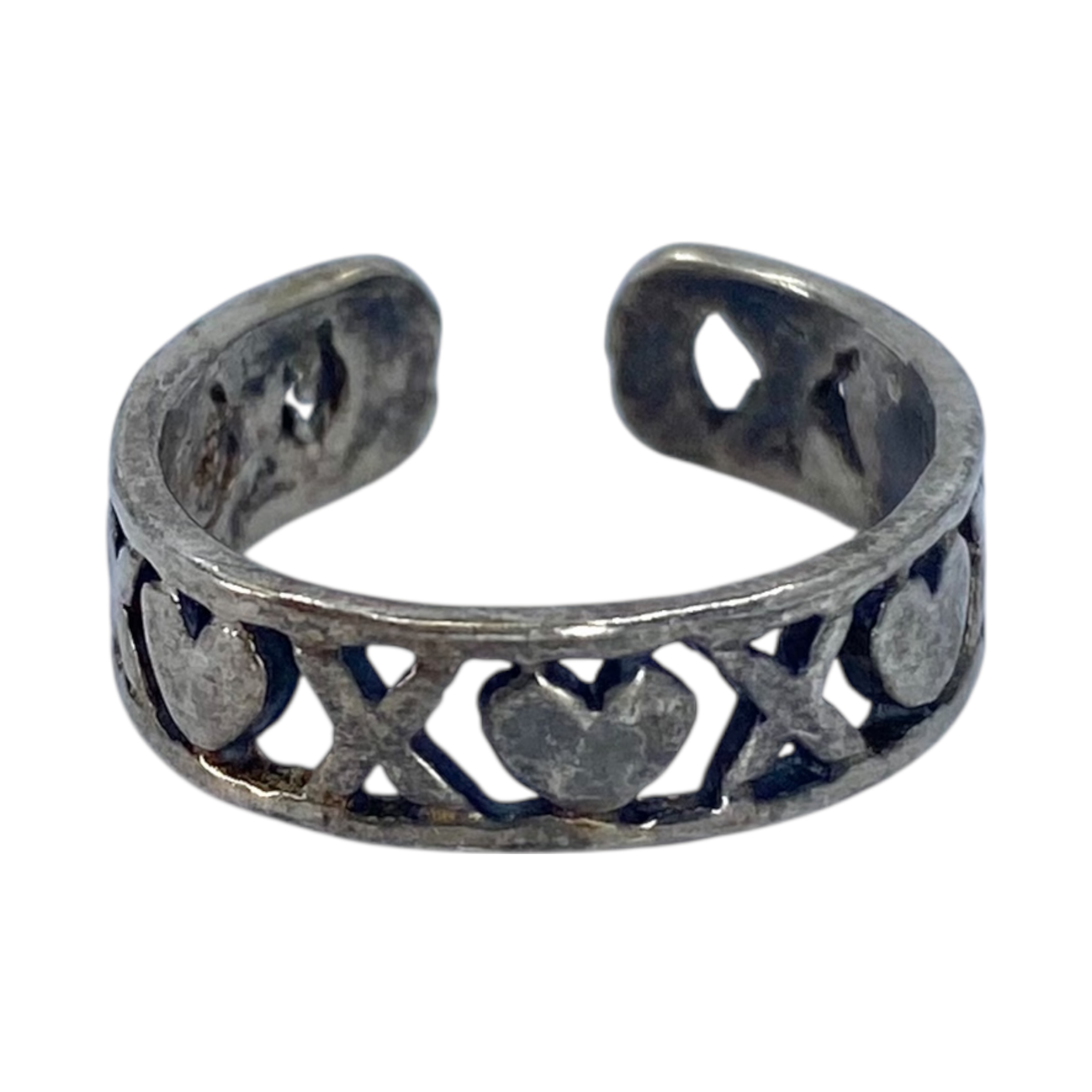 Sterling XO Heart Adjustable Toe Ring 2g sz 3 Engraved 925