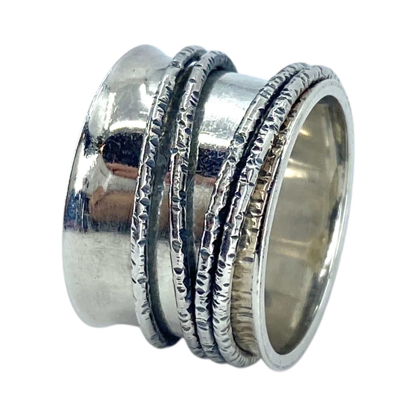 Sterling Wide Band Spinner Ring 6.36g sz 7 Engraved 925