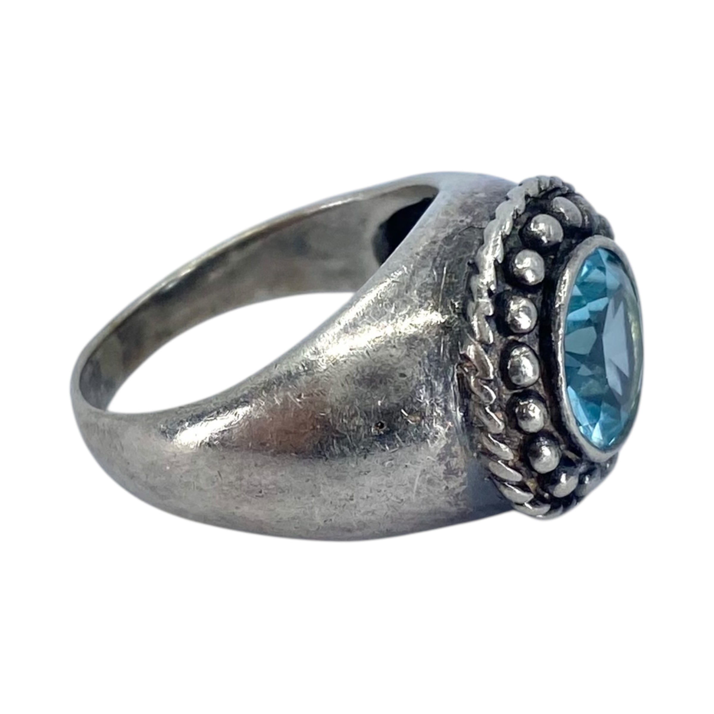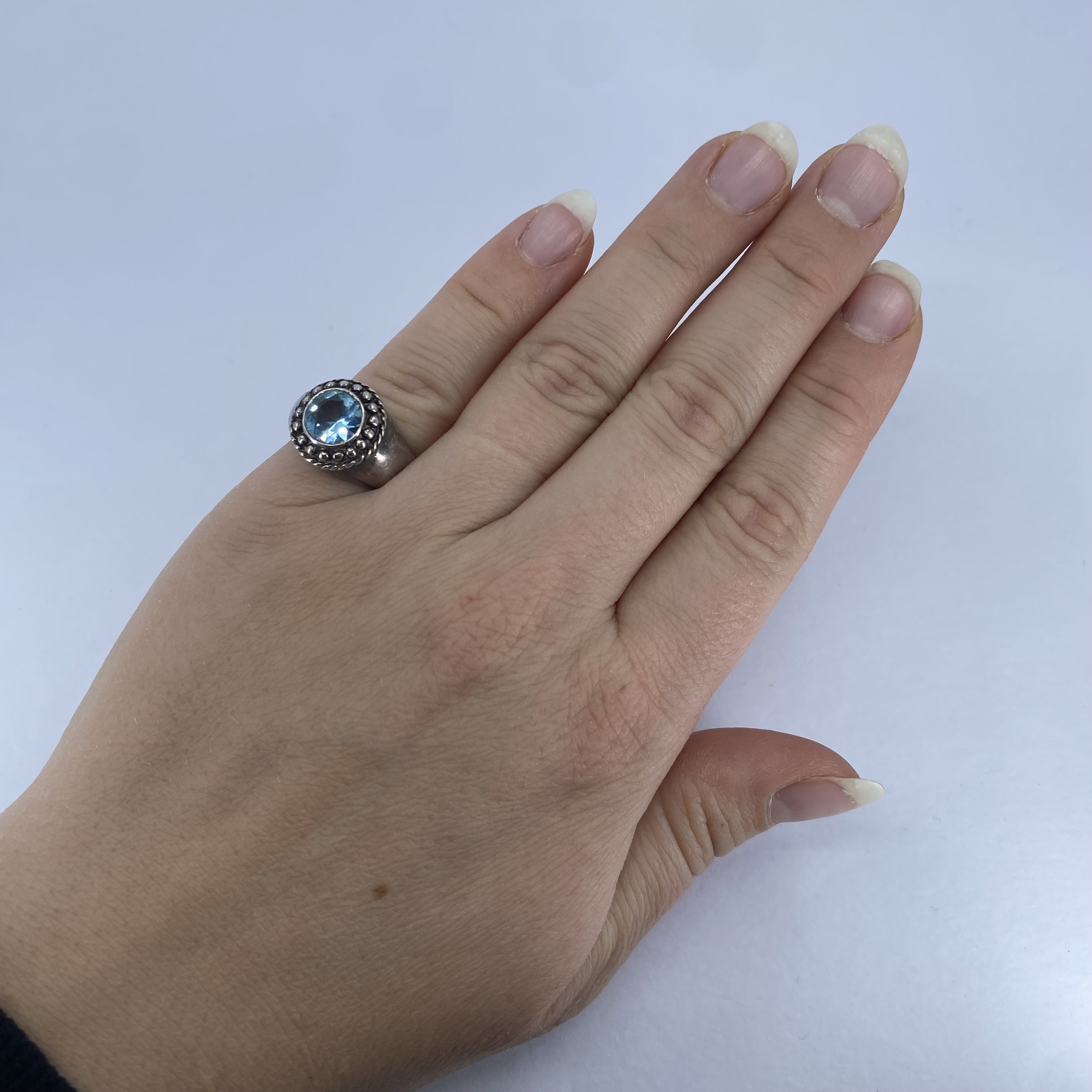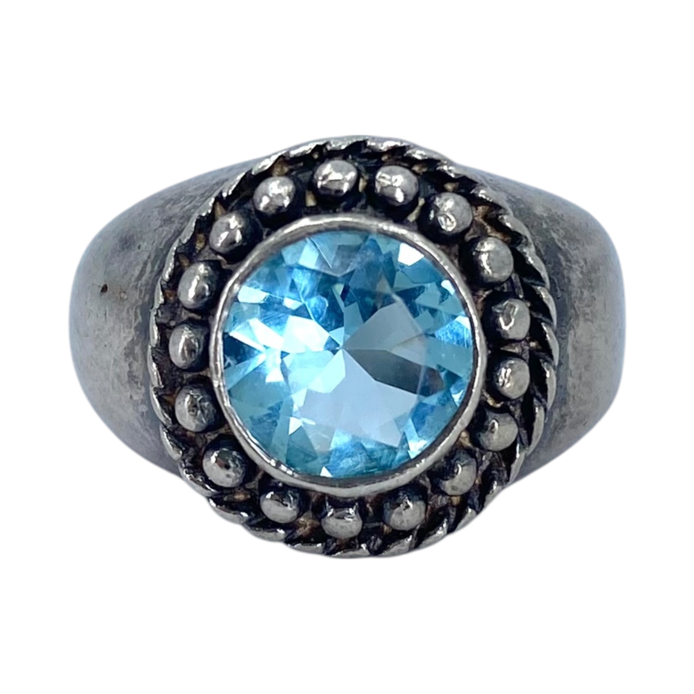 Sterling Blue Rhinestone Round Vintage Ring 5g sz 6
