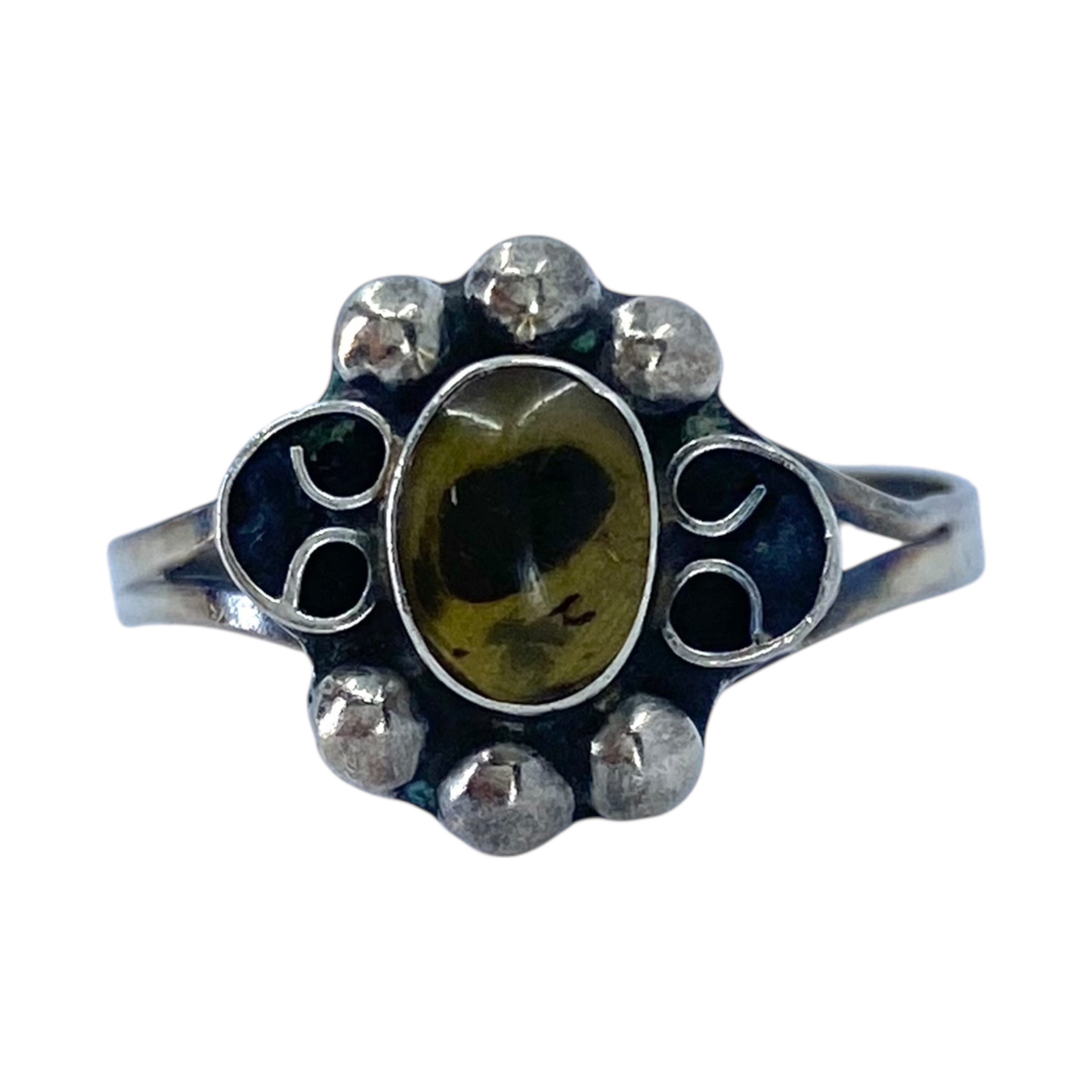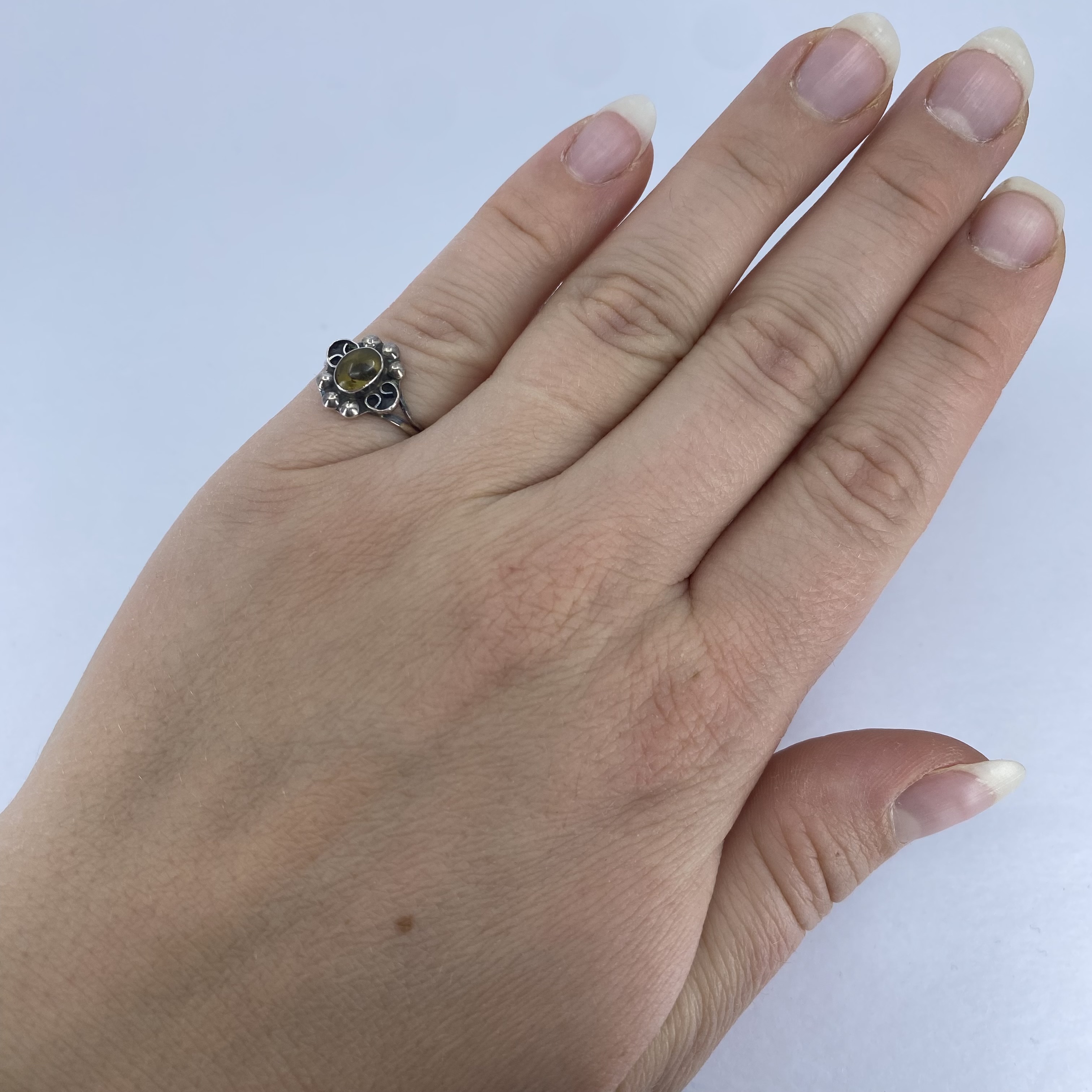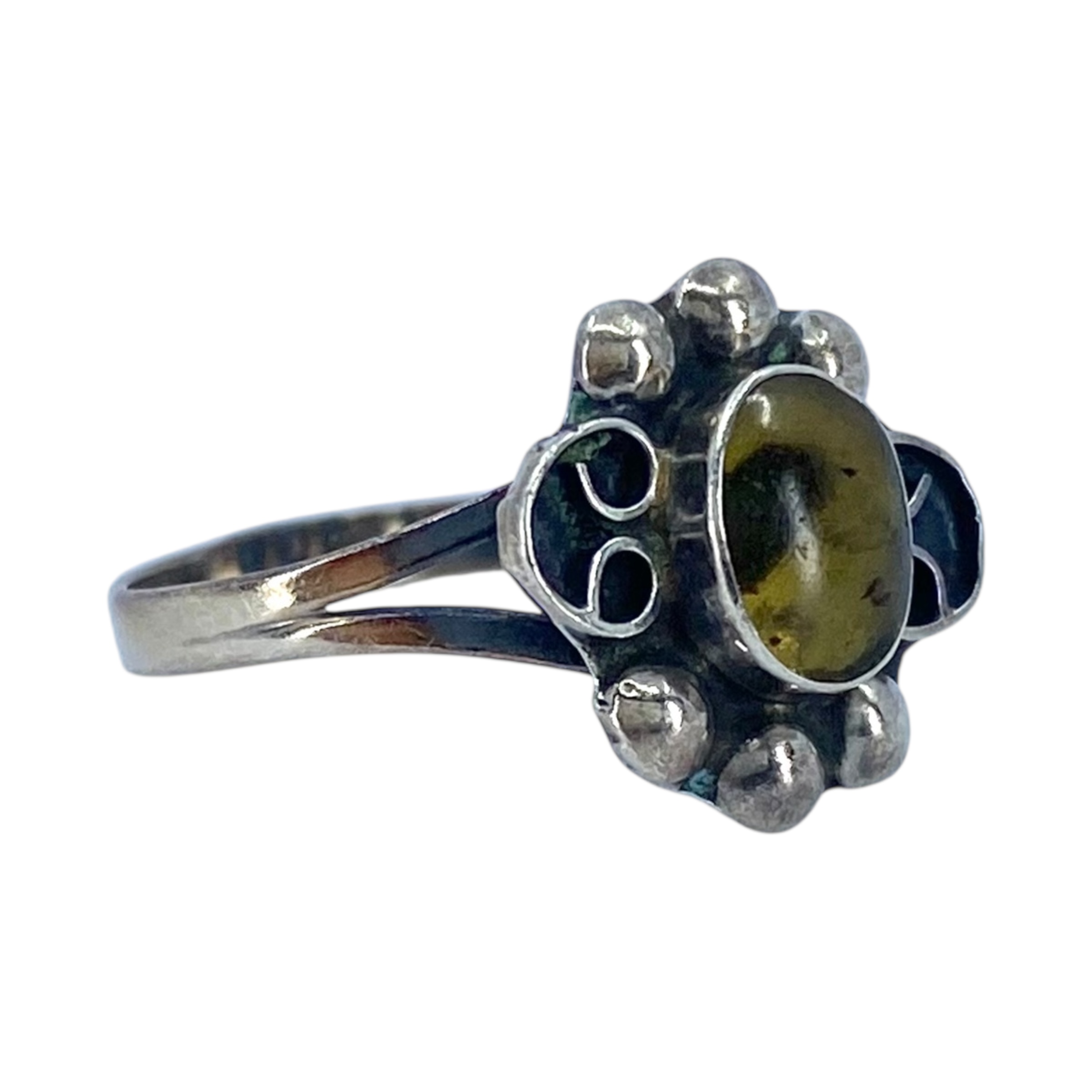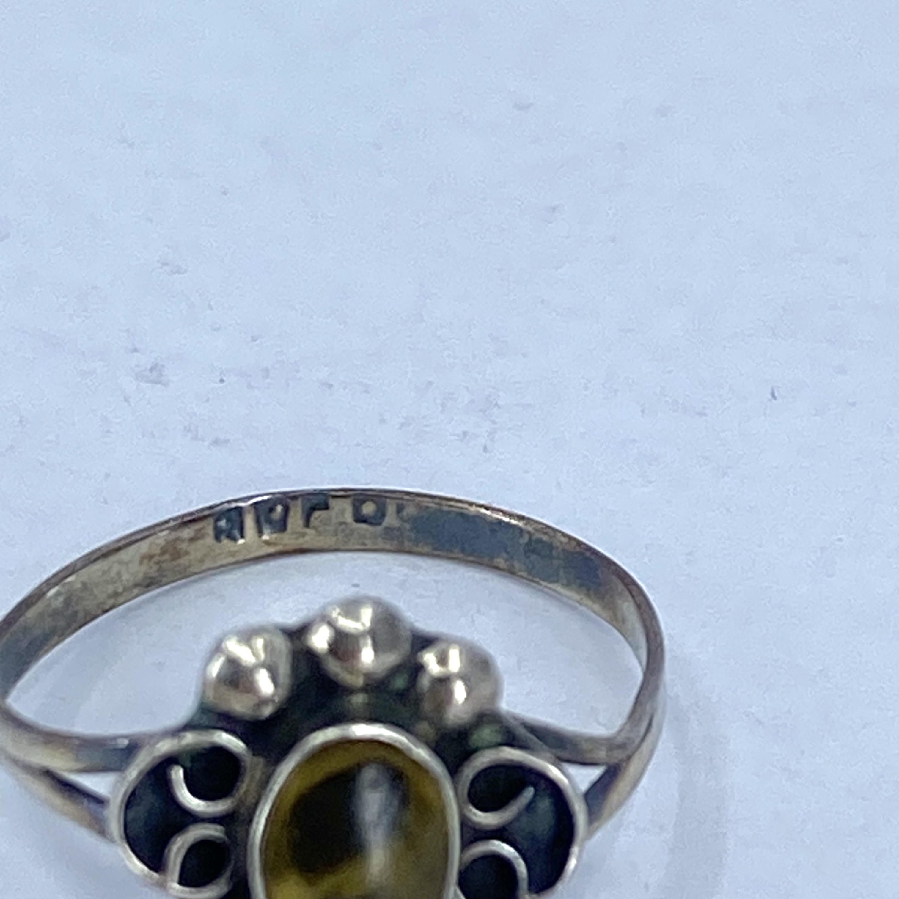 Sterling Amber Oval Vintage Ring 1.2g sz 6 Unknown Engraving ADPO?