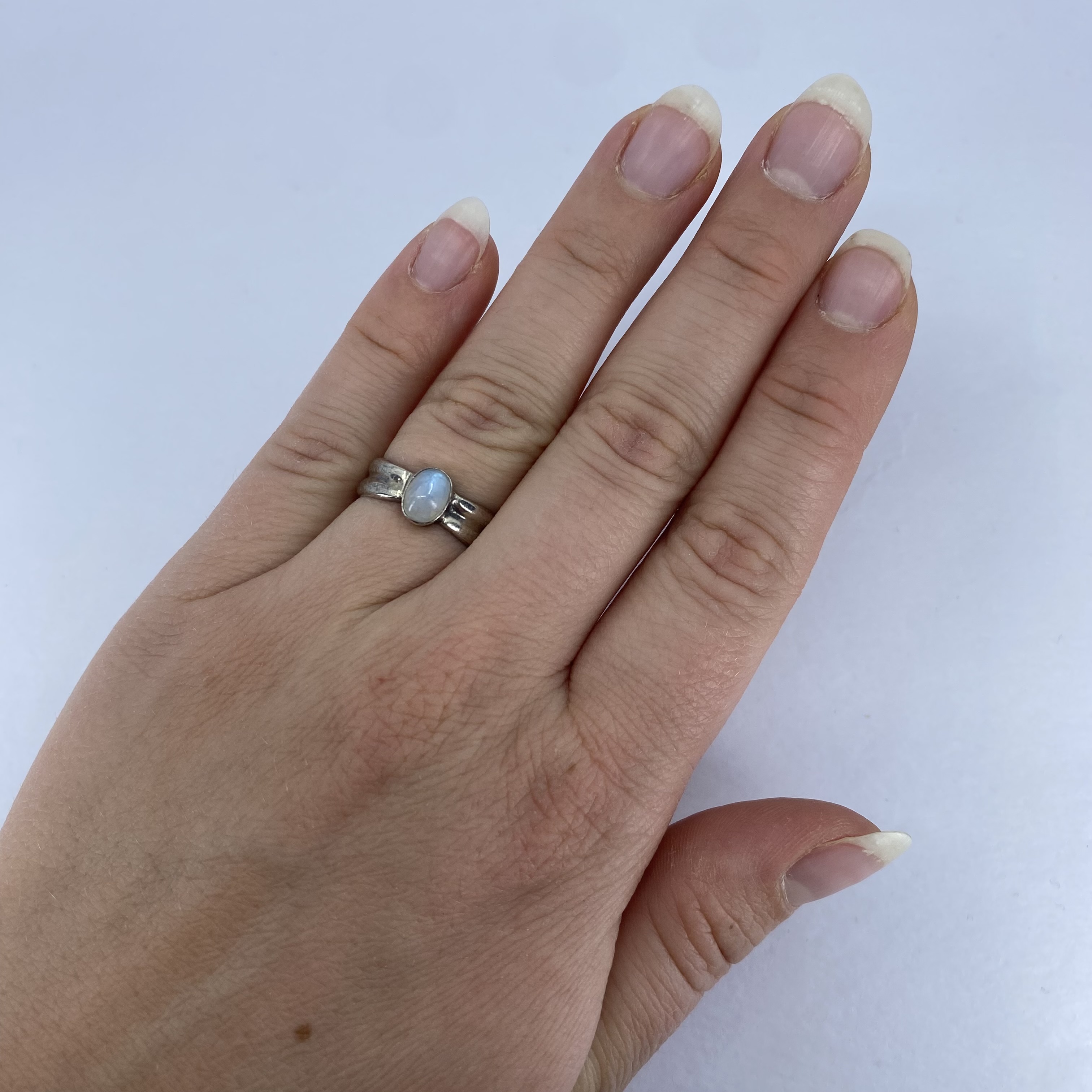 Sterling Moonstone Oval Ring 4g sz 7 Engraved 925
