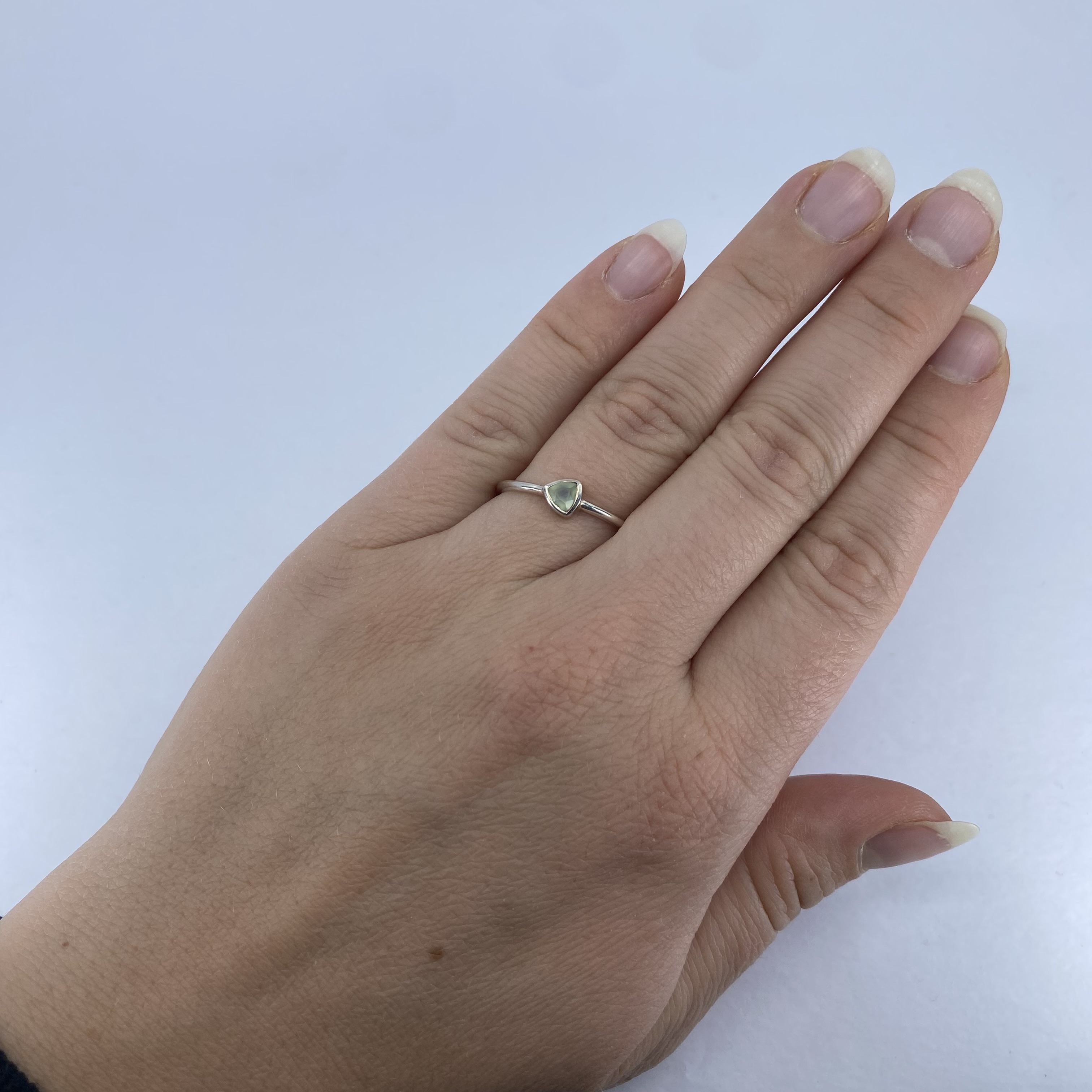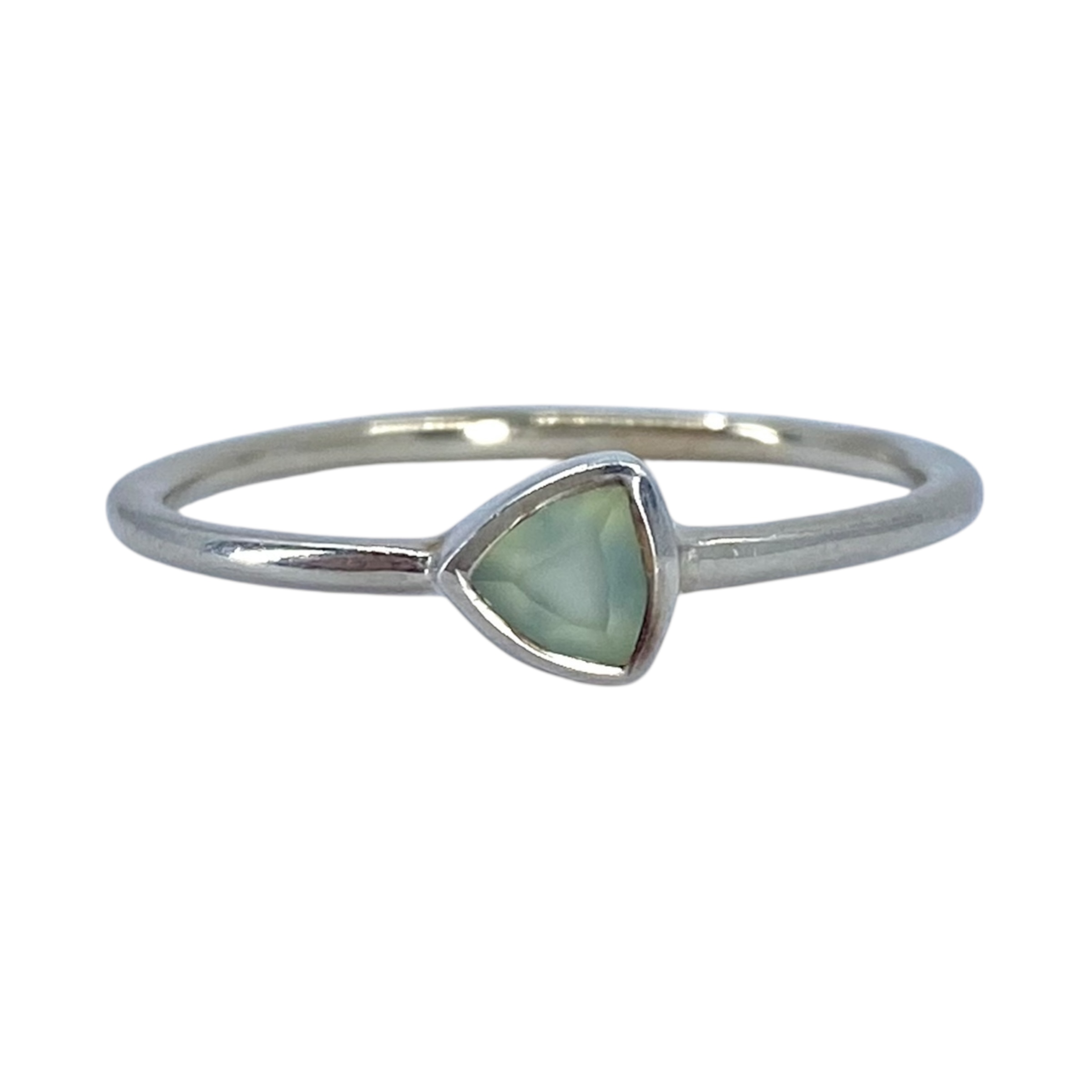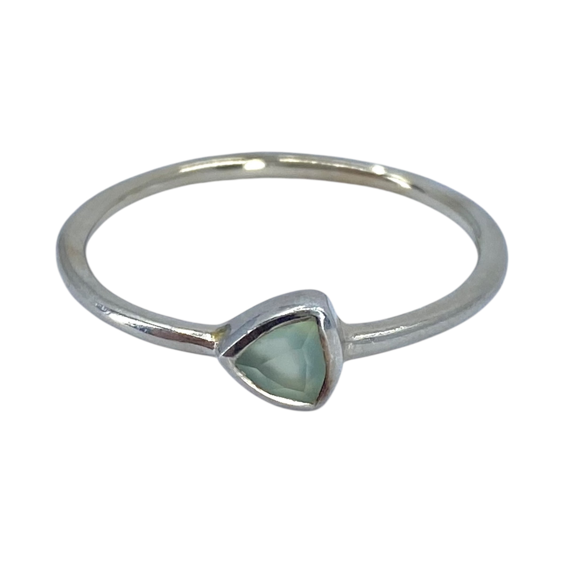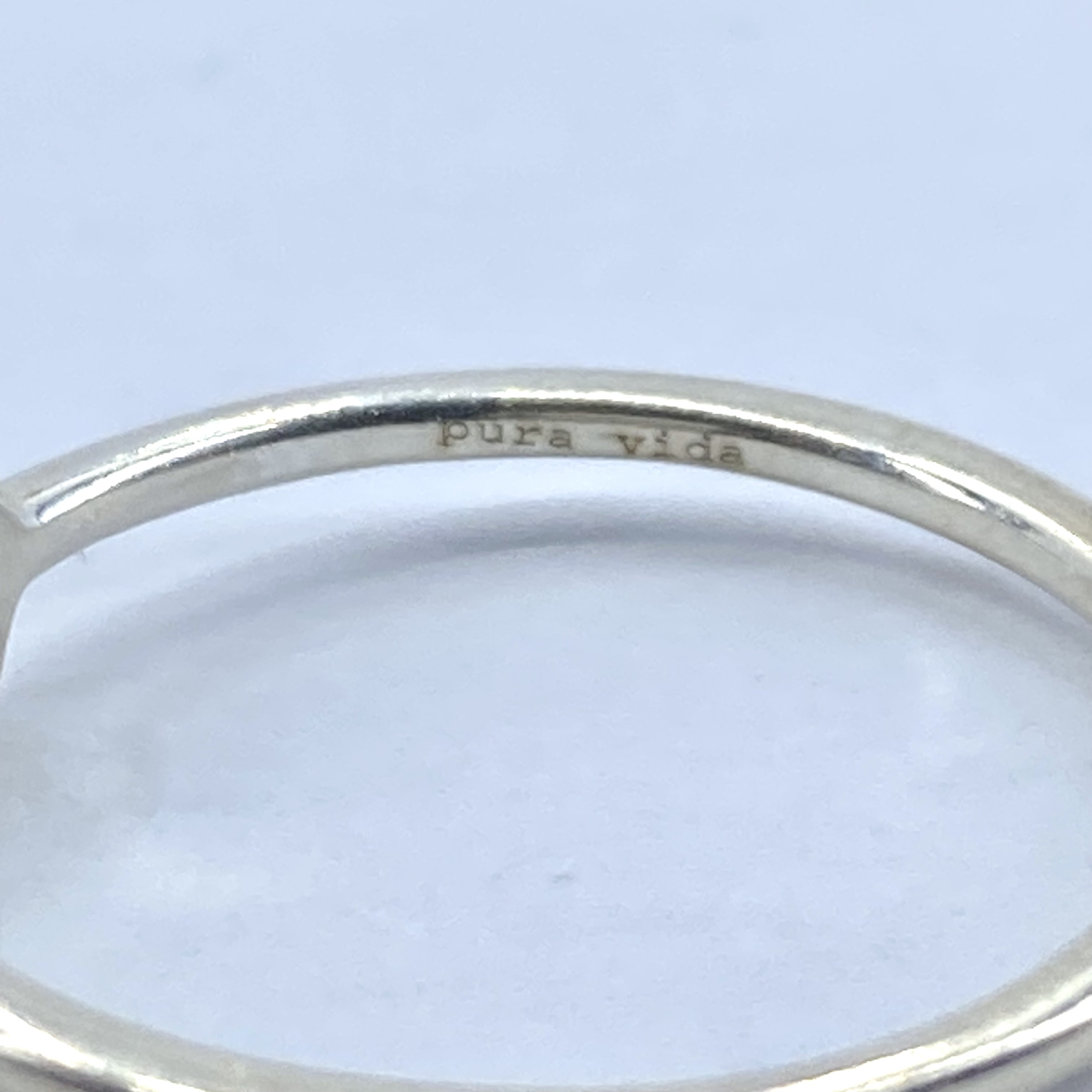 Pura Vida Sterling Green Moonstone Trilliant Ring 1.5g sz 8.75 Engraved Pura Vida 925
