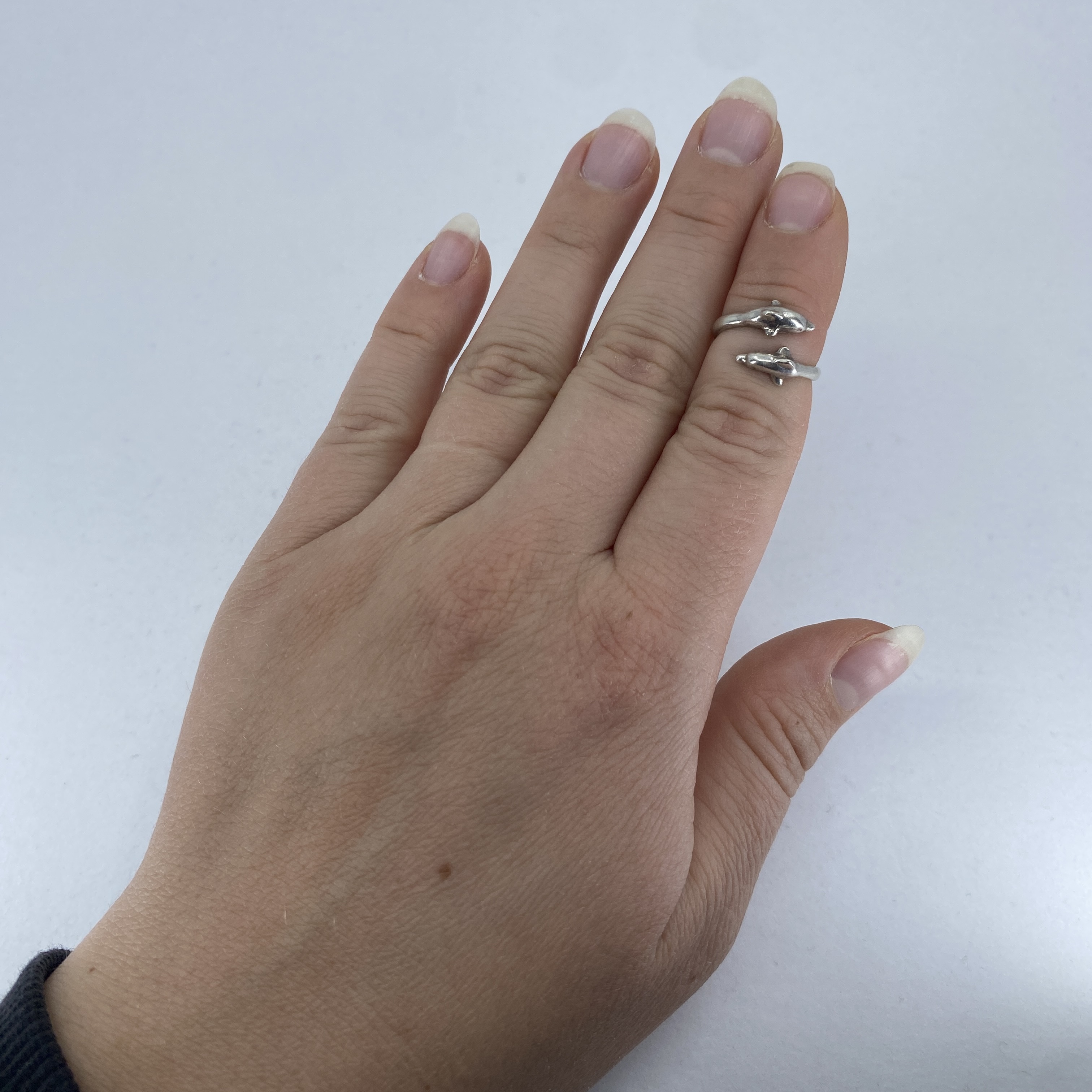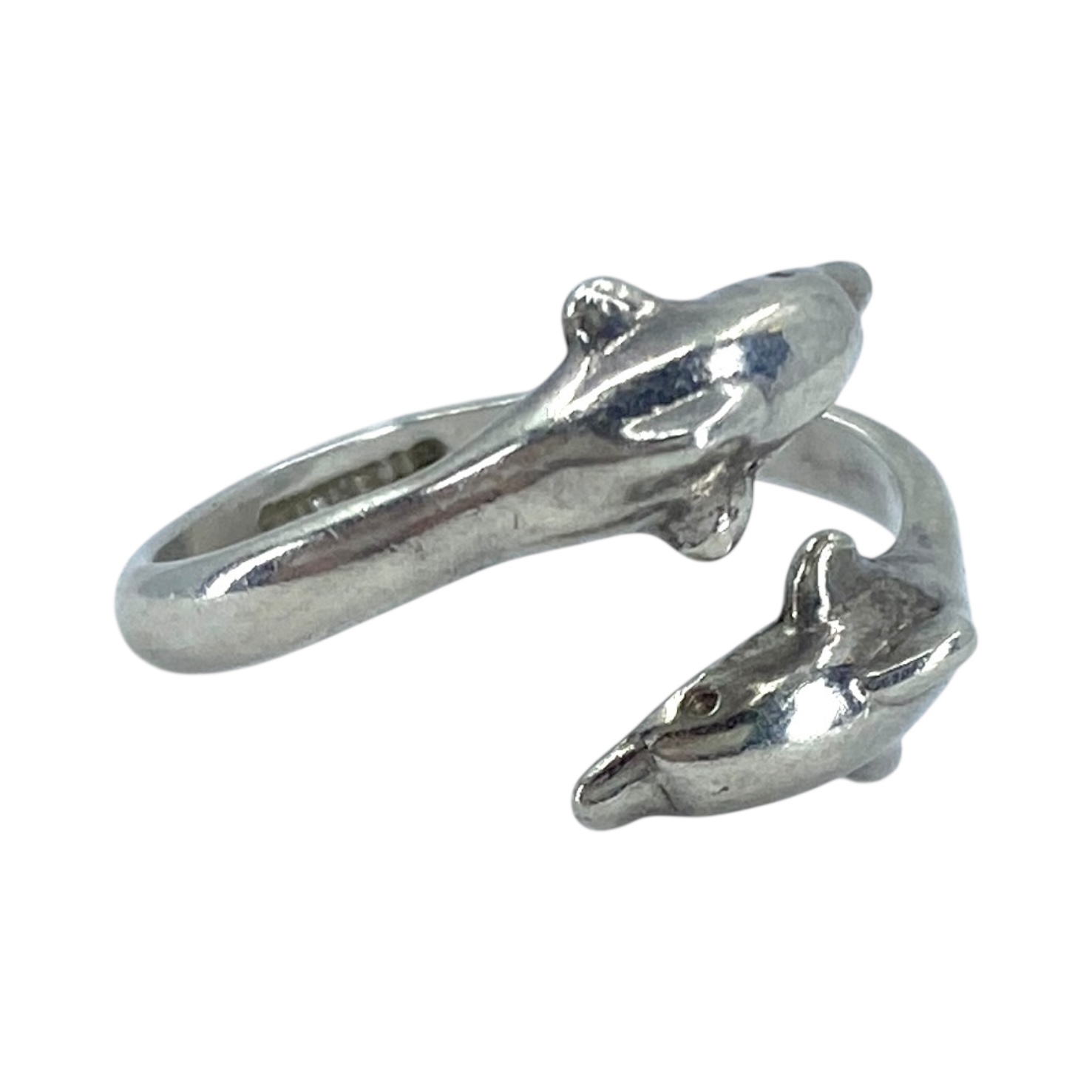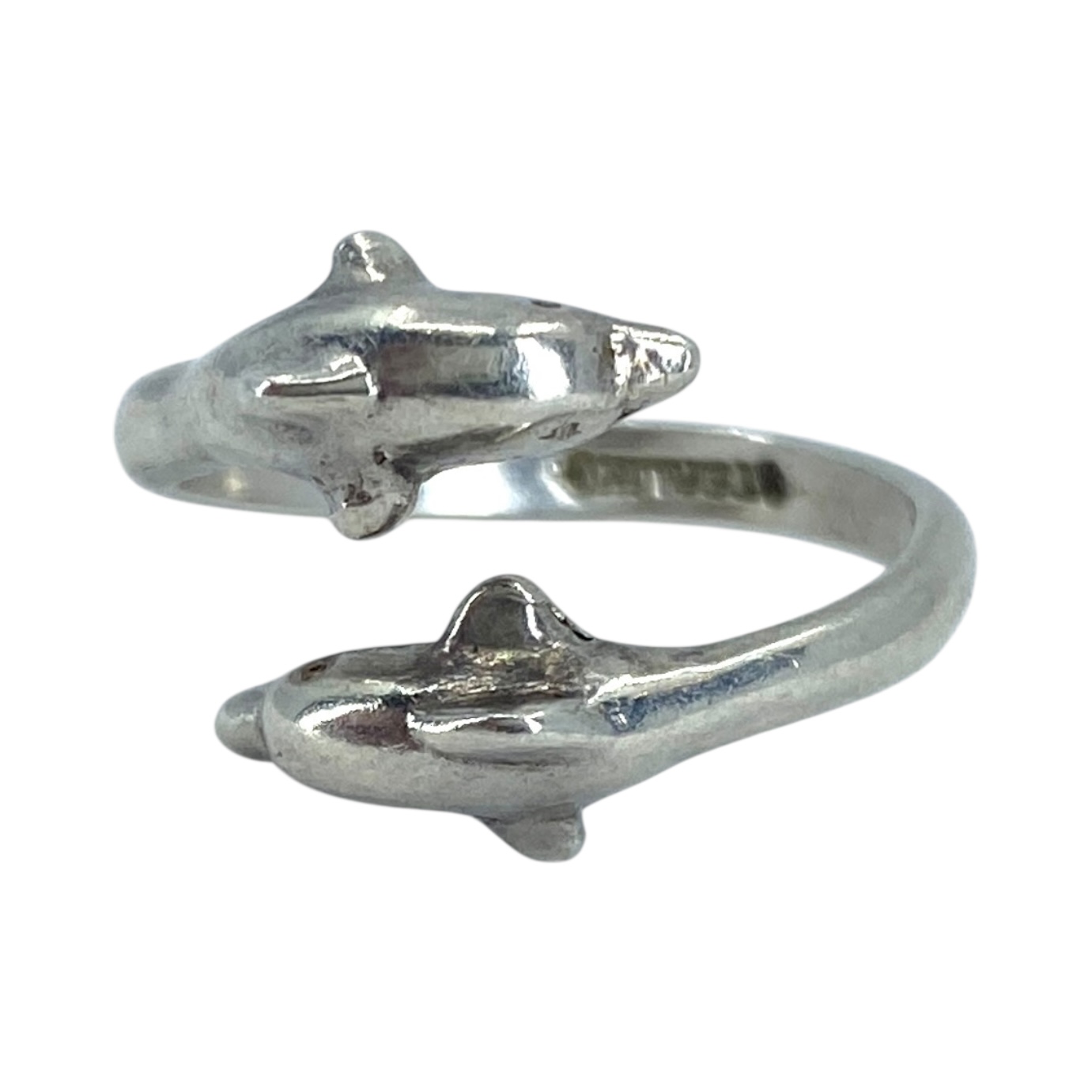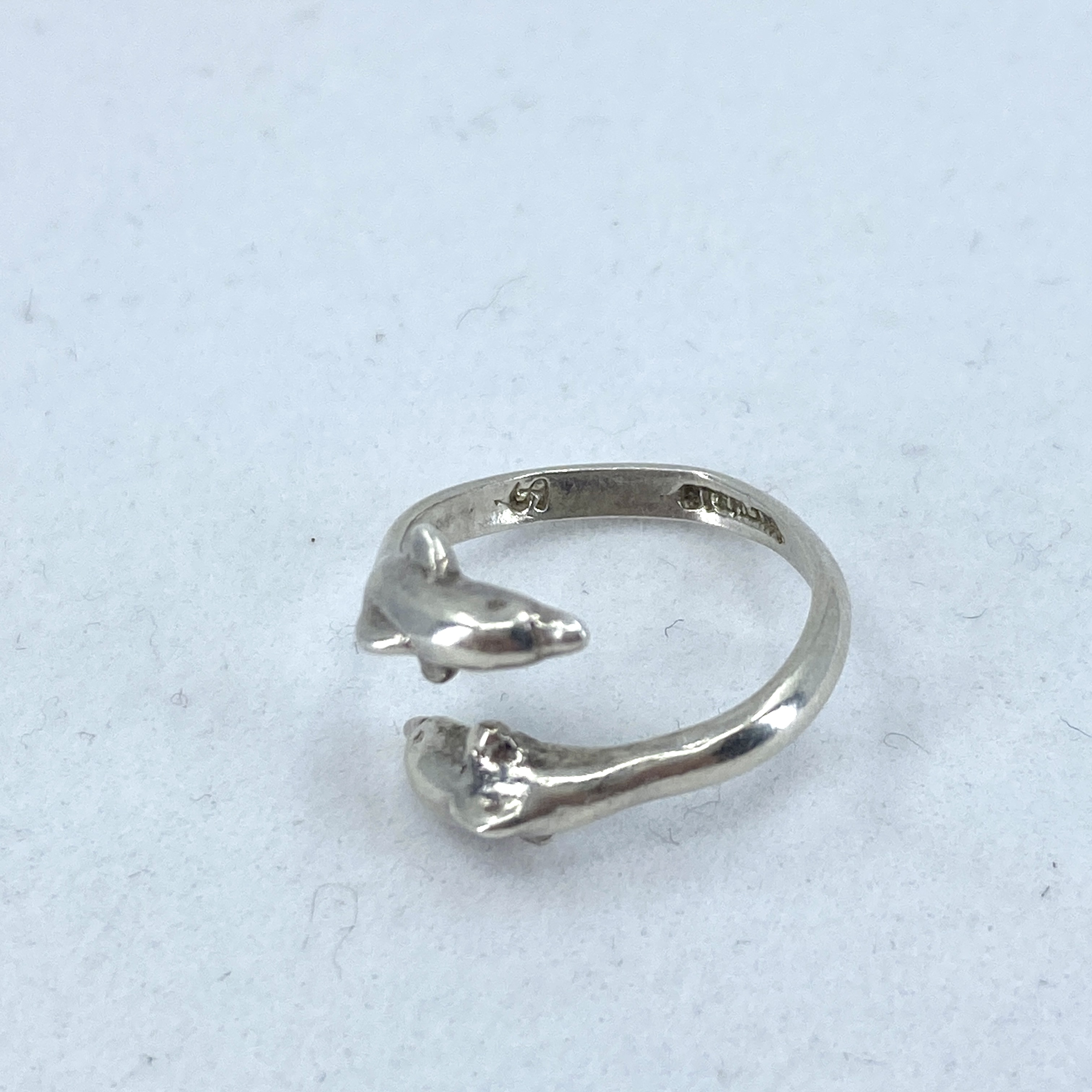 Sterling Adjustable Jumping Dolphin Ring 2.15g sz 3.75 Engraved Sterling 69