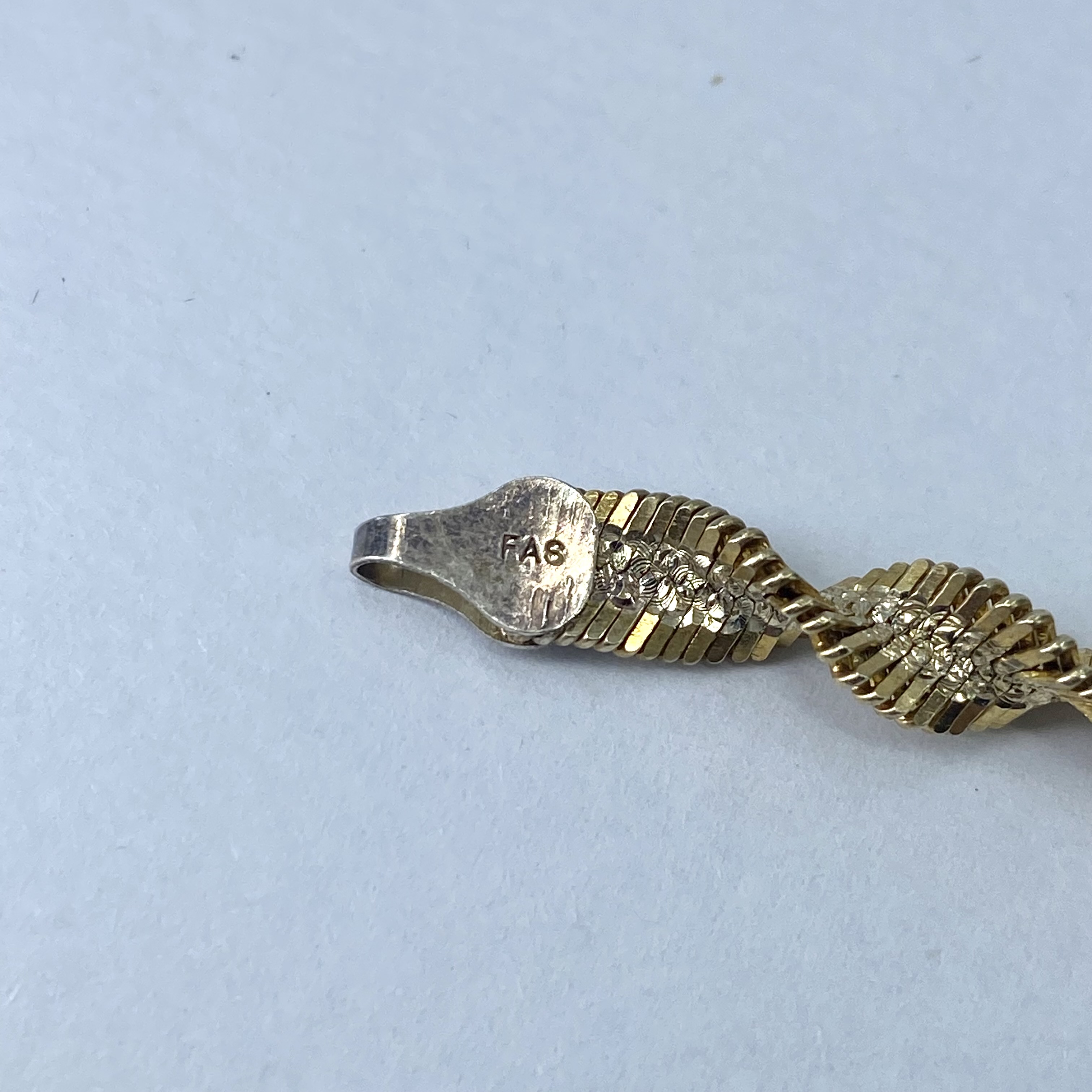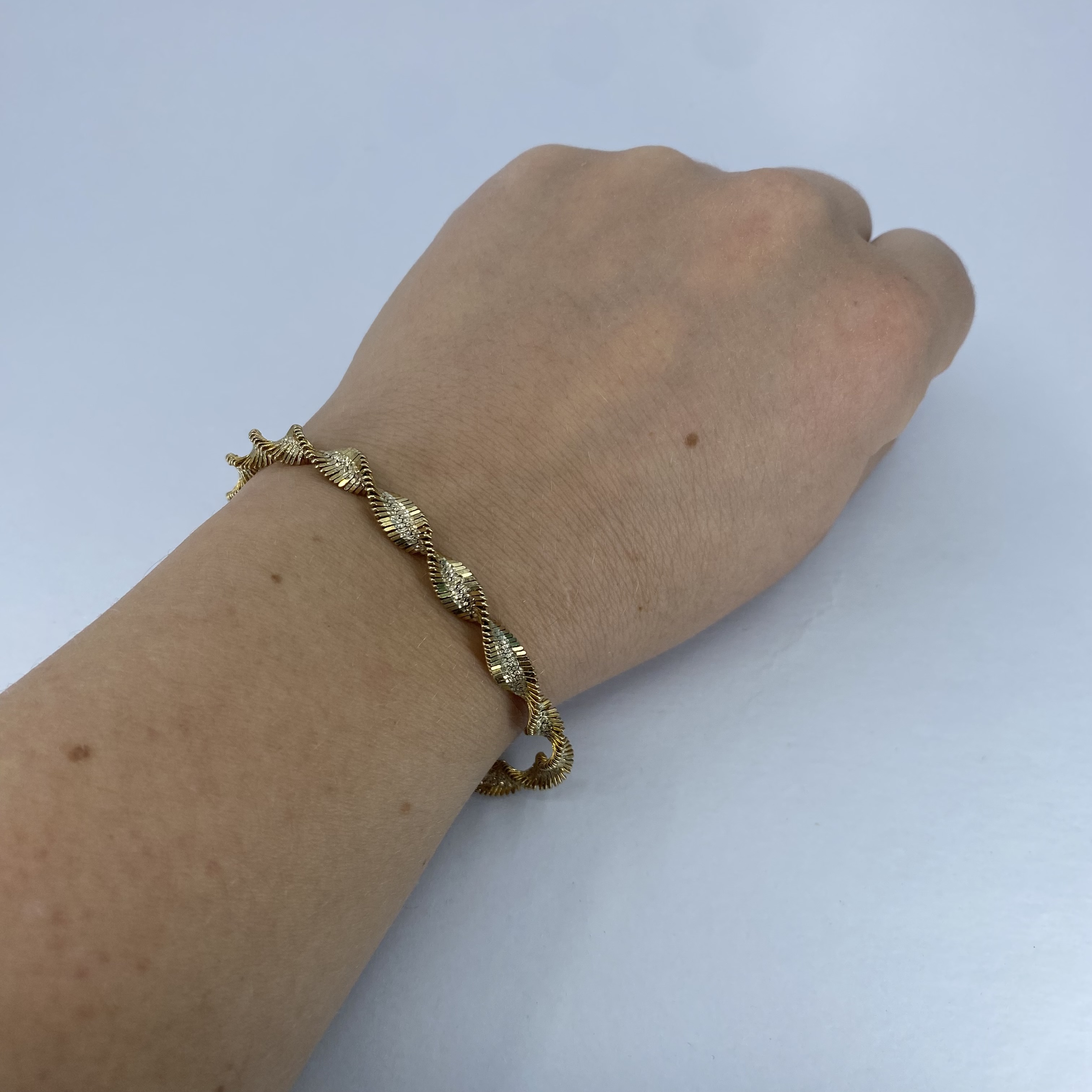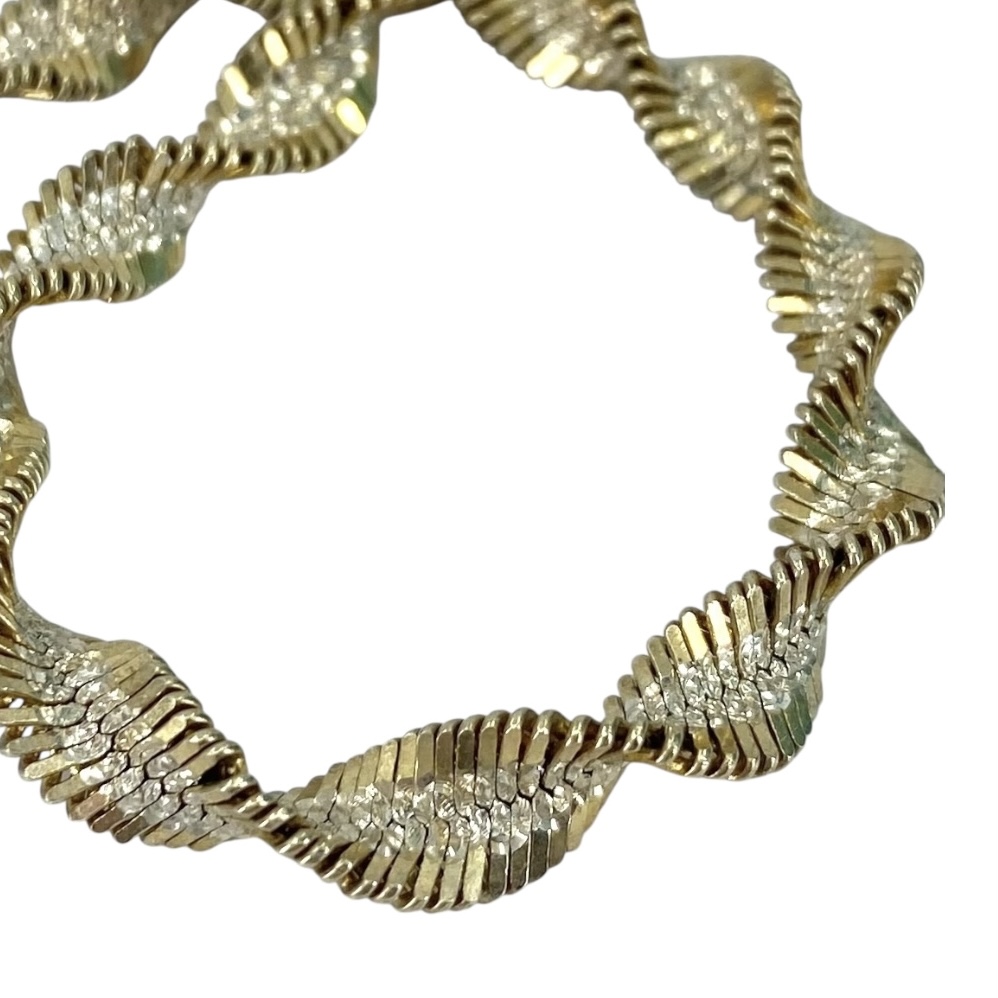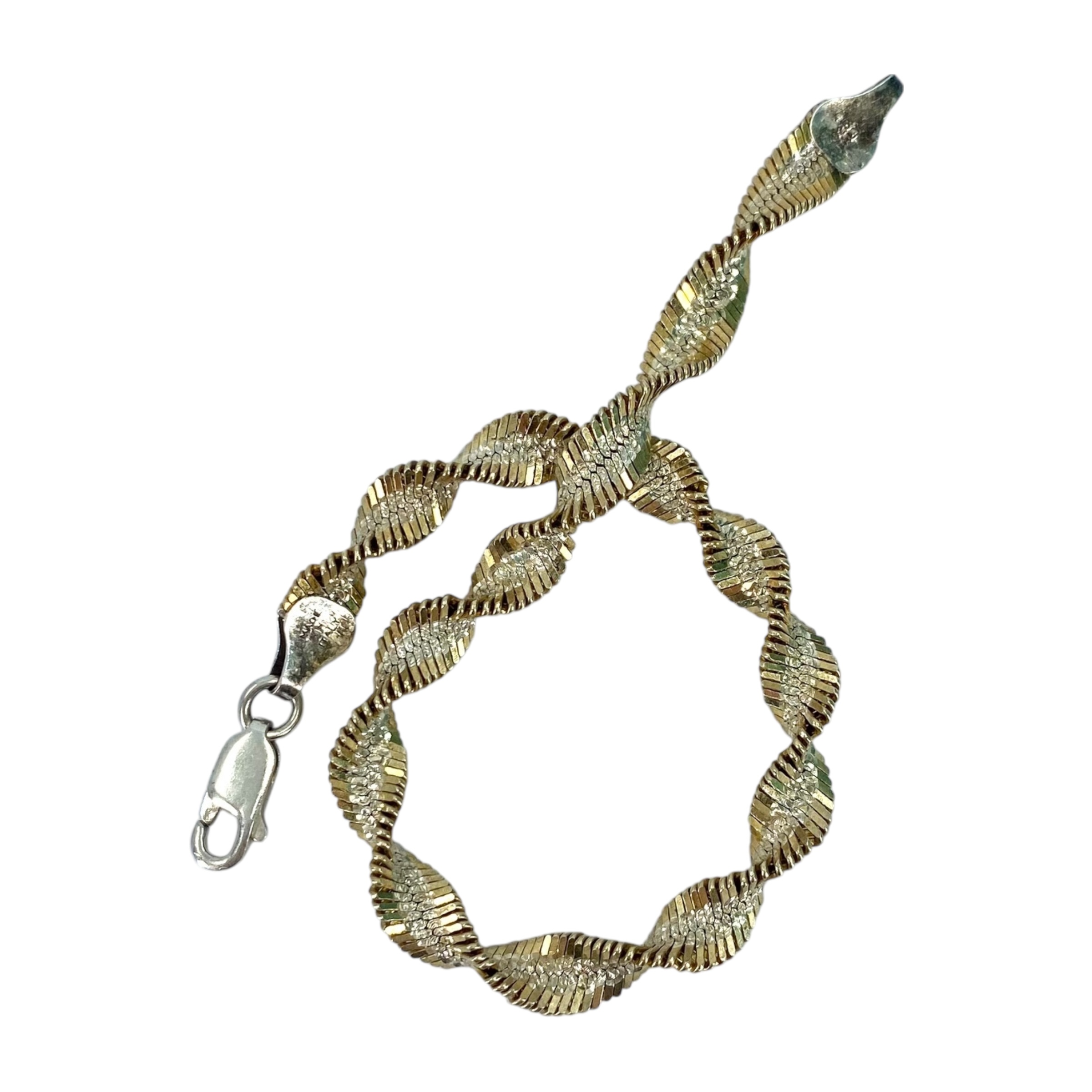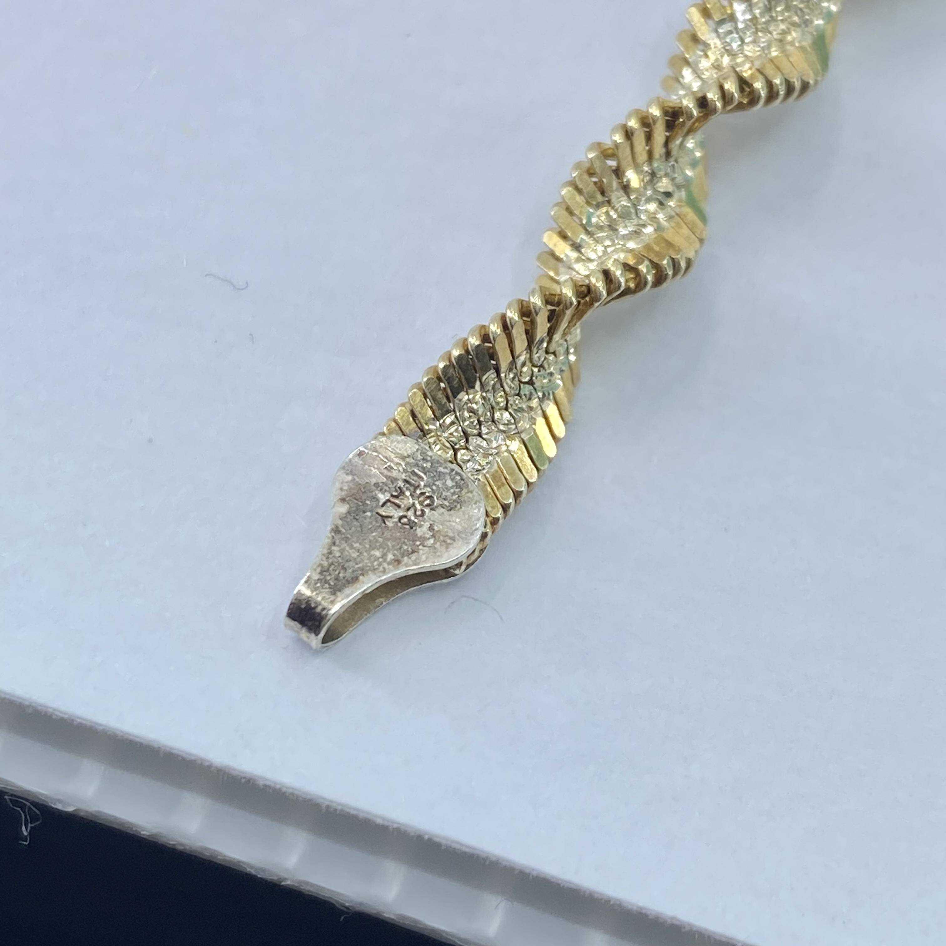 Signed Gold Over Sterling Twisted Herringbone Bracelet 9g 7.75in Engraved FAS Italy 925