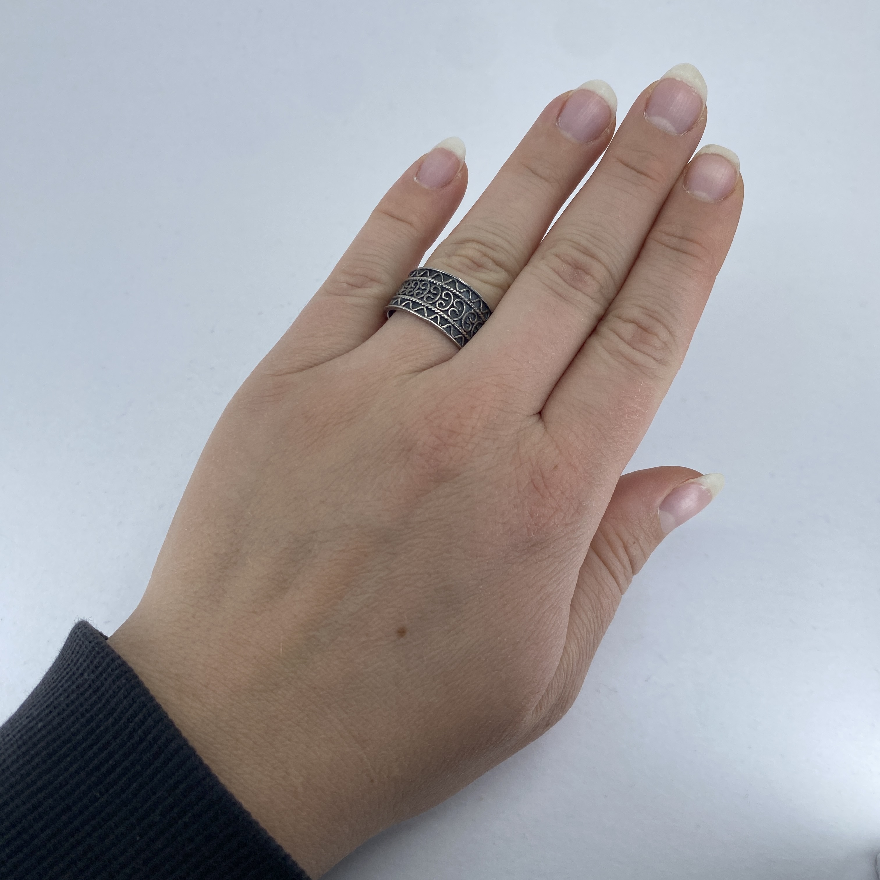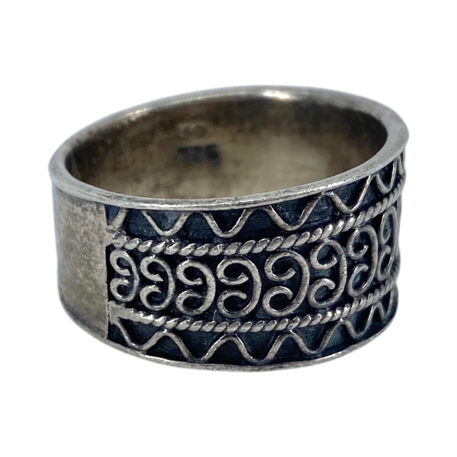 Signed Sterling Scroll Ring 7g sz 9 Engraved 925 CW