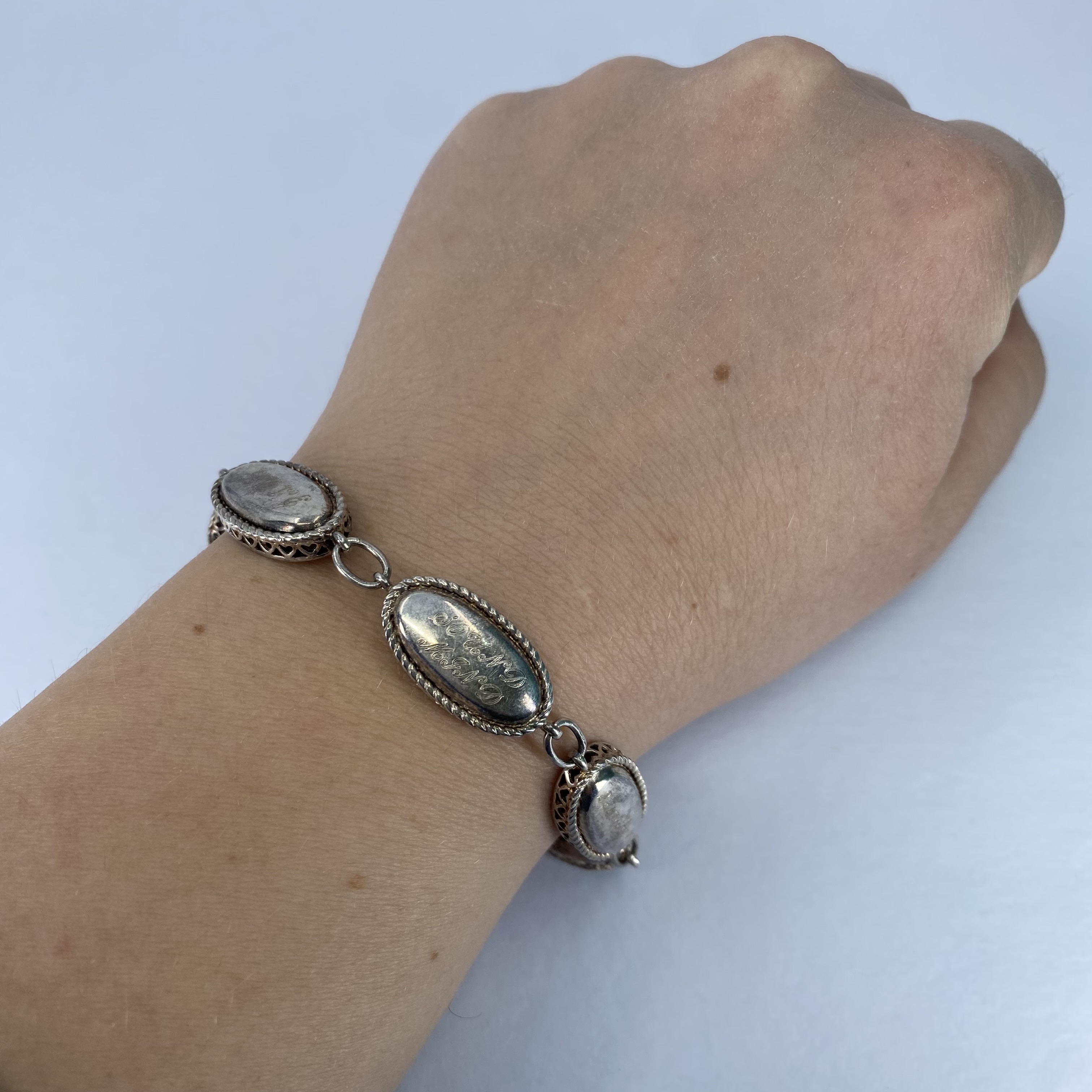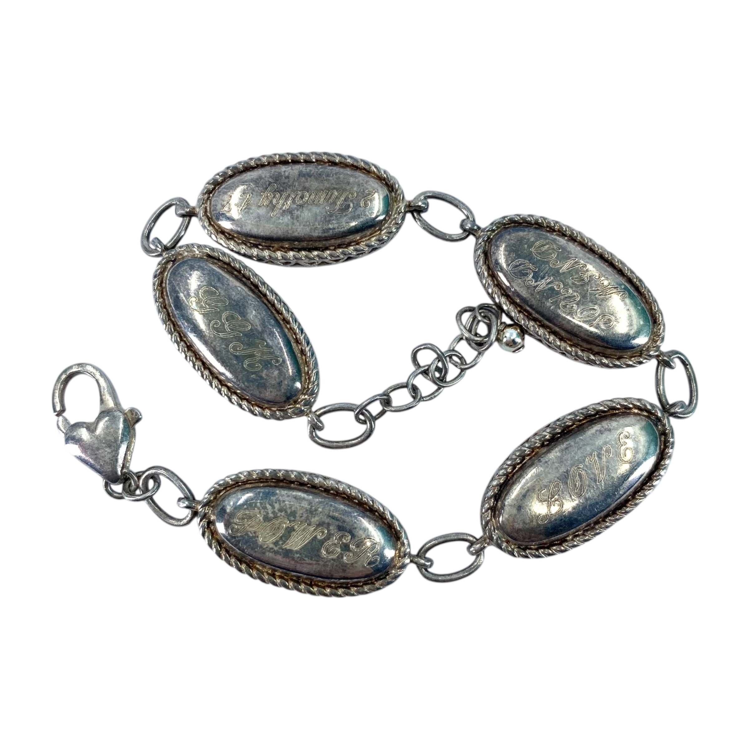 Signed Sterling Oval Link Engraved Bracelet 14g 8.5in Engraved Power Love Sound Mind 2 Tim 1 7 GGK I 925