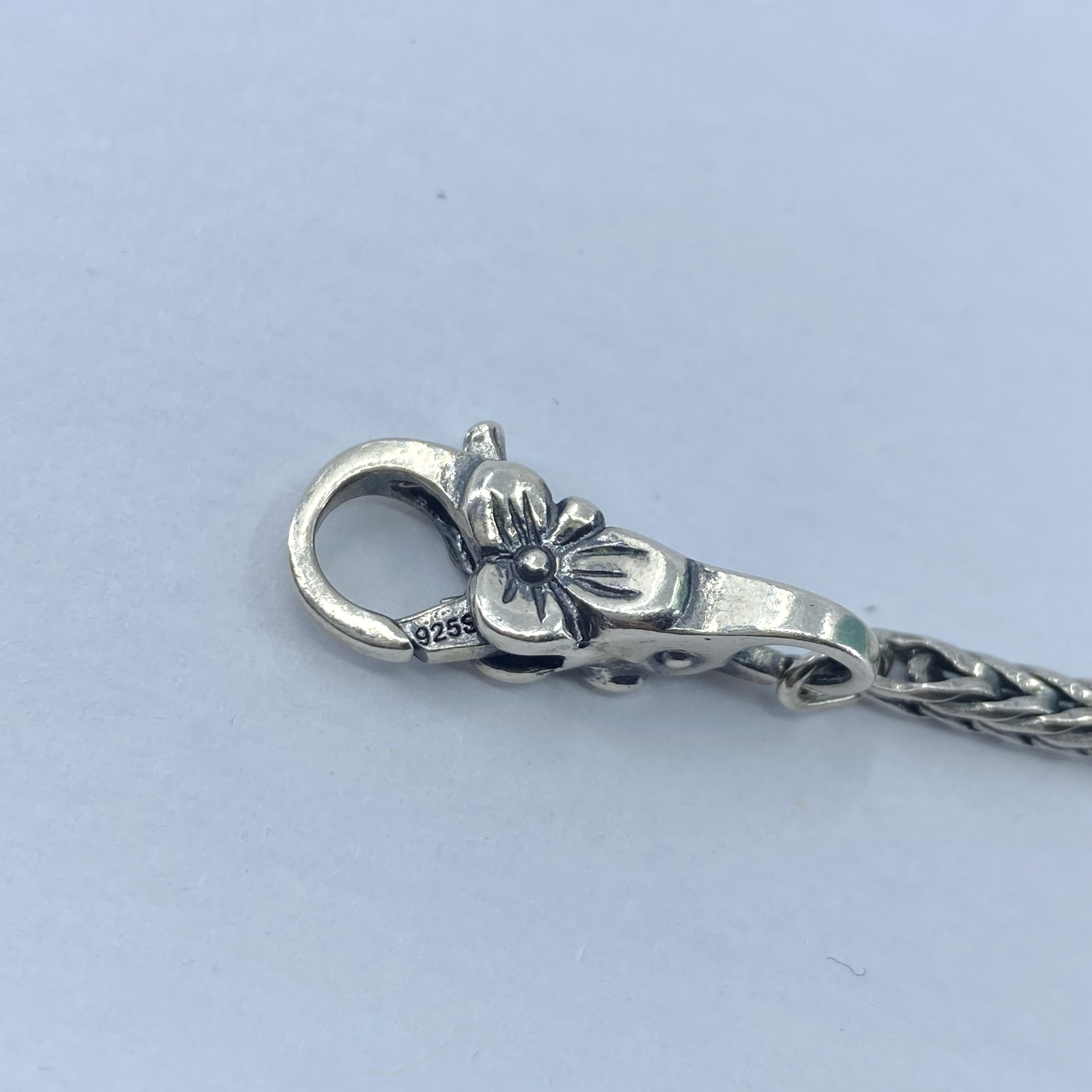 Signed Sterling Byzantine with Floral Charm Bracelet 12.2g Engraved 925 LA BMI