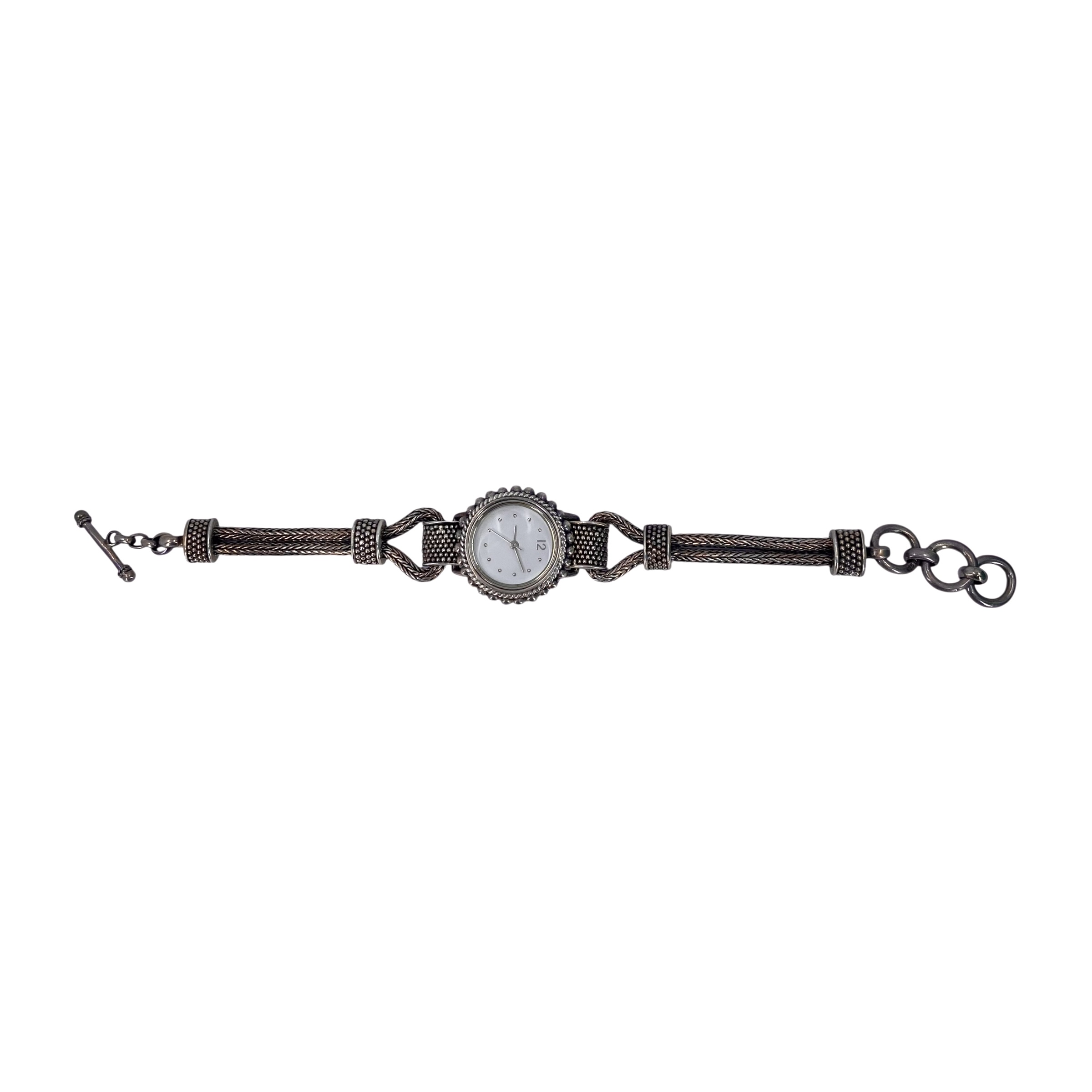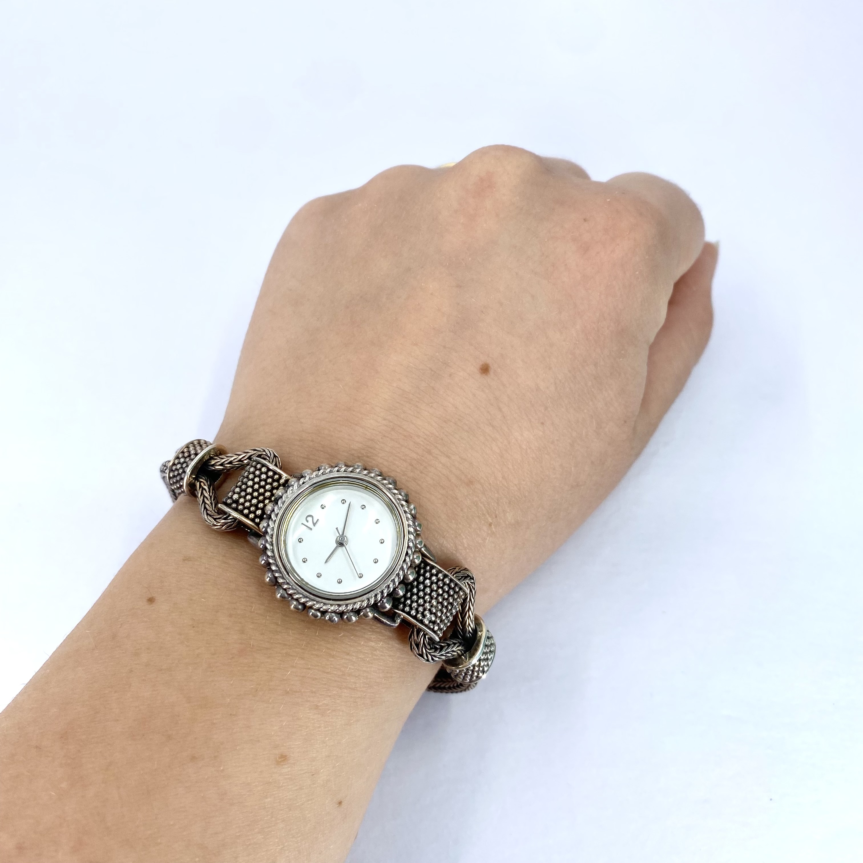 Suarti Bali Sterling Silver Analog Quartz Toggle Watch 50.2g 8.5in Engraved BA 925 Indonesia Stainless Steel Back Japan Movement Quartz