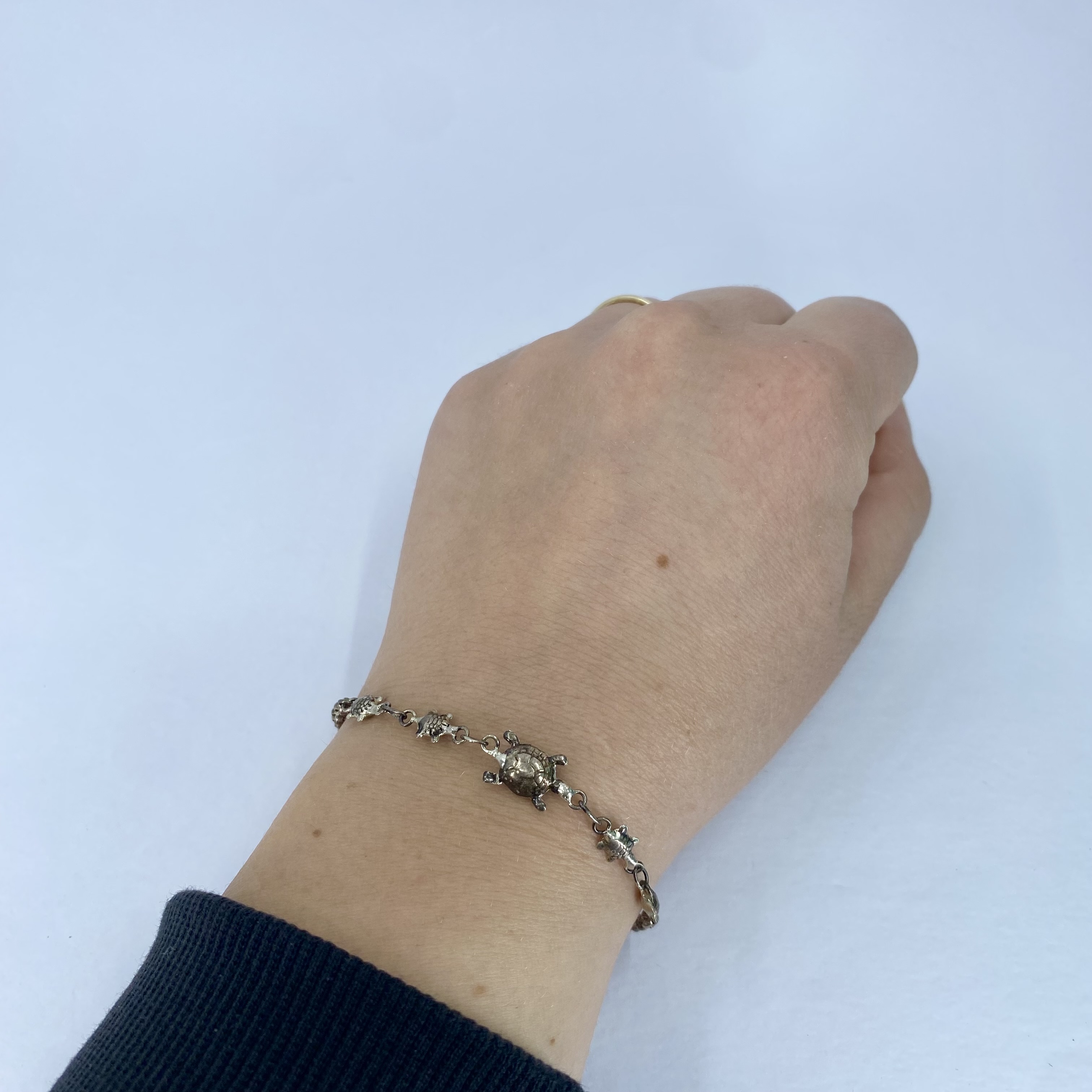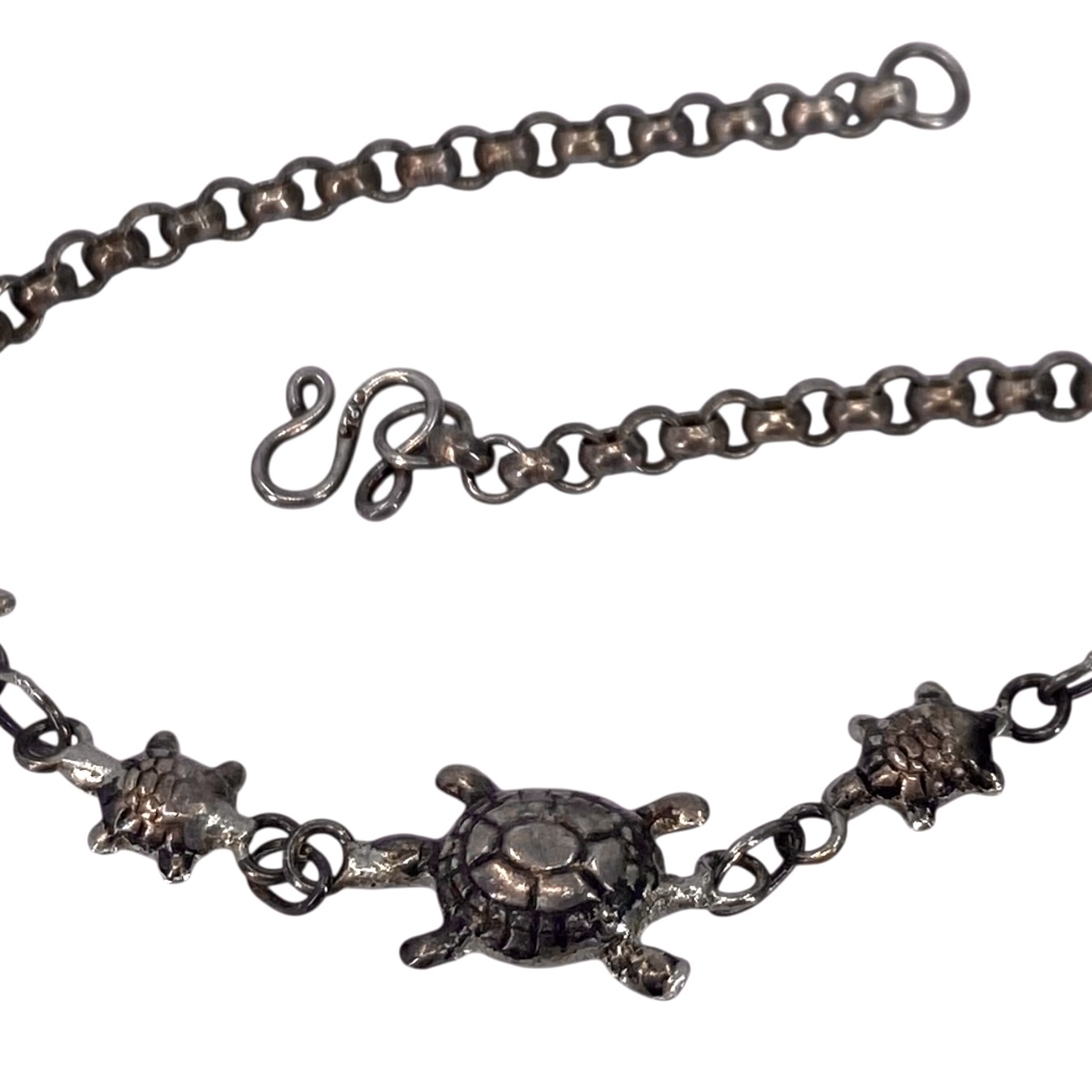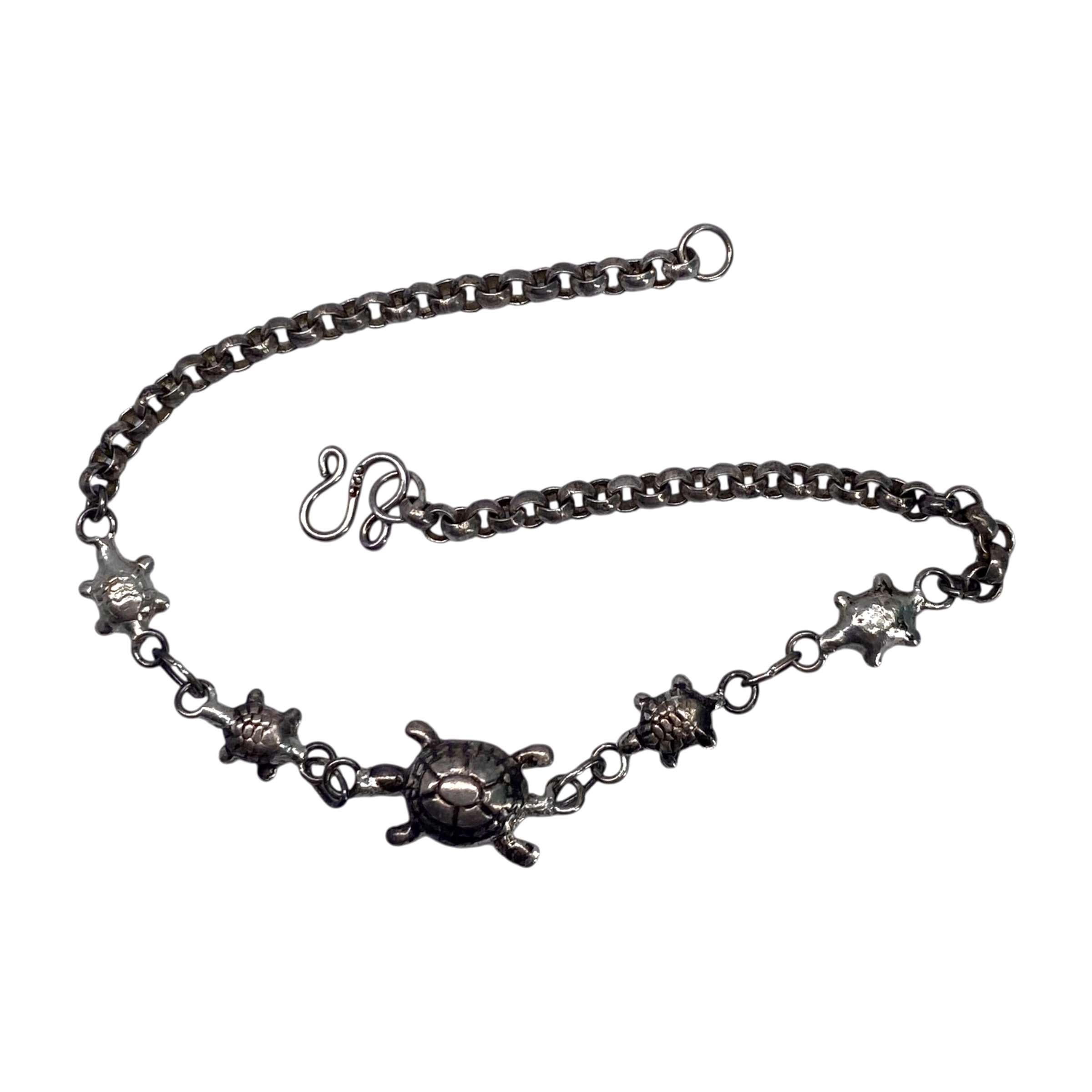 Sterling Turtle and Cable Chain Bracelet with S-hook Clasp 4g 7in Engraved 925