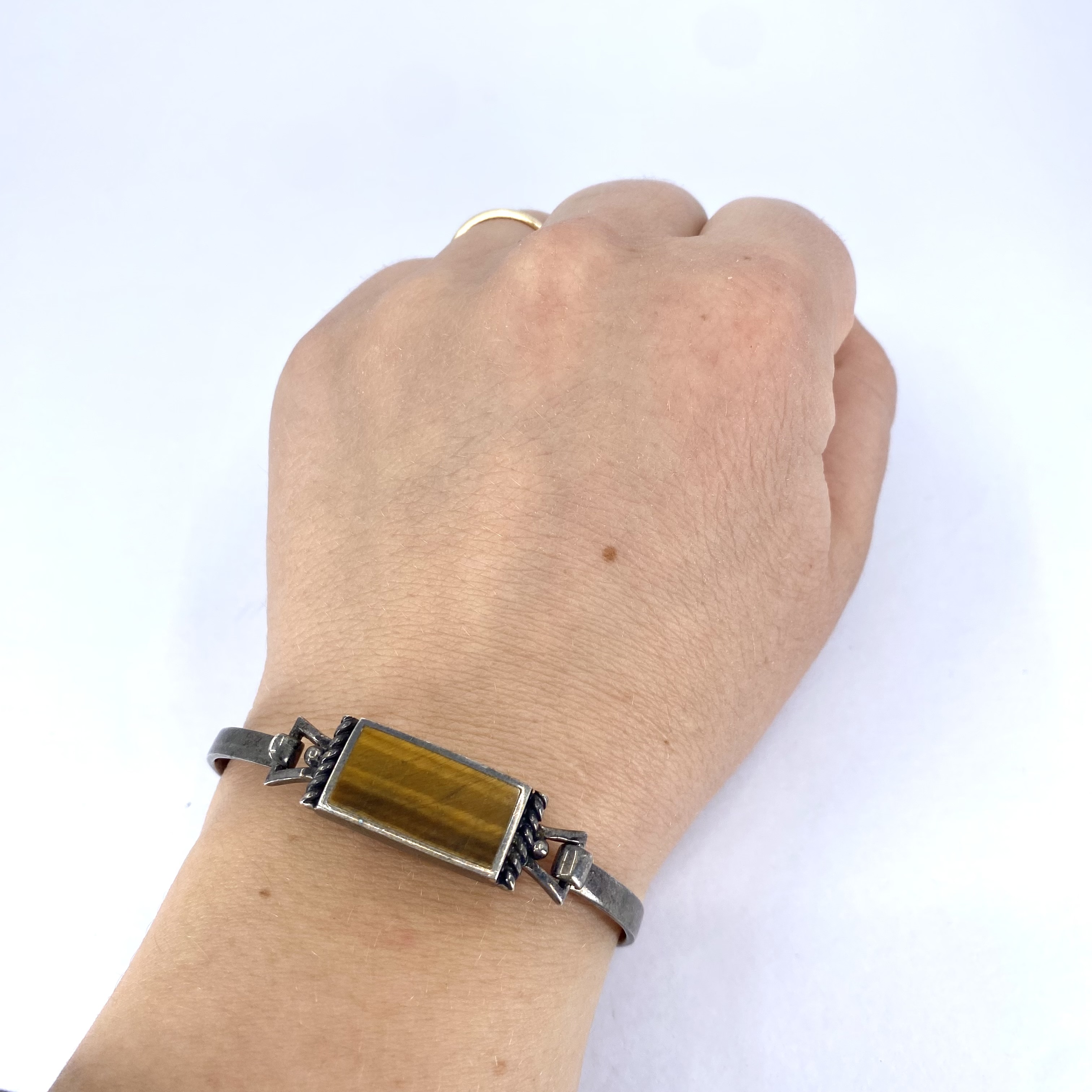 Signed Sterling Tigers Eye Bangle Bracelet 15g