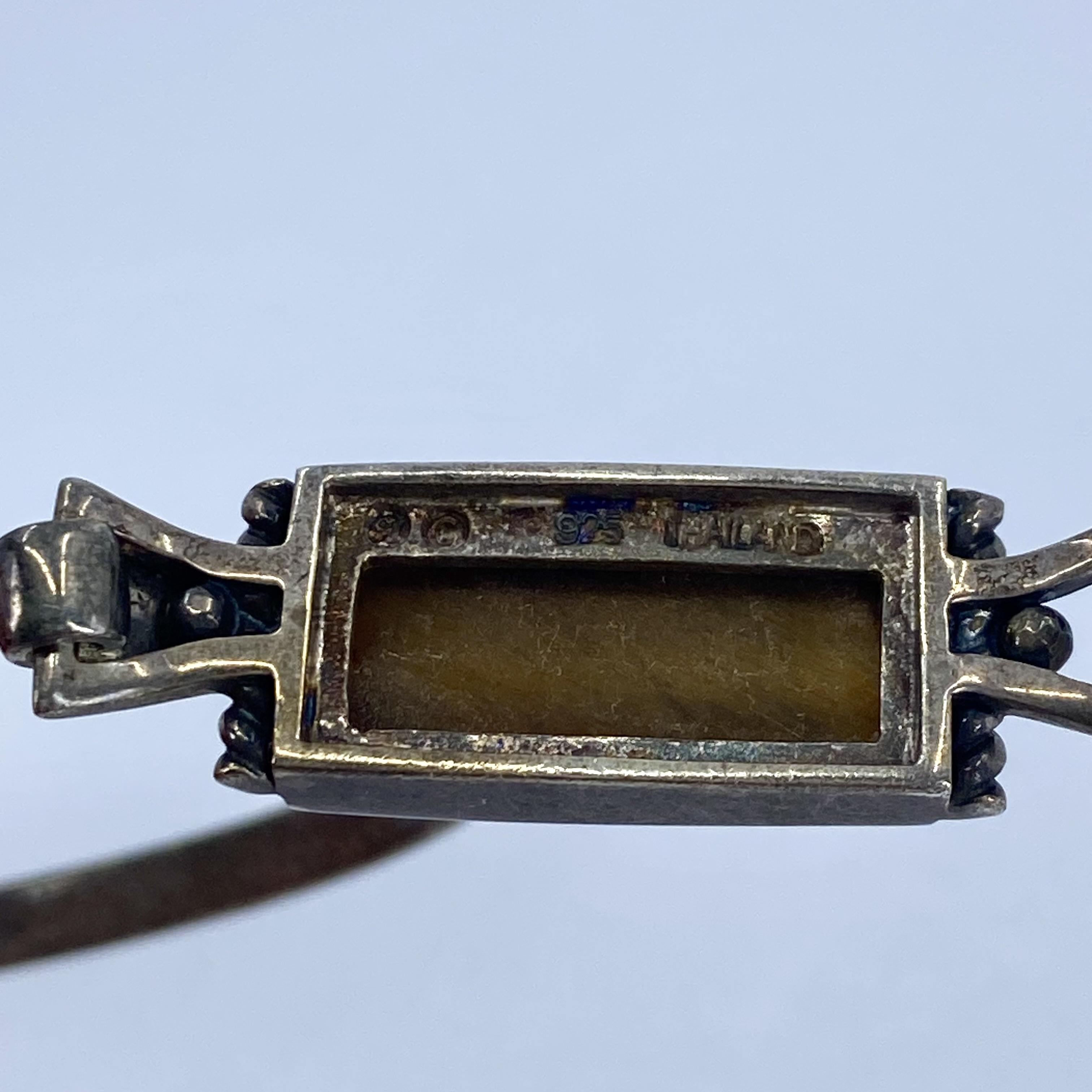 Signed Sterling Tigers Eye Bangle Bracelet 15g 6.75in Engraved SU Copyright 925 Thailand