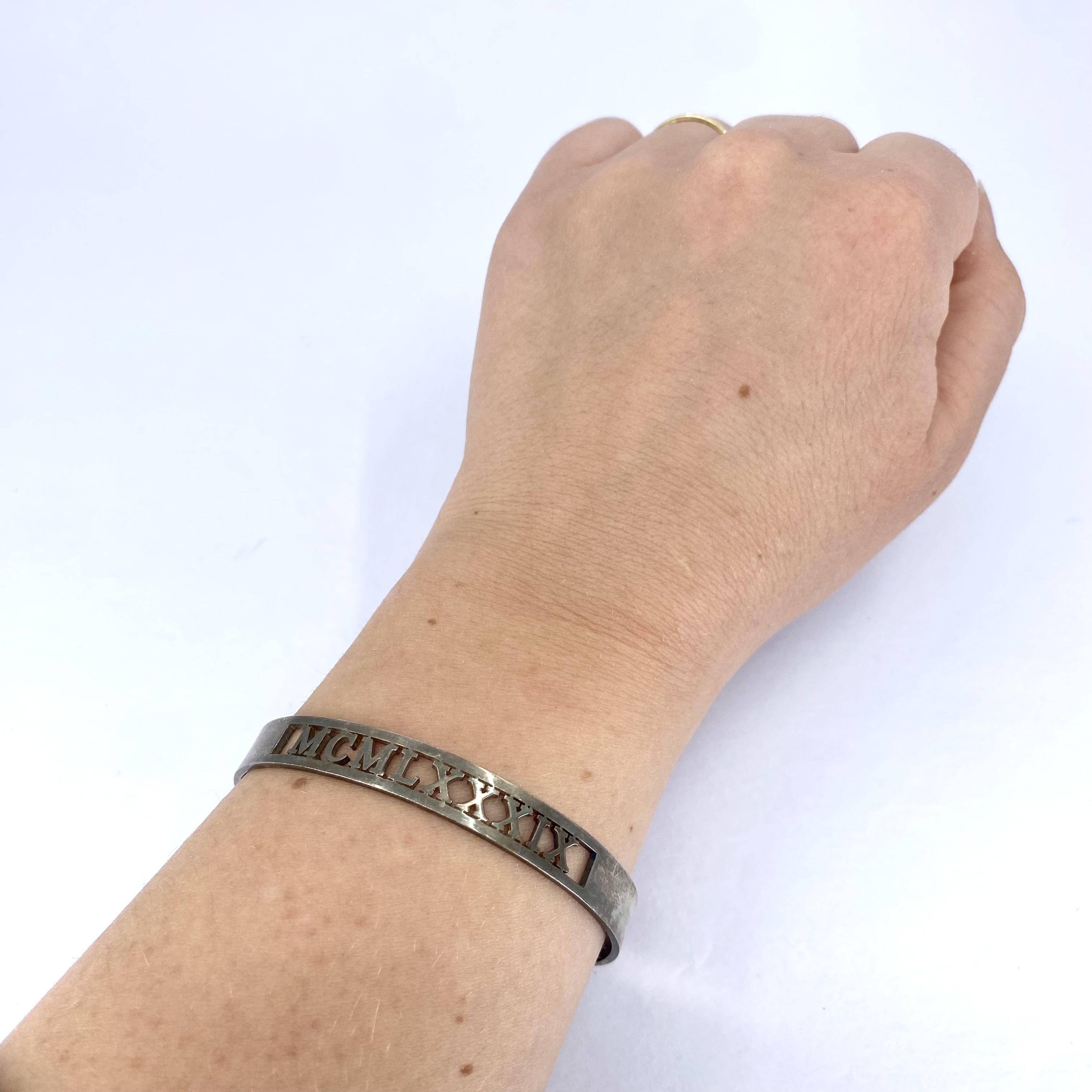 Sterling MCMLXXXIX Cut out Cuff Bracelet 19g