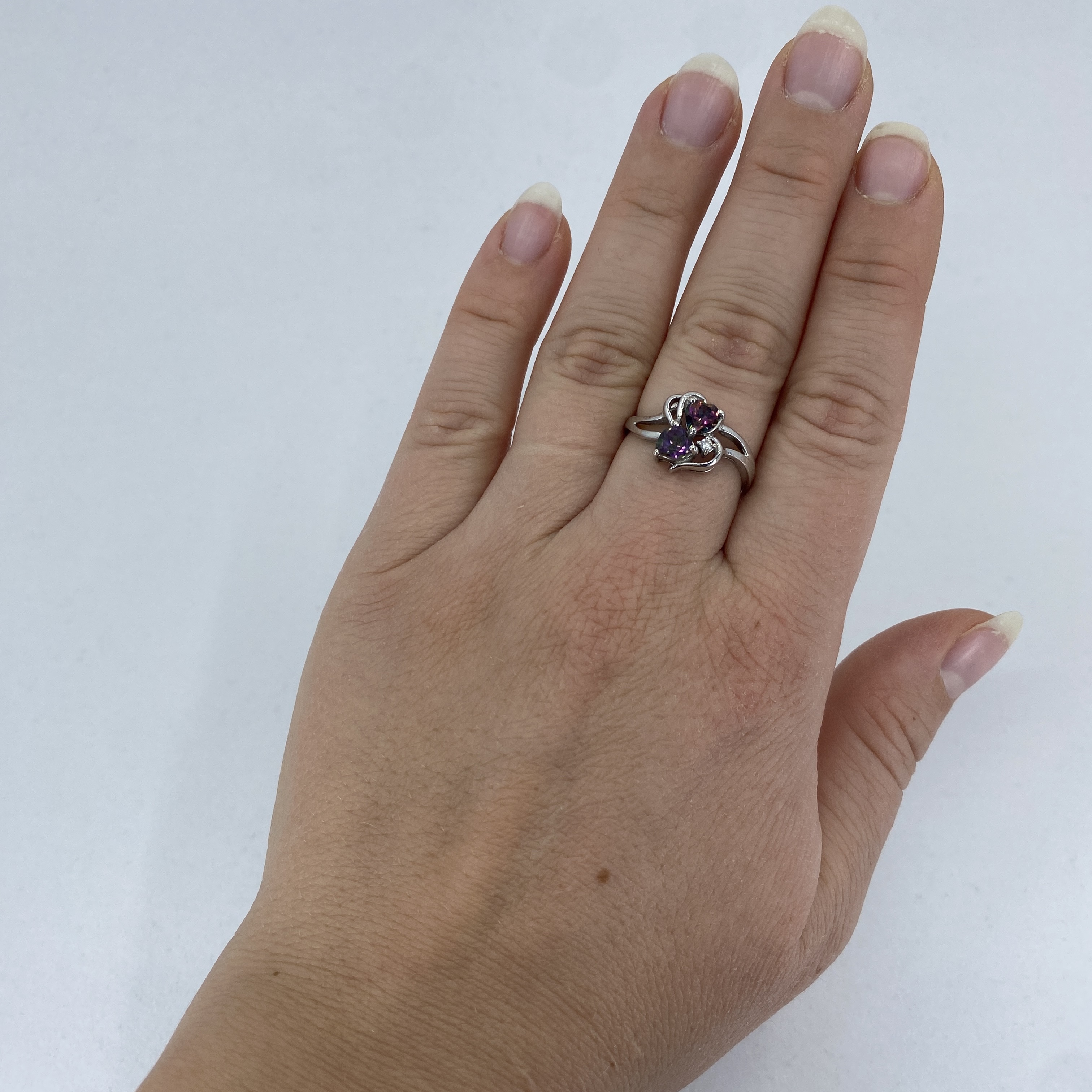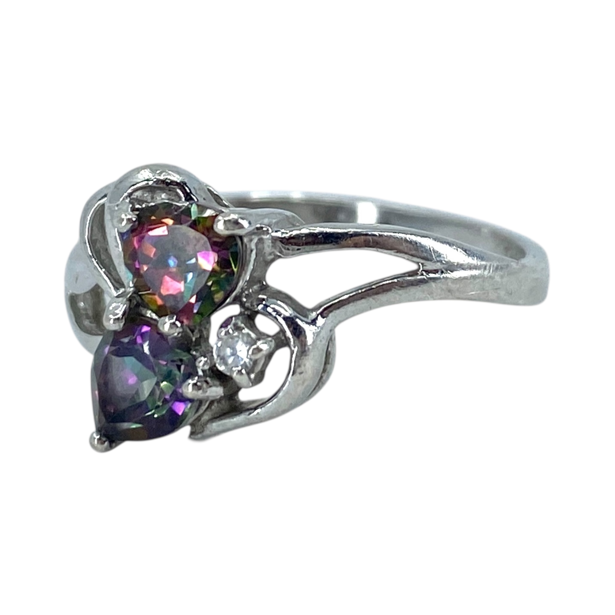 Sterling Mystic Topaz and Rhinestone Heart Cut Ring 3g sz 8.5 Engraved “NF 925 Thailand”