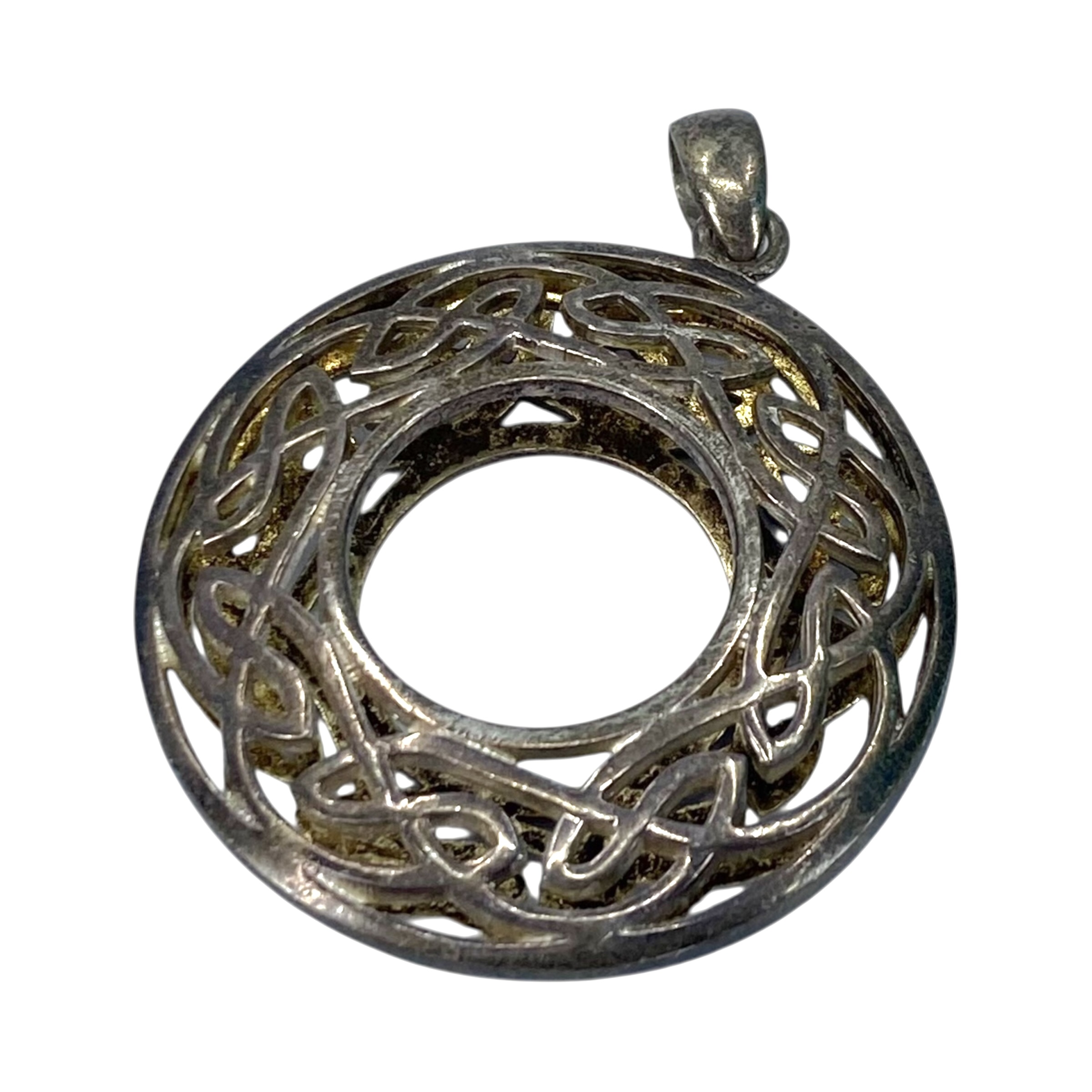 Signed Circle Filigree VIntage Pendant 12g Engraved with Hallmark – J – ? and 925