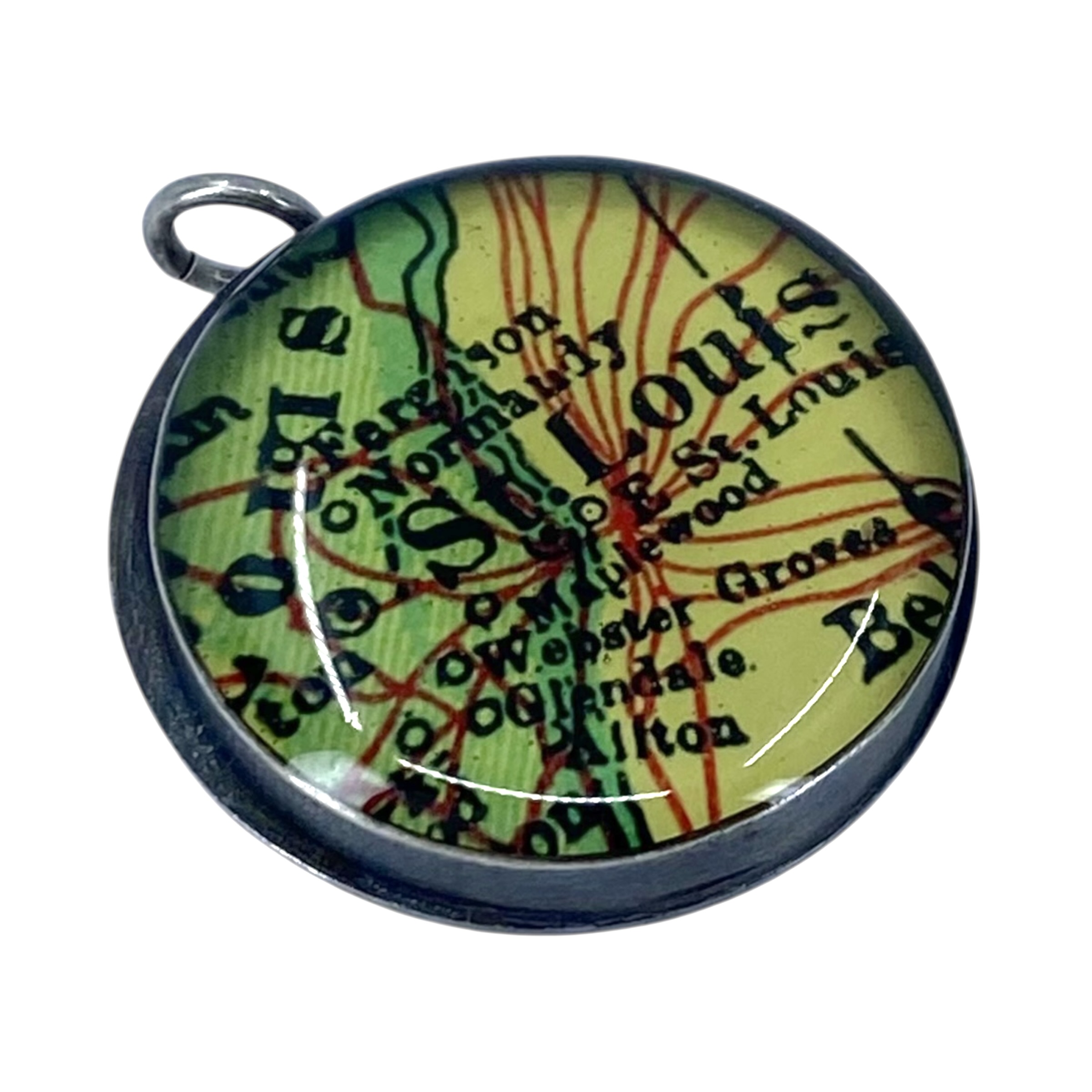 Signed Sterling St Louis Map Pendant 6.4g