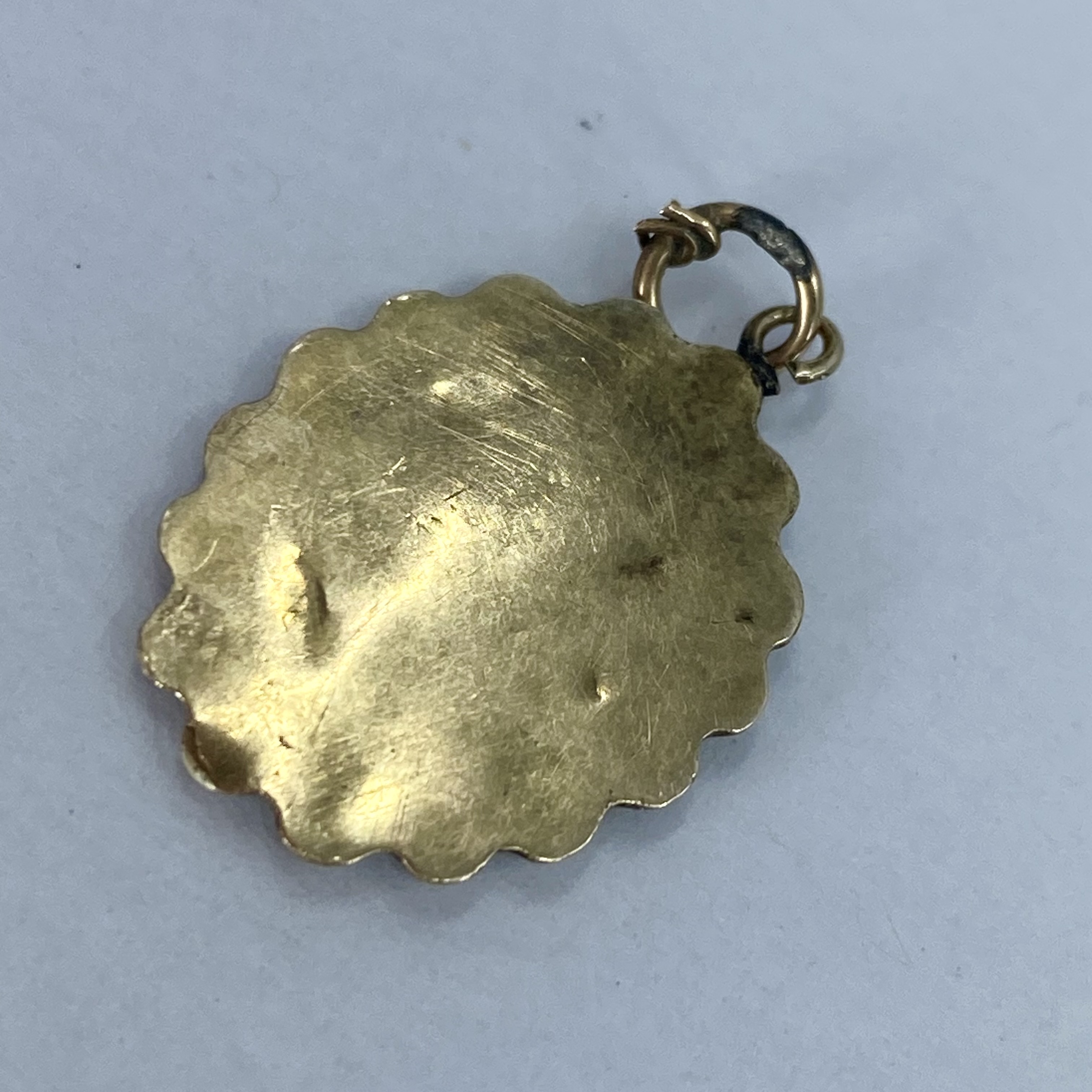Sterling Marcasite Painted Our Lady of Lourdes Medal Charm 1.2g Broken Chain