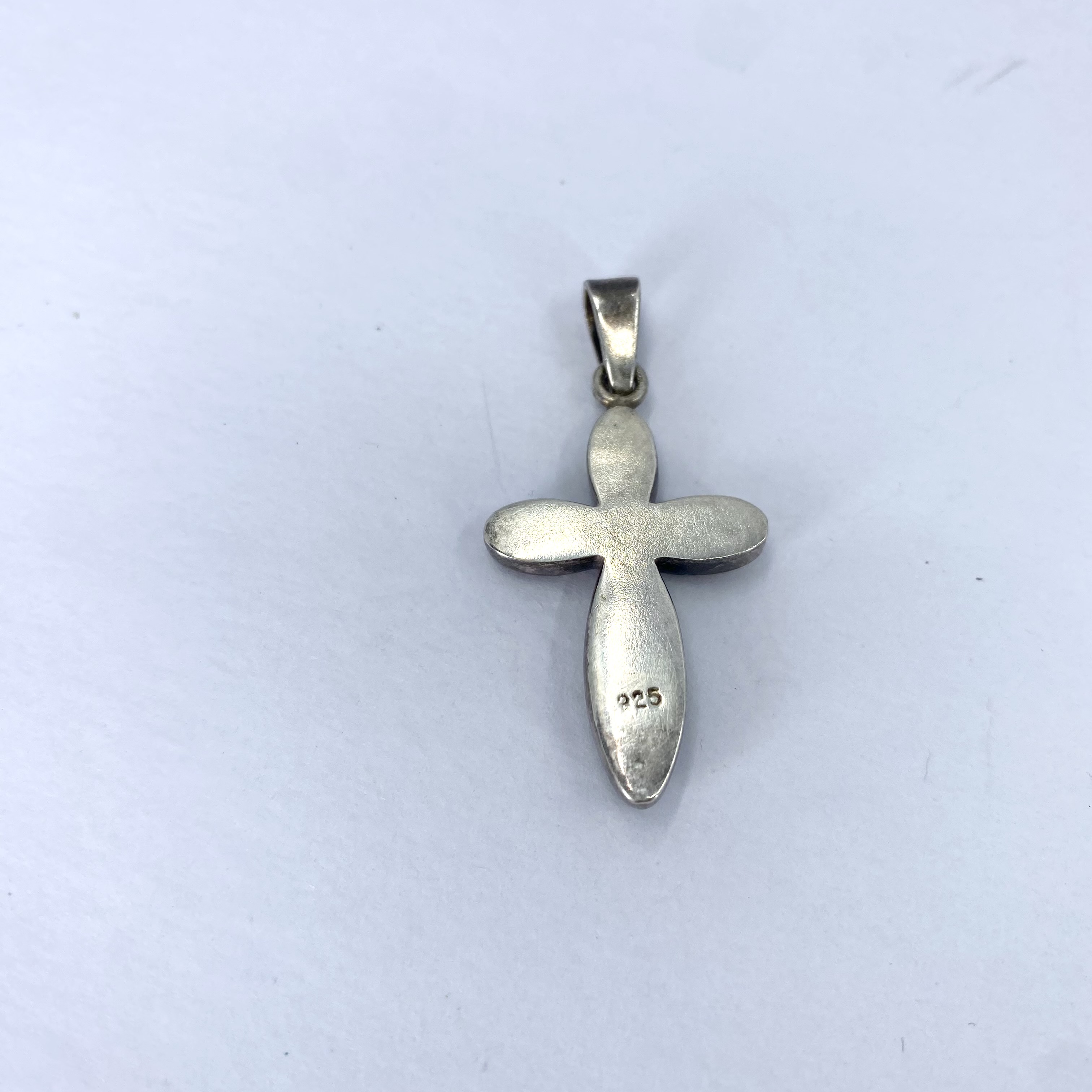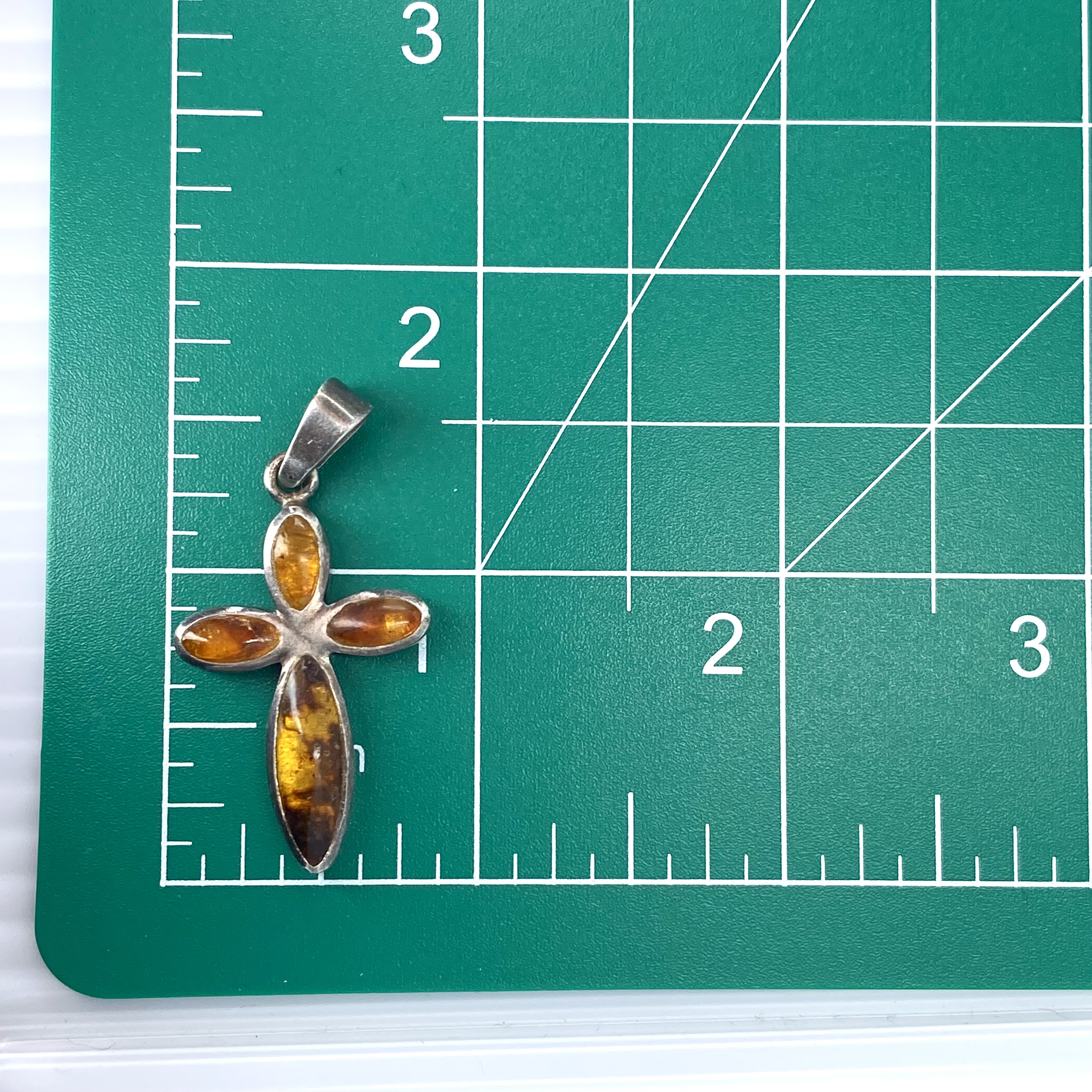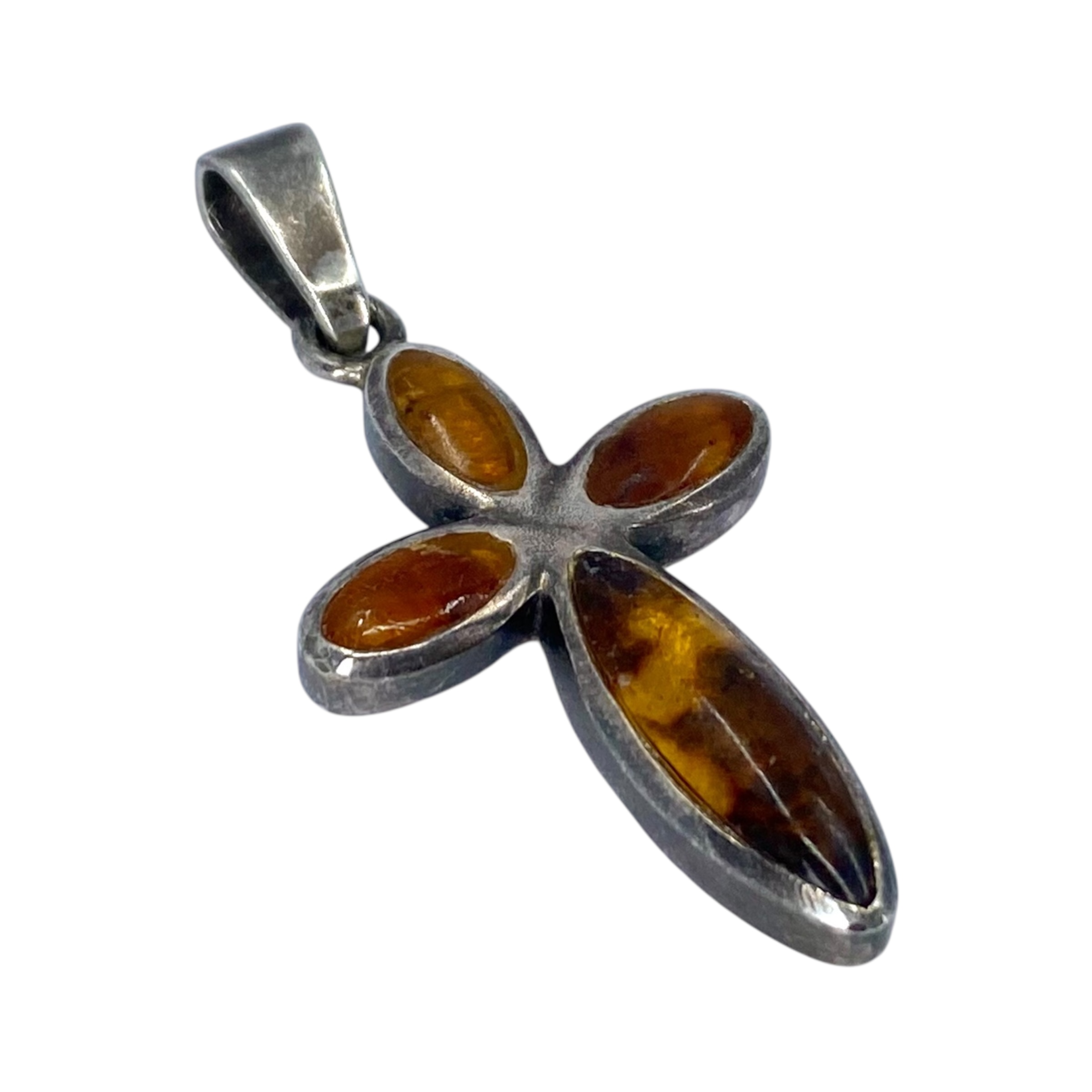 Sterling Amber Inlay Bubble Cross 5.1g Engraved 925