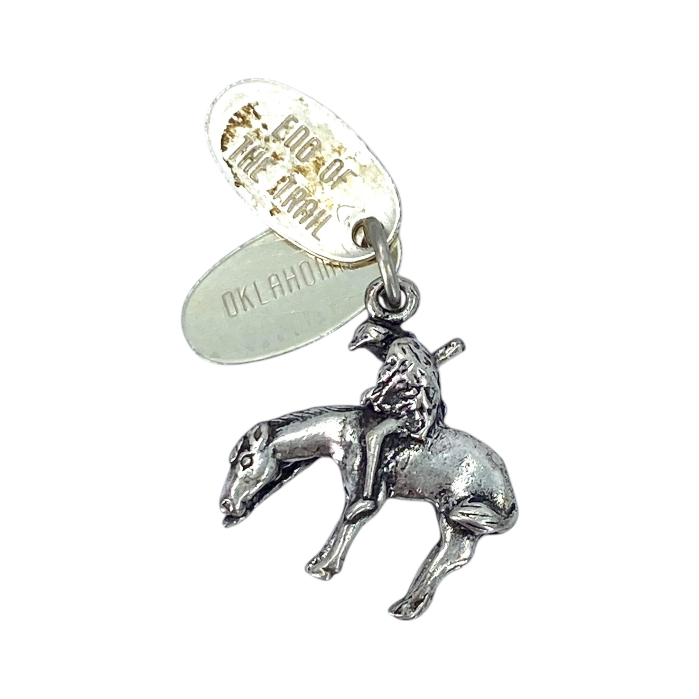Signed Sterling End of the Trail Horse Riding Charm 4g Engraved End of the Trail Oklahoma
