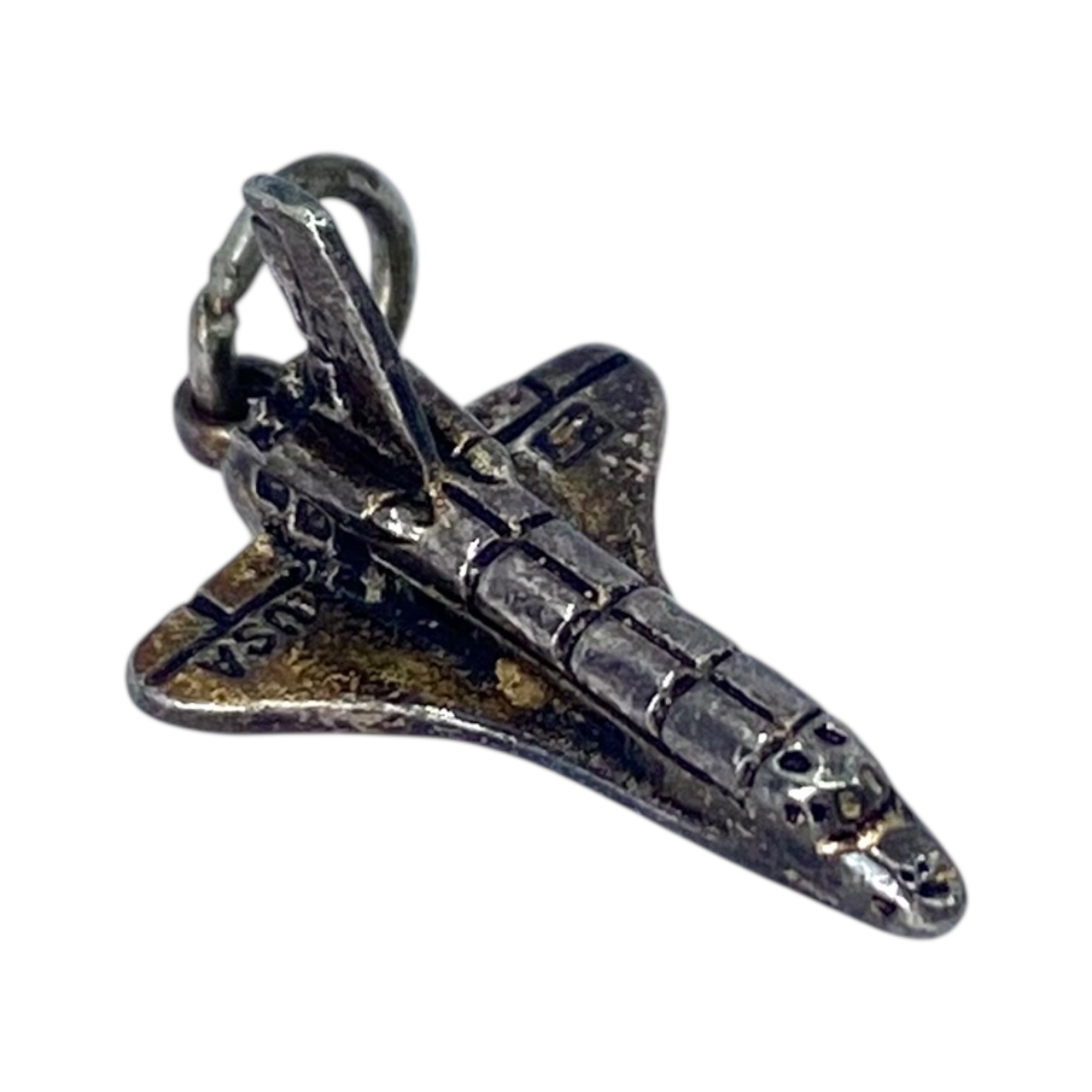Signed Sterling NASA Space Shuttle Charm 2g Engraved USA Fort Sterling