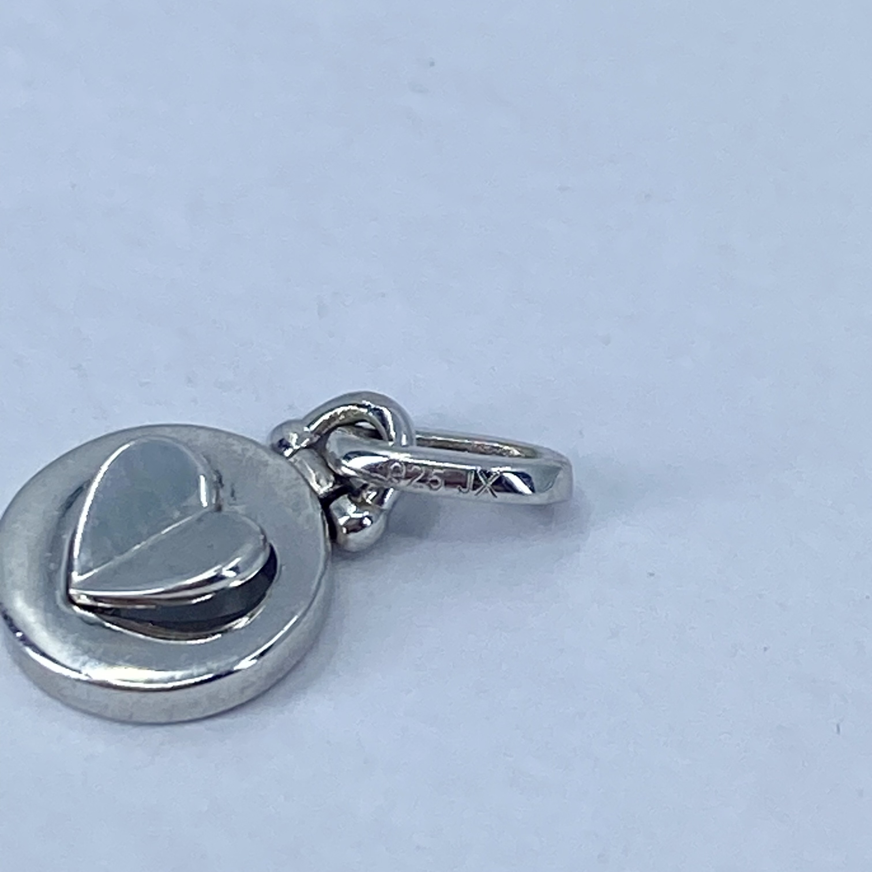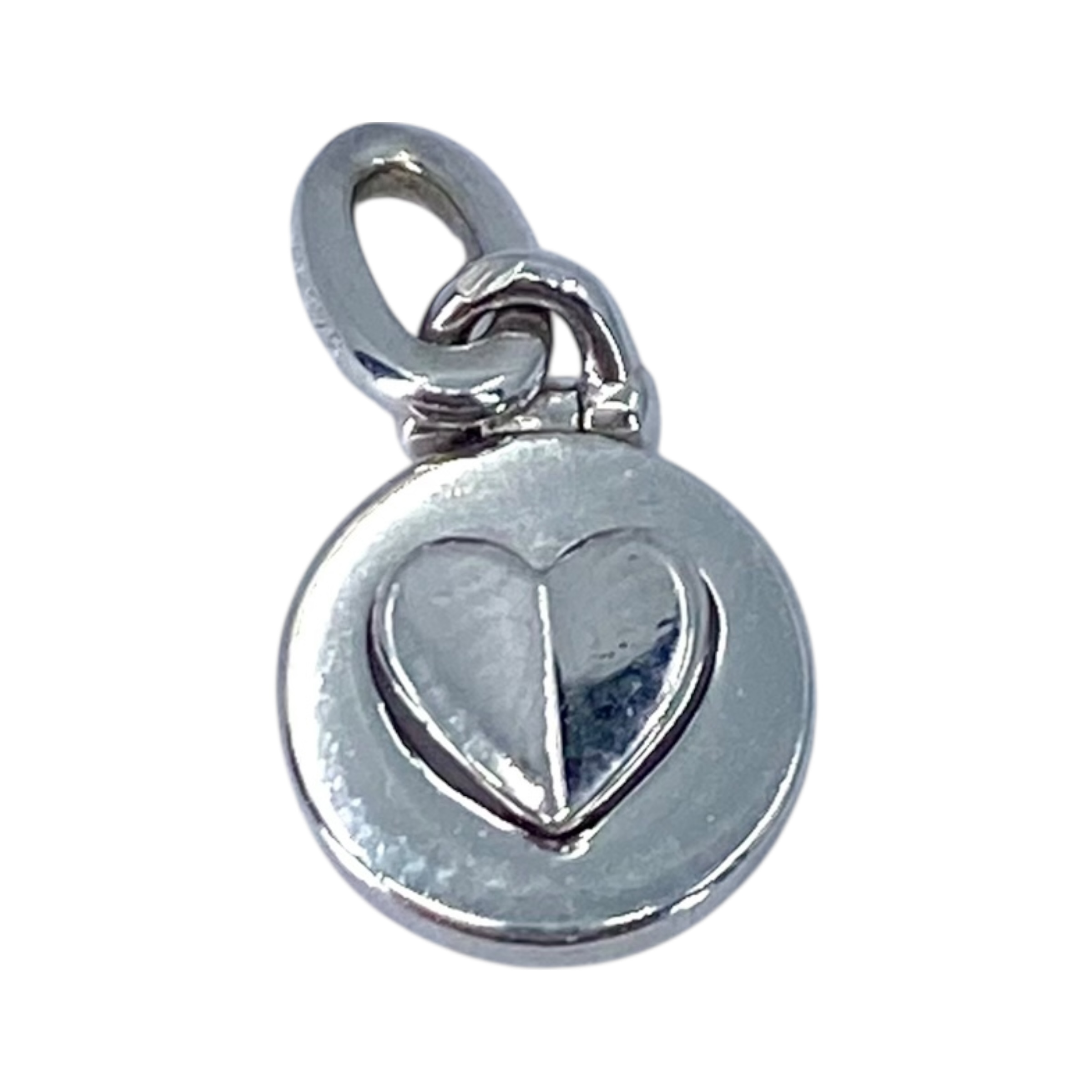 Signed Sterling Raised Heart Circle Charm 1.1g