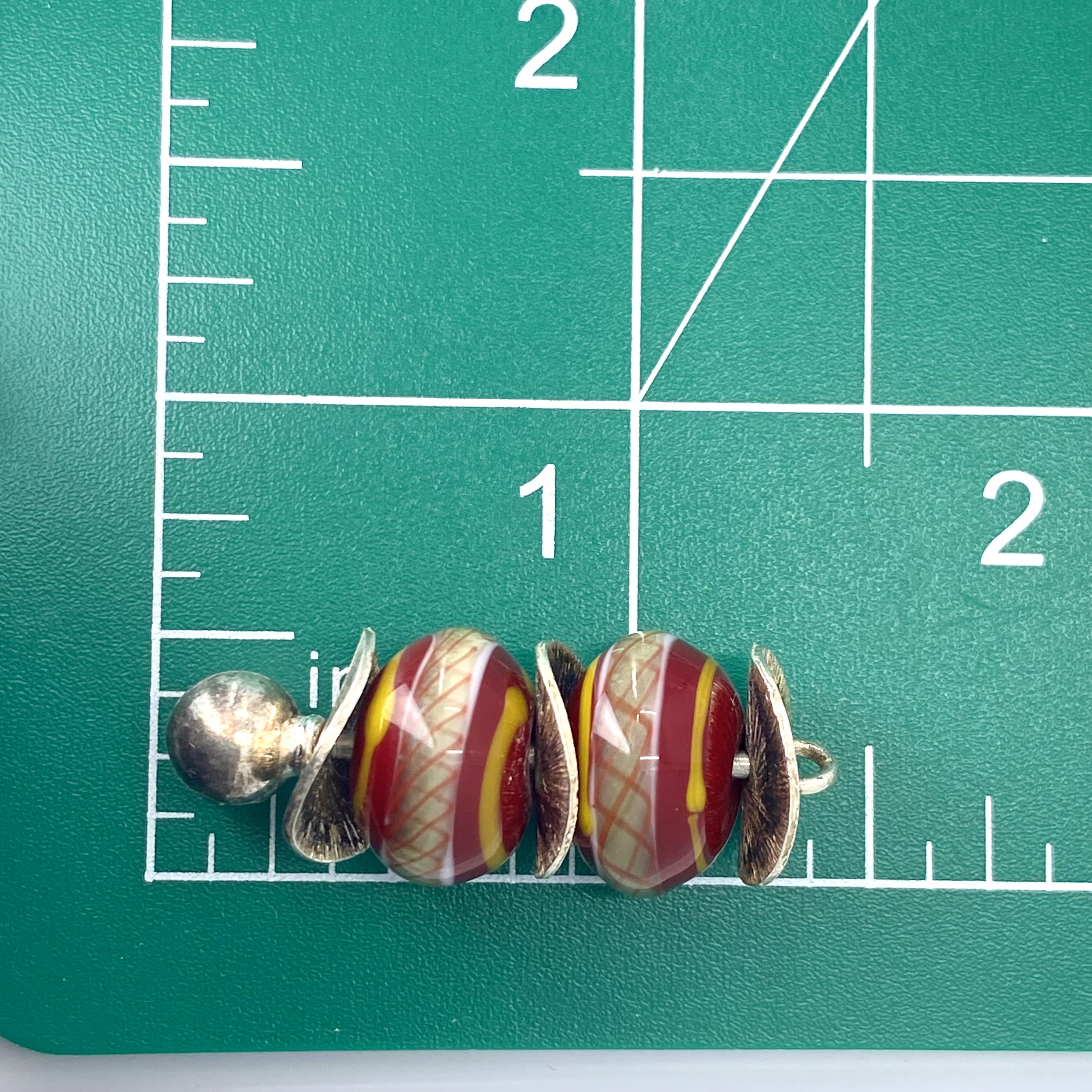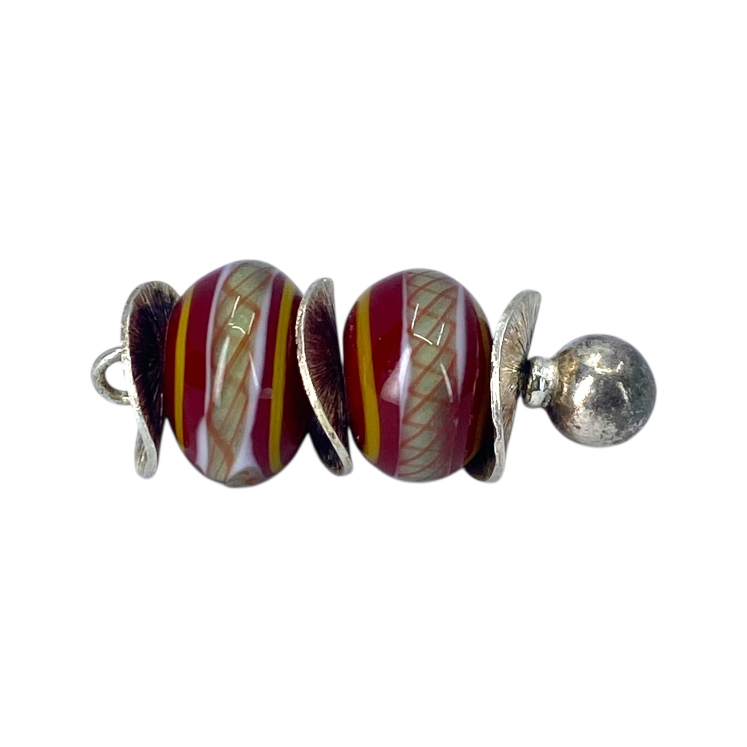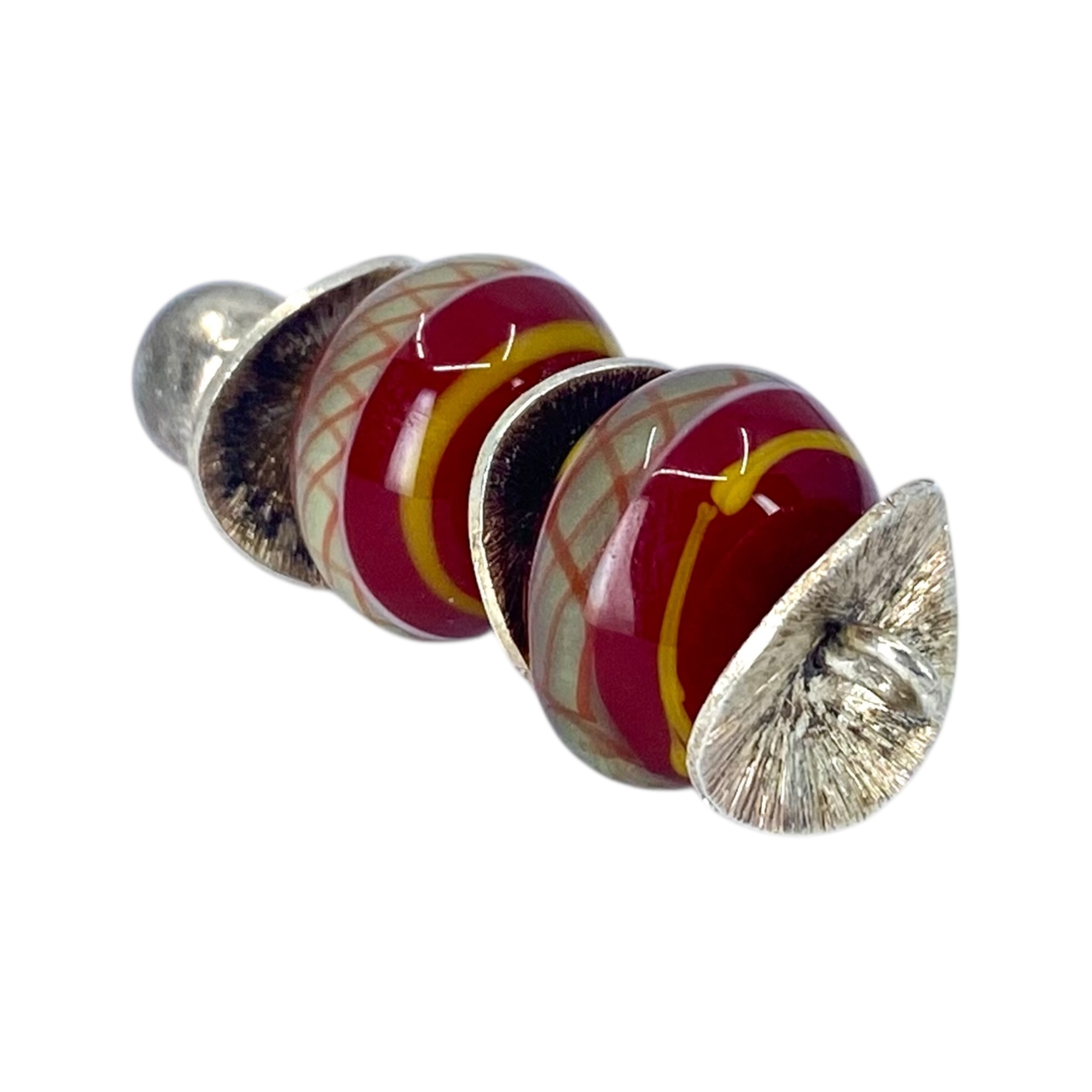 Sterling Red Painted Marble Stacked Pendant 8g