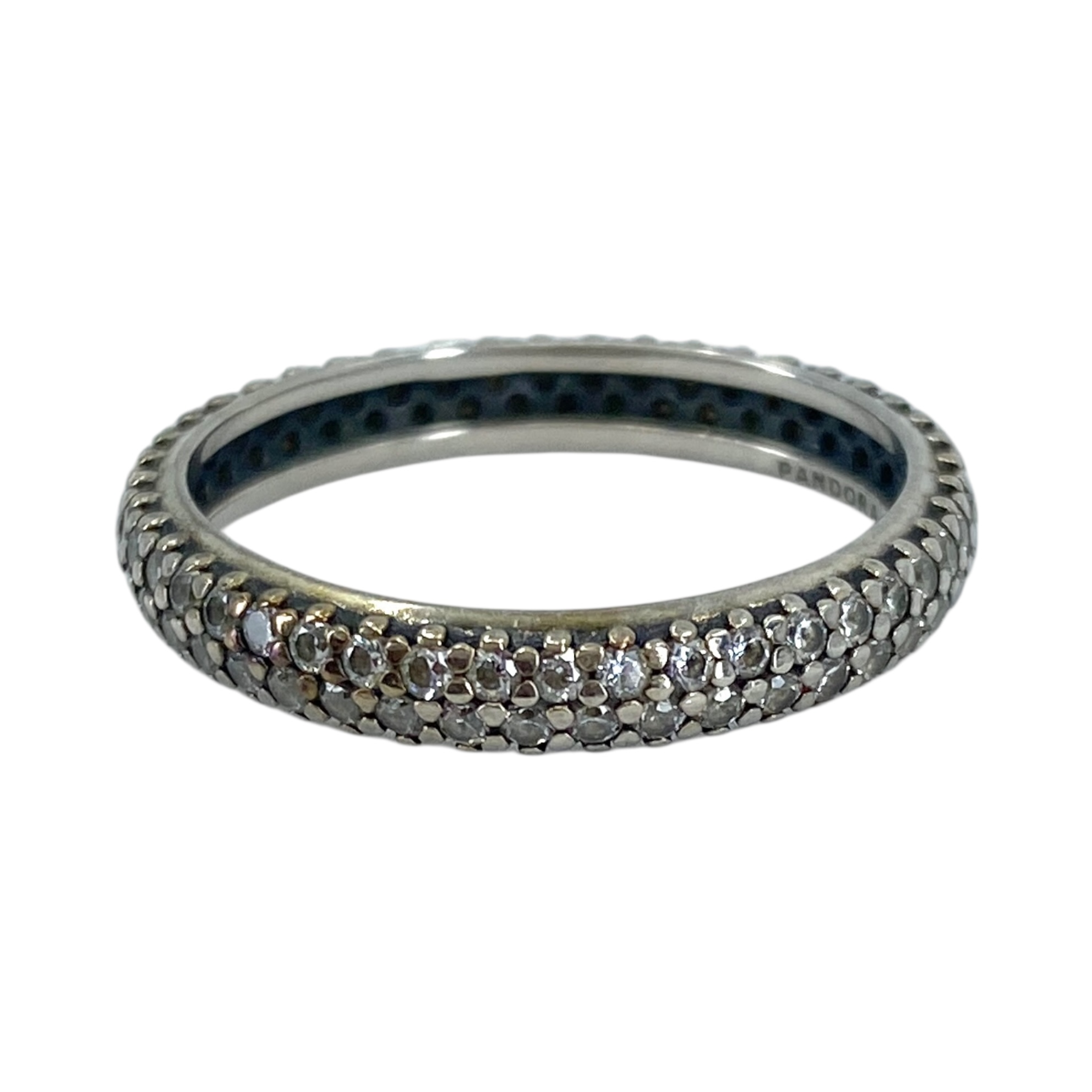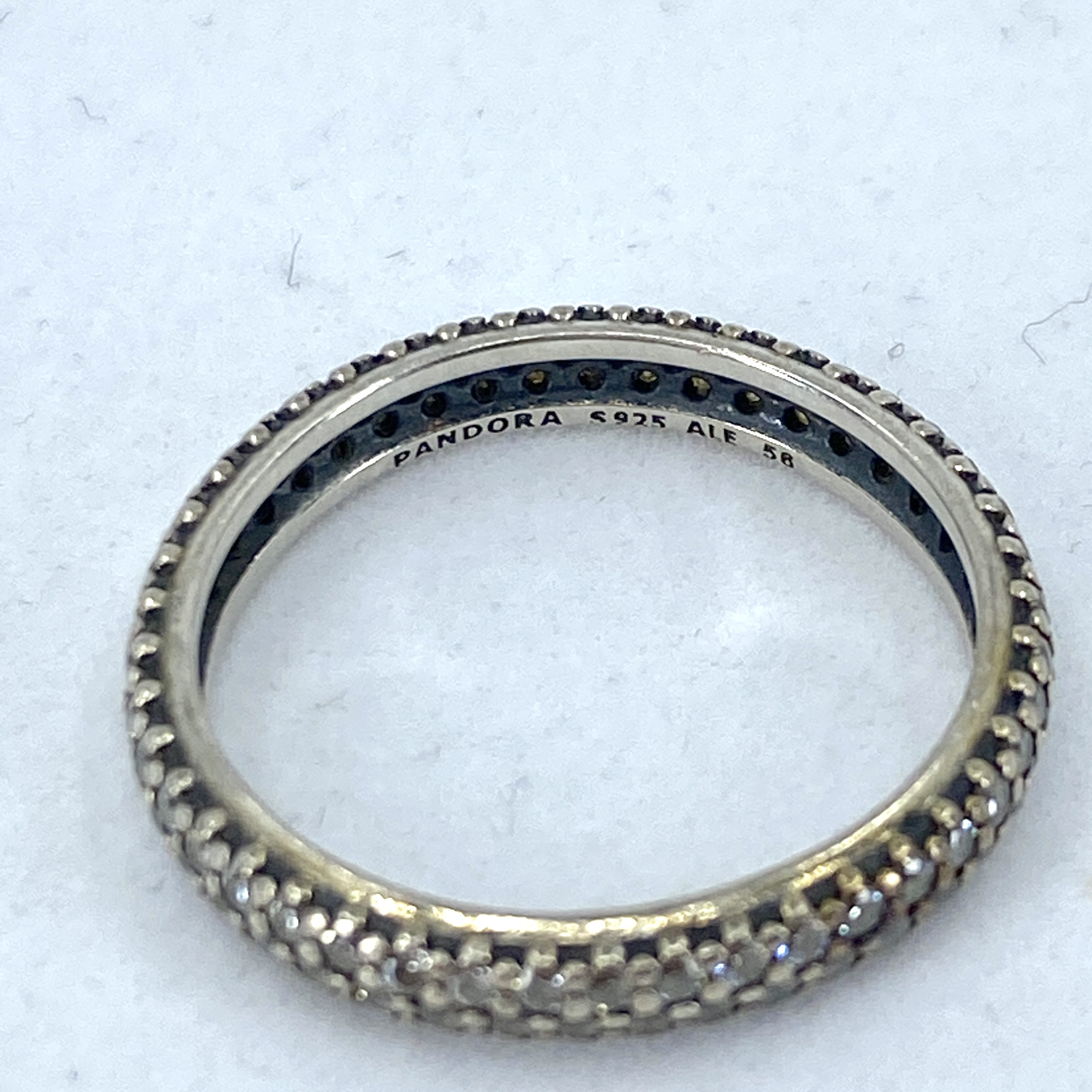 Pandora Sterling Rhinestone Eternity Band 2.1g sz 7.5 Engraved “Pandora S925 ALE 56”