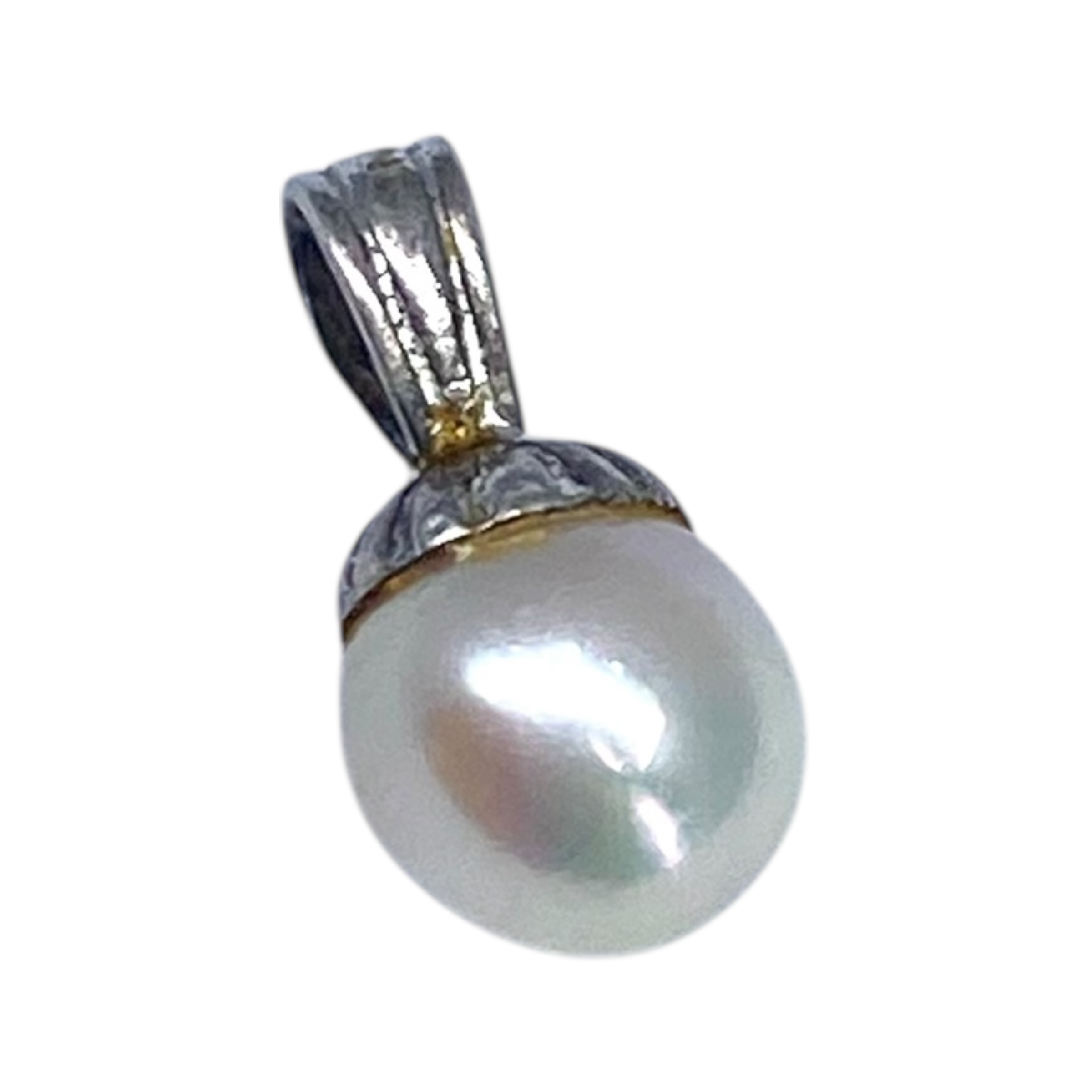 Sterling Black Pearl Drop Charm 1.4g Engraved S925