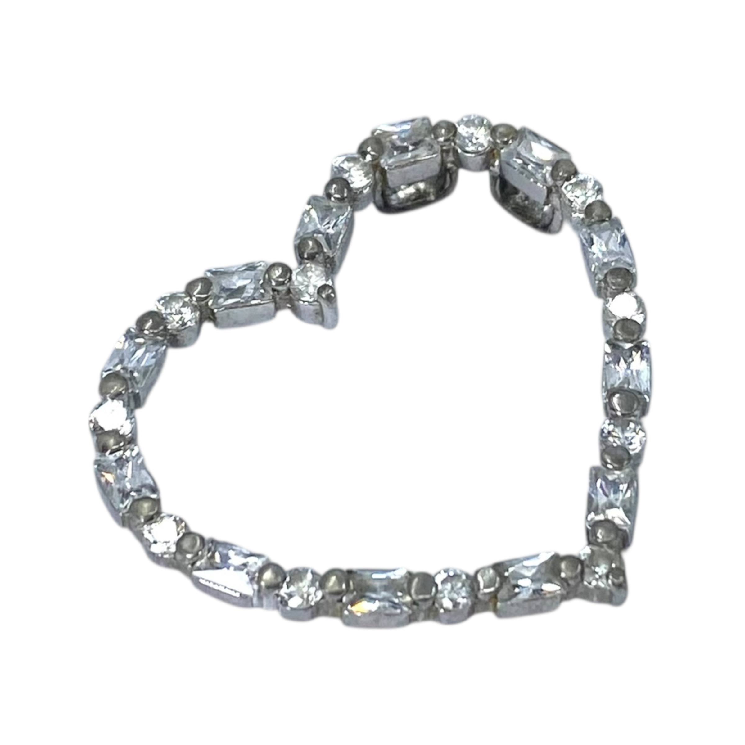 Signed Sterling Rhinestone Open Heart Pendant 3g Engraved FAS 925