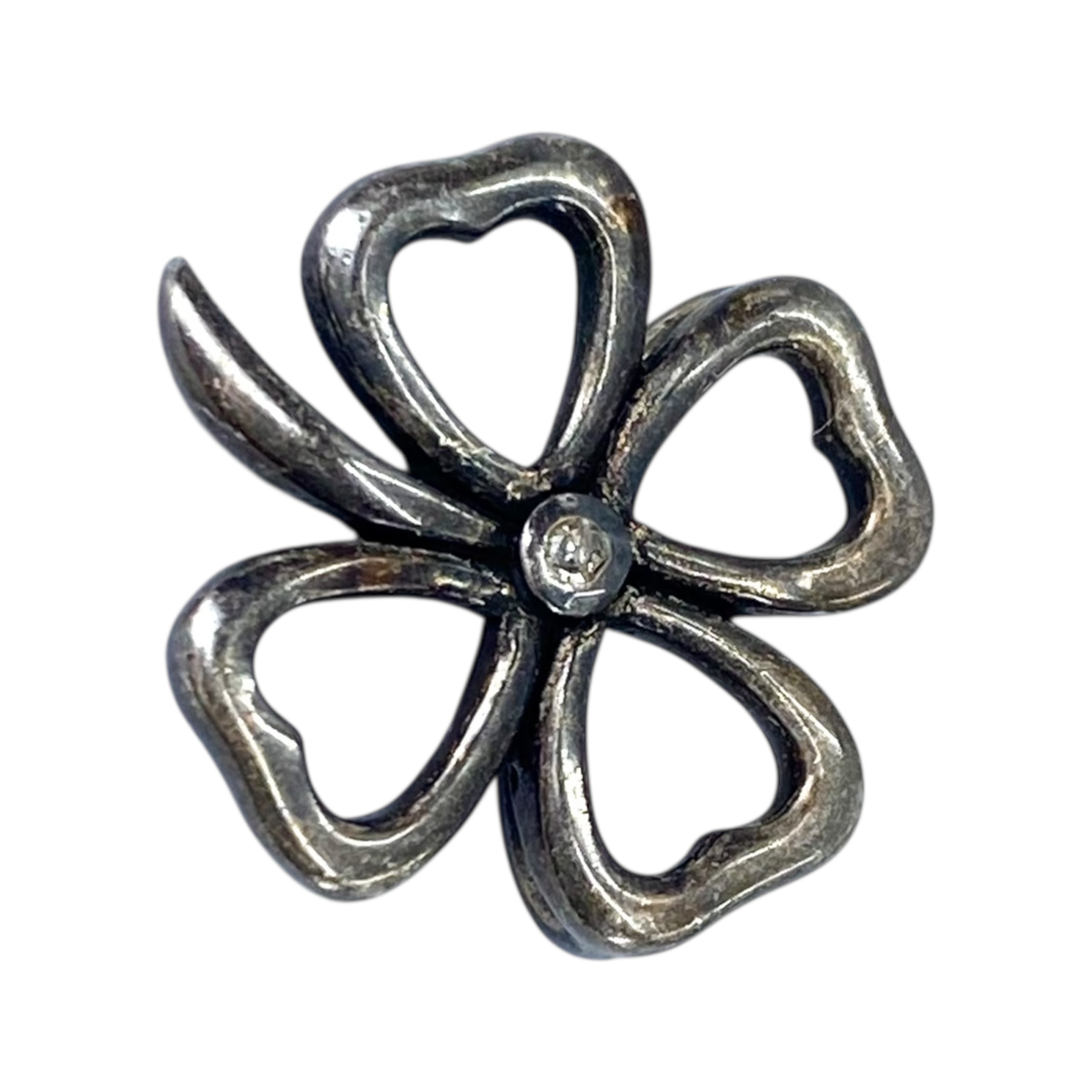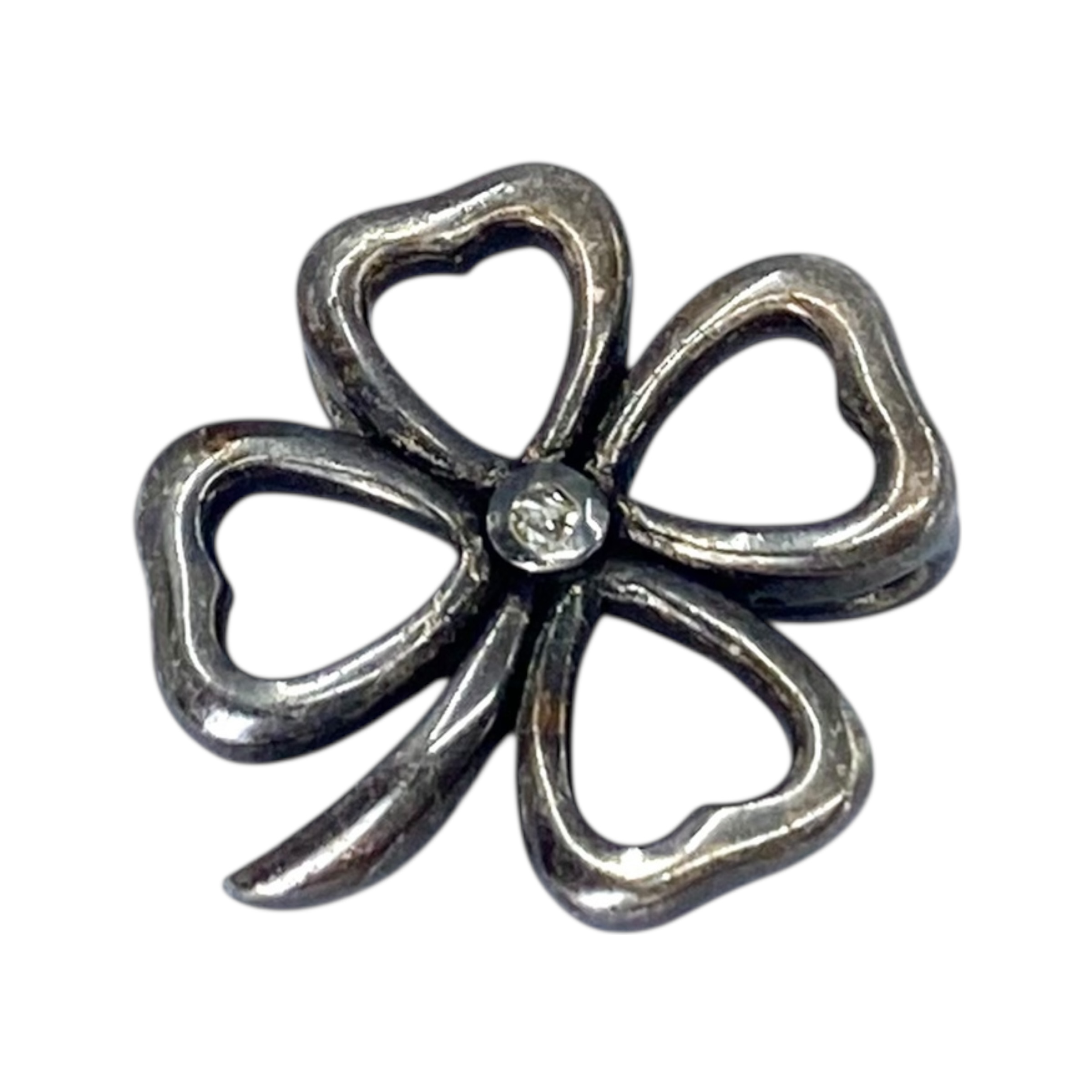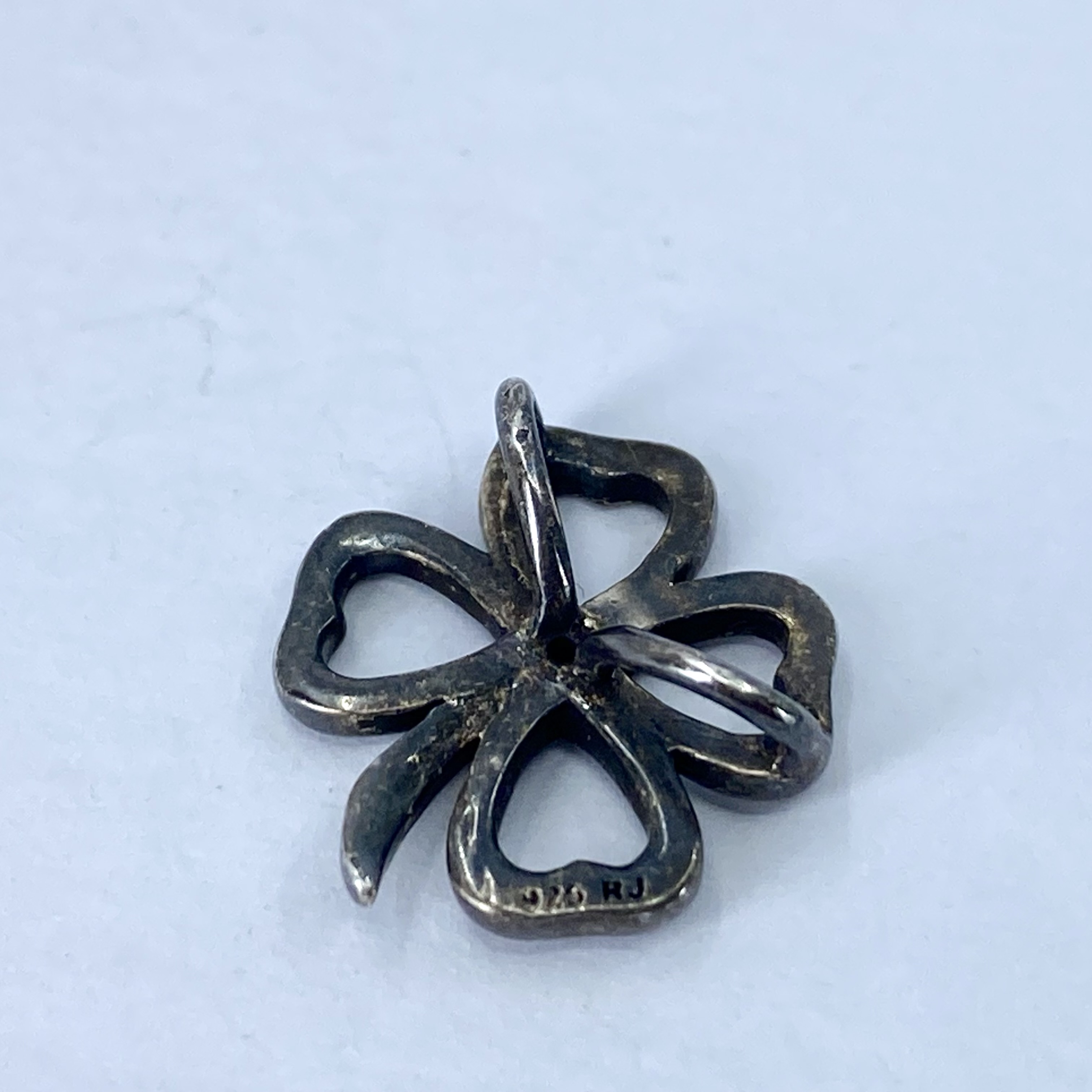 Signed Sterling Center Diamond Four Leaf Clover 1.5g