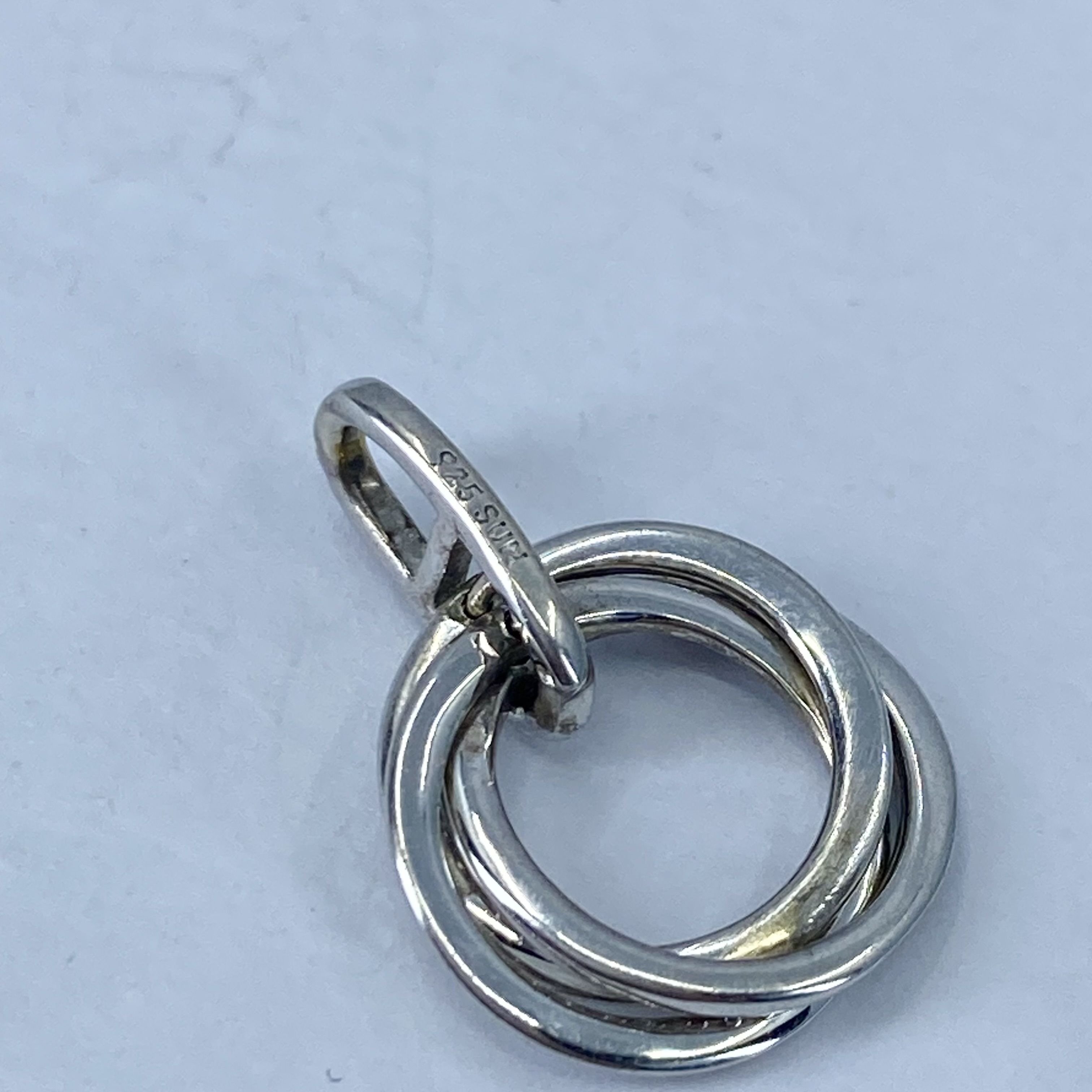 Signed Sterling Diamond Intertwined Circles Pendant 2g Engraved 925 SUN