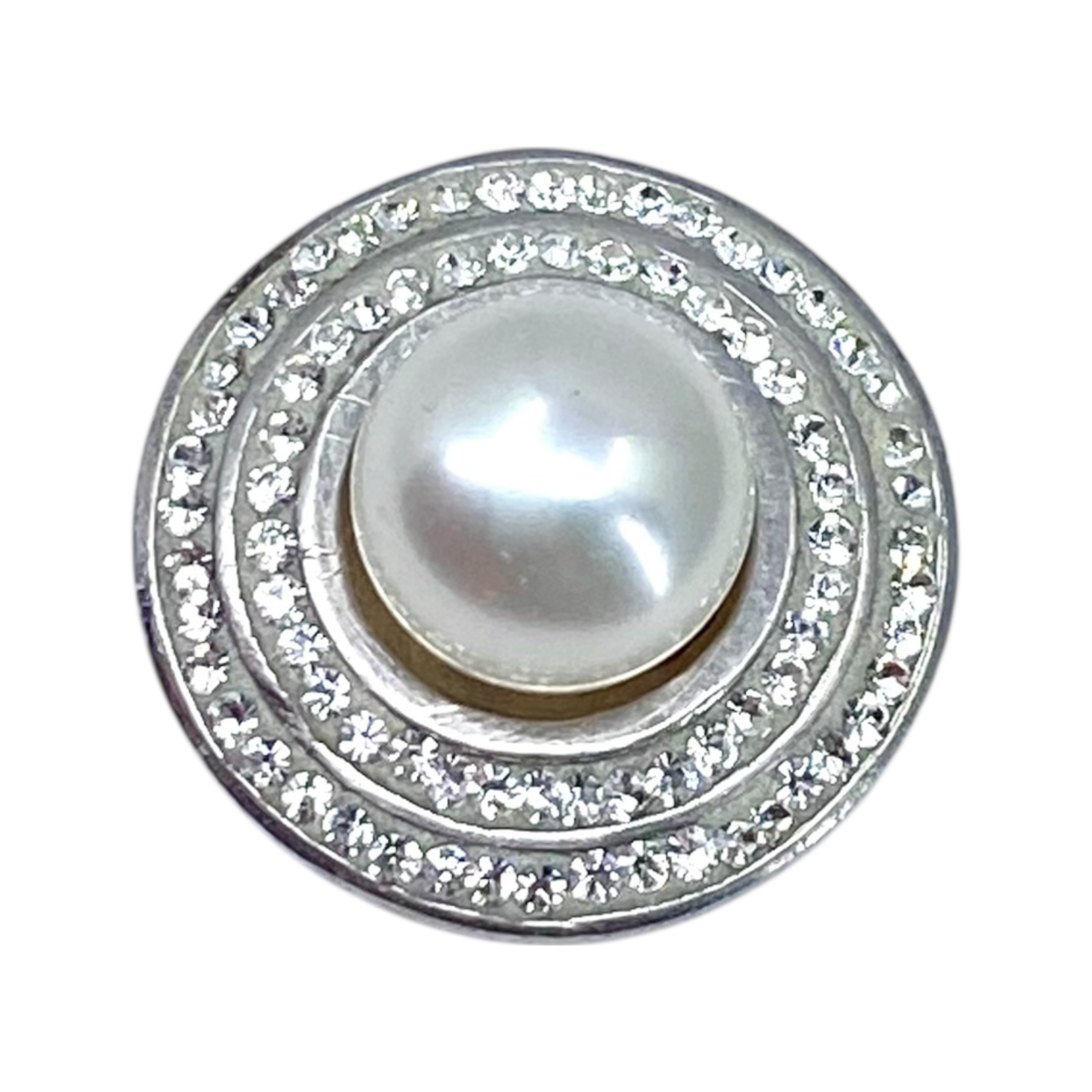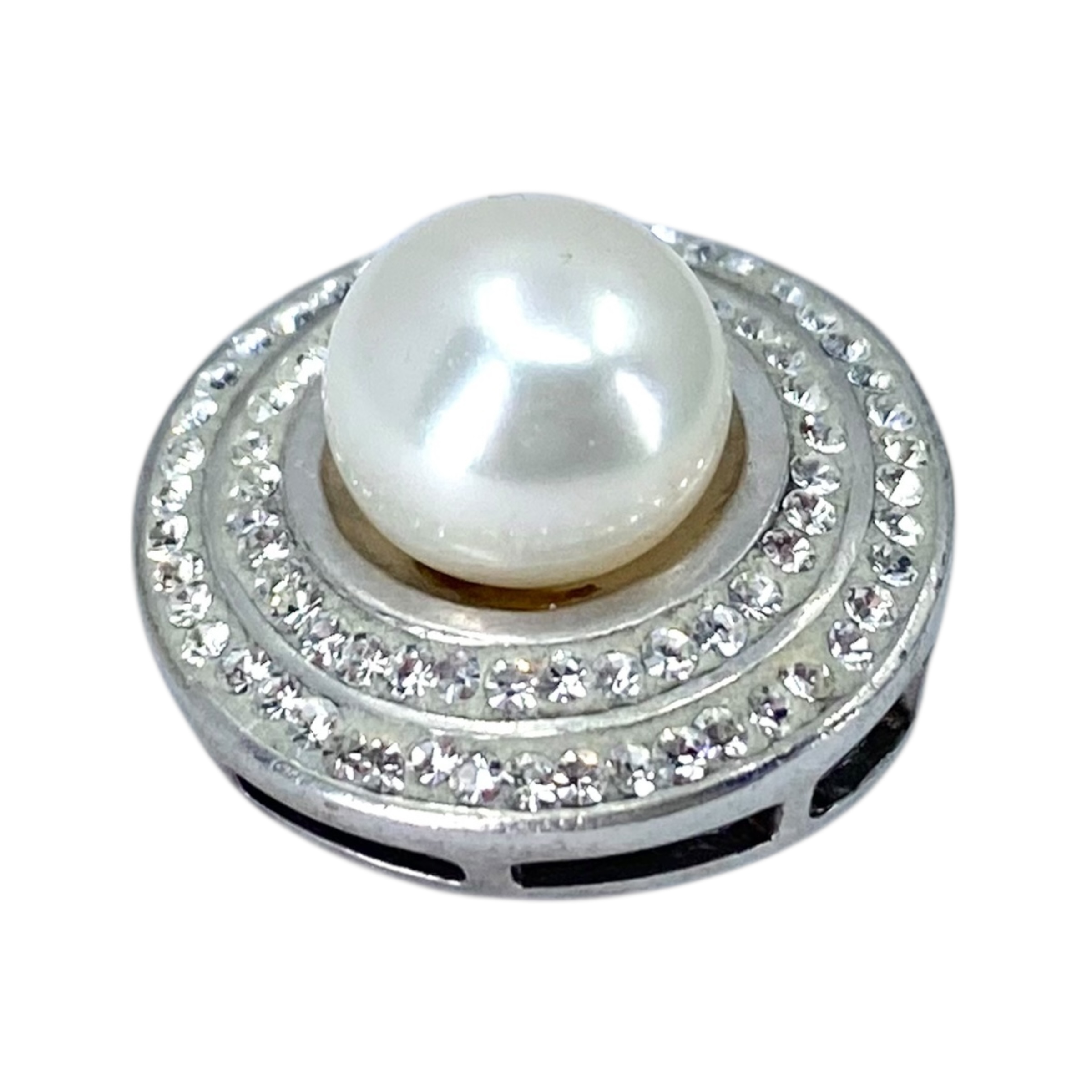 Sterling Pearl and Rhinestone Circle Slide Pendant 4g Engraved S925