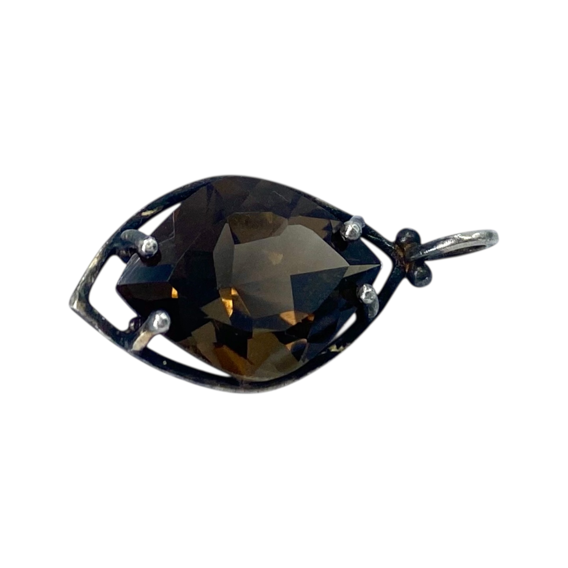 Sterling Smoky Quartz Marquise Large Pendant 3g