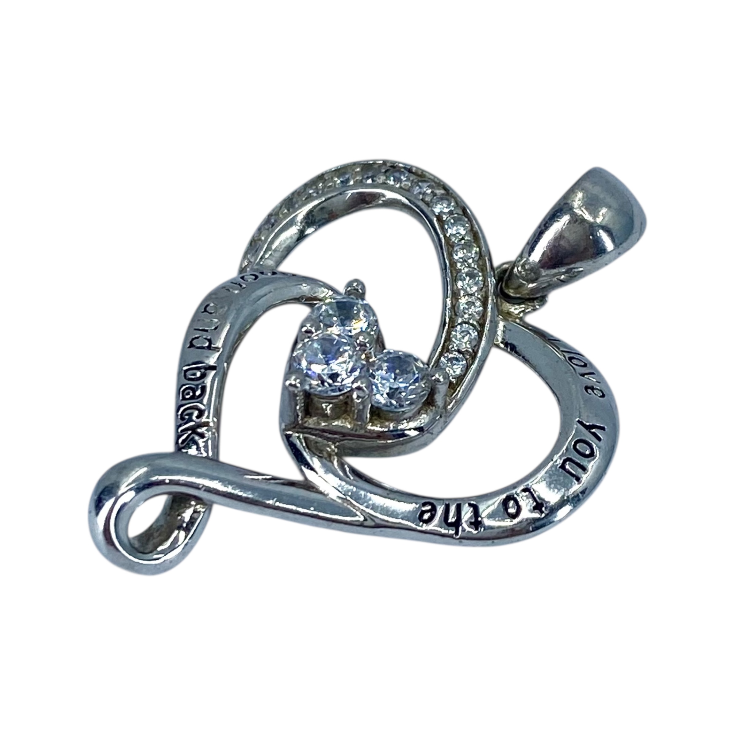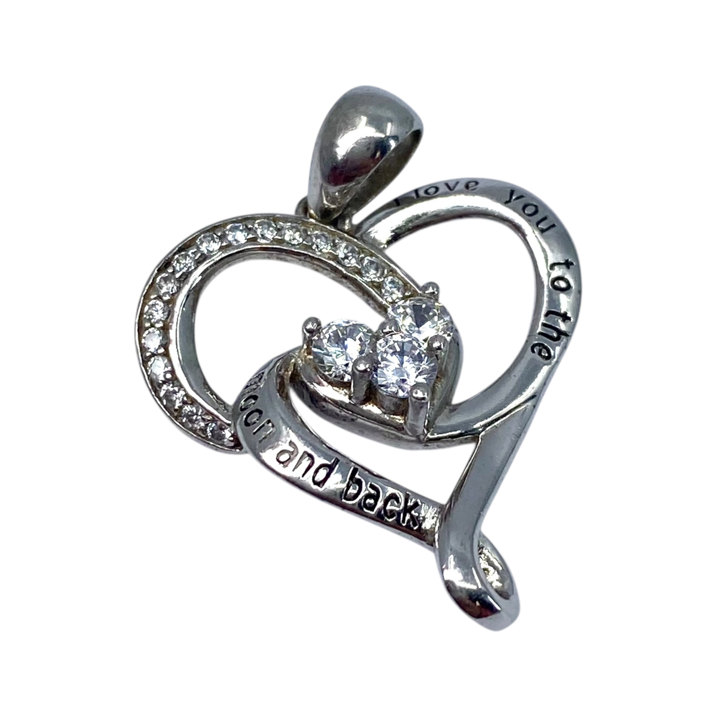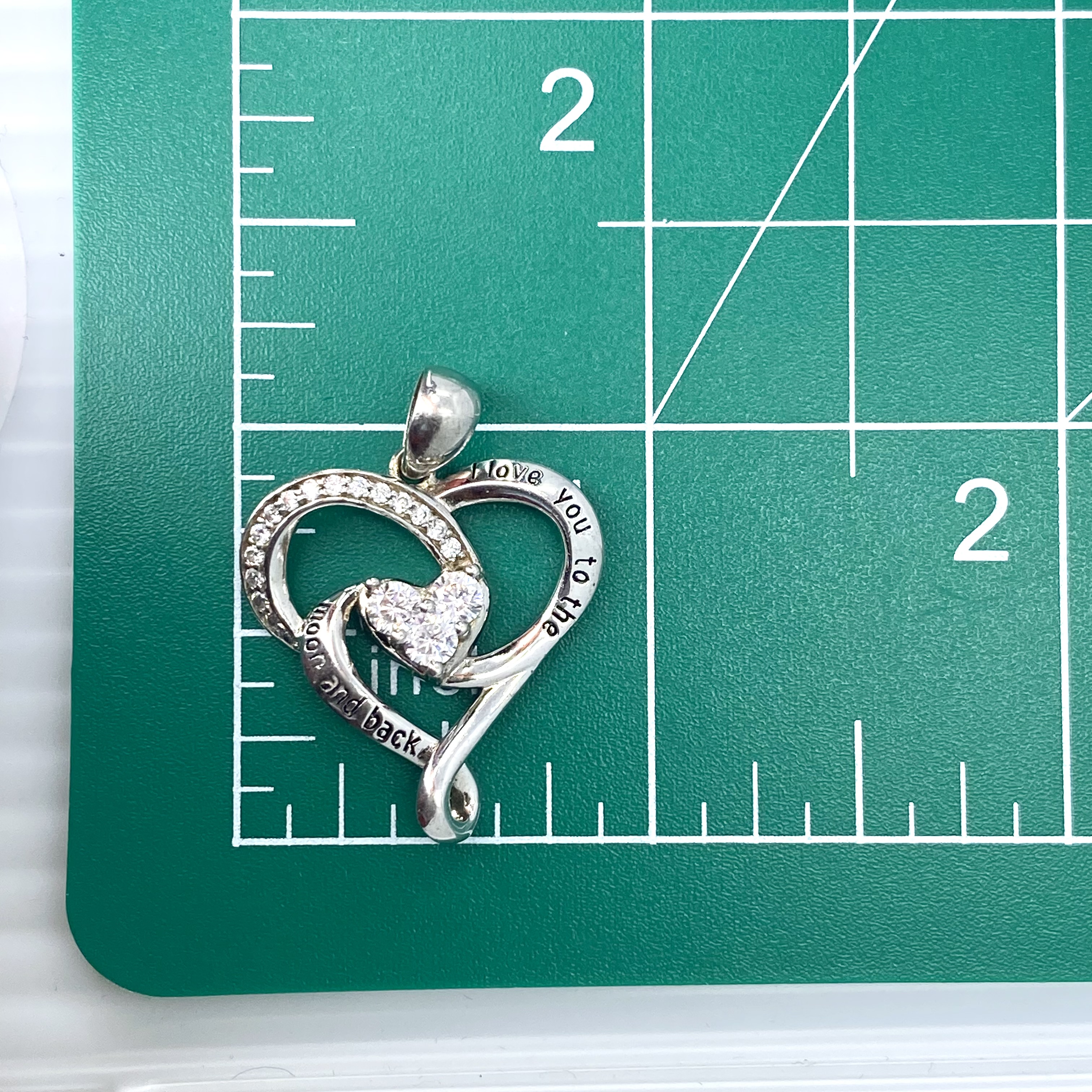Sterling Rhinestone Engraved Wrap Heart Pendant 4g Engraved I love you to the Moon and Back S925