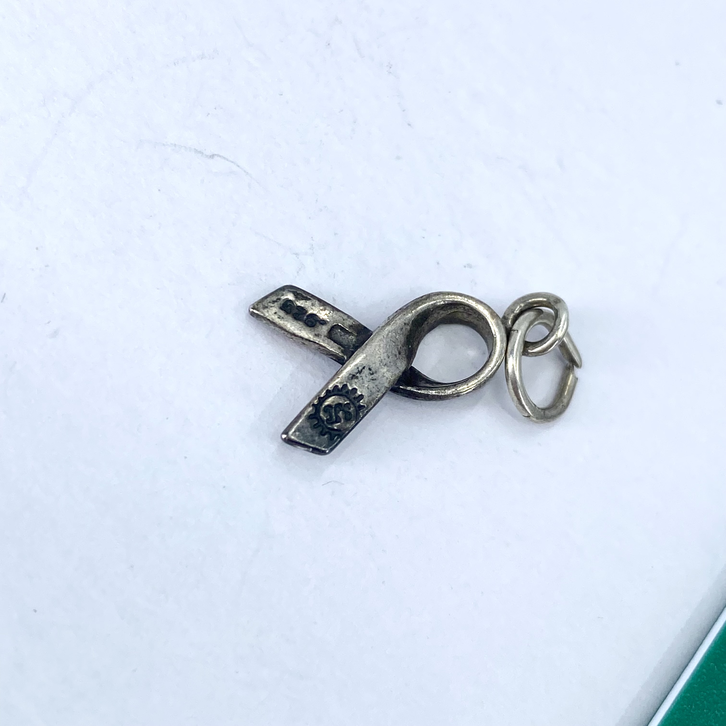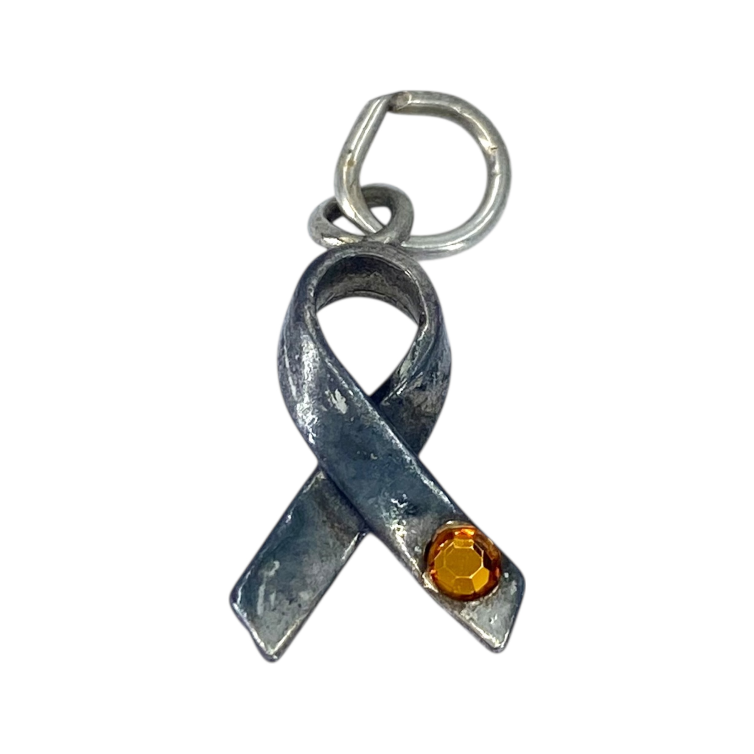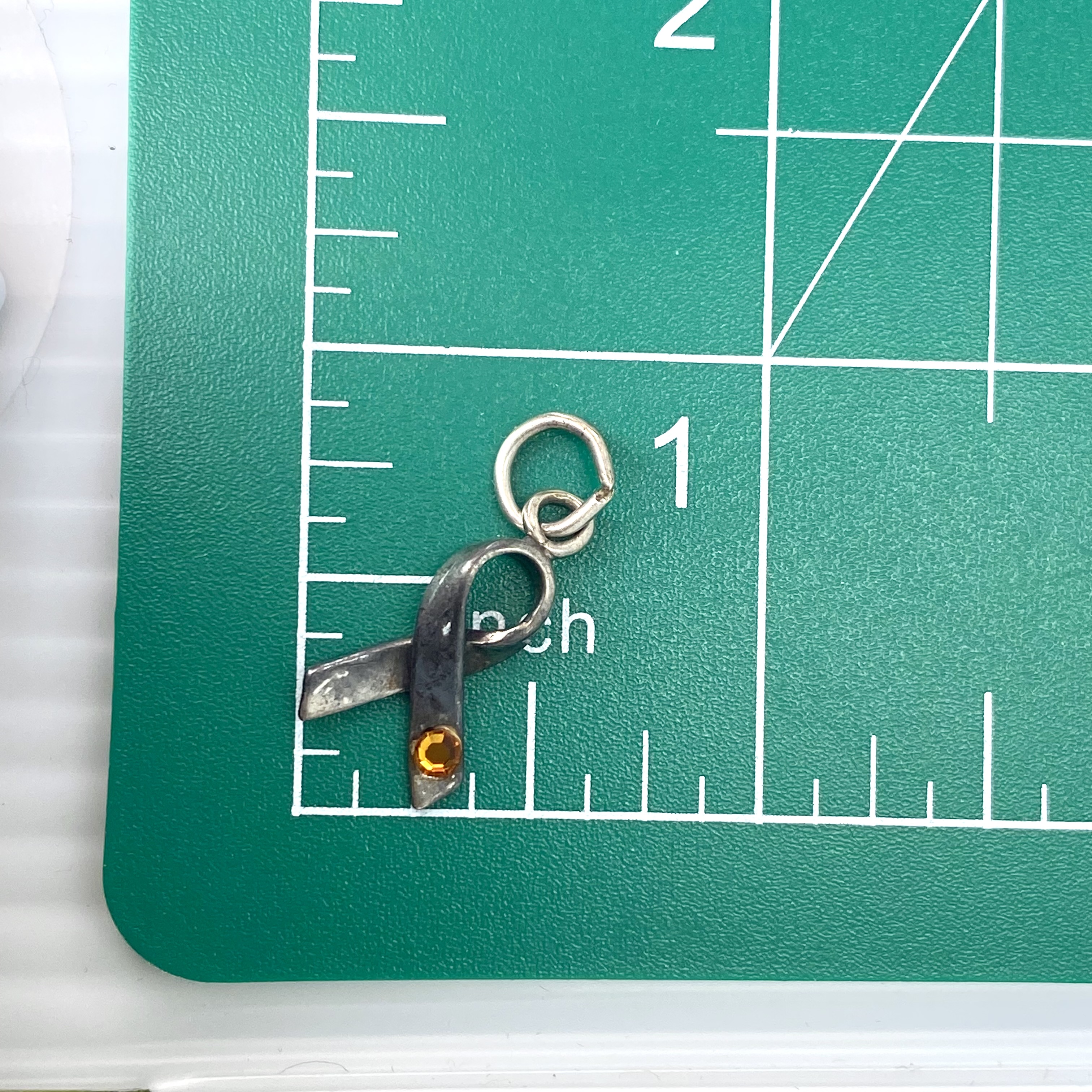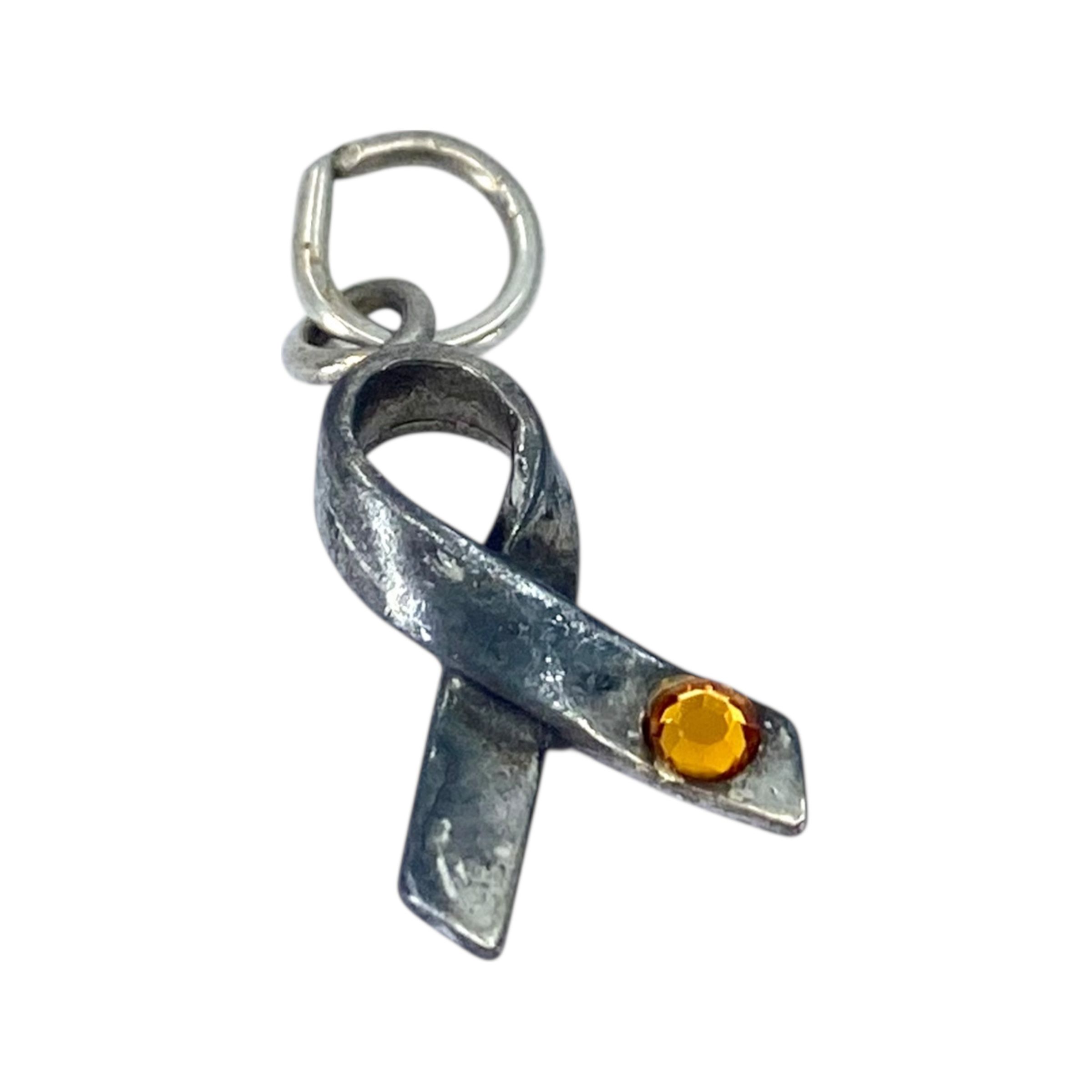 Signed Sterling Ribbon with Orange Rhinestone Charm 1.2g Engraved SC hallmark .925