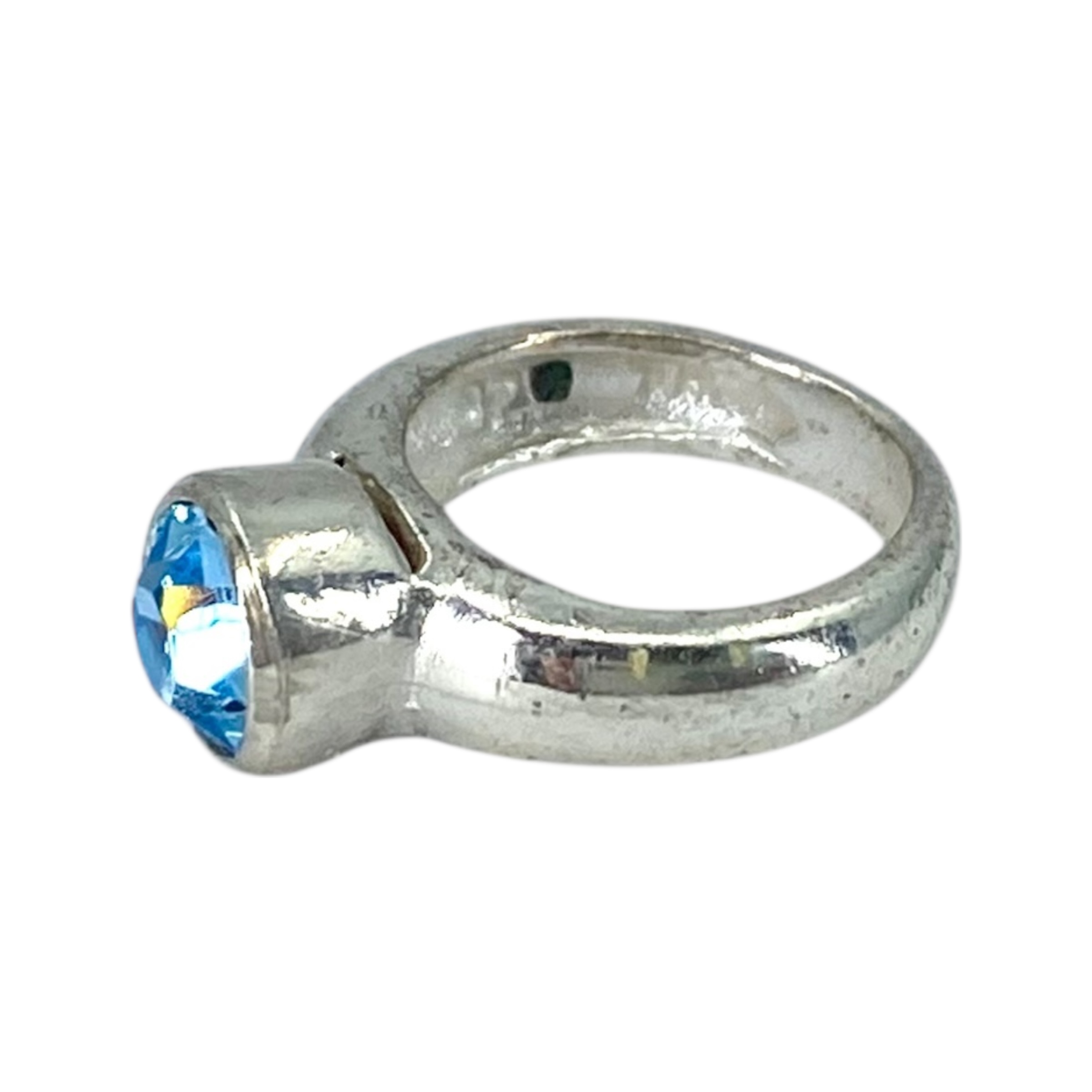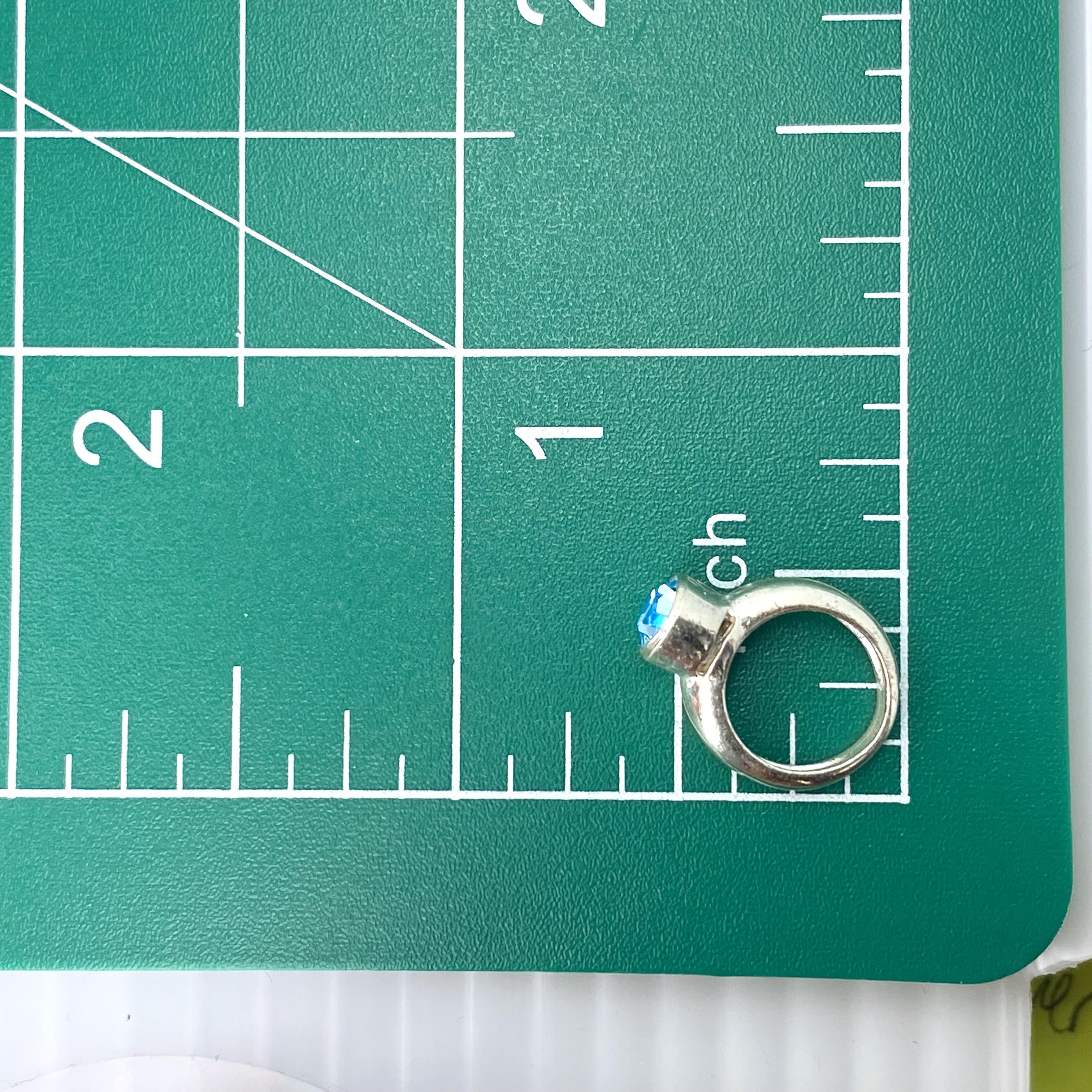 Sterling Round Blue Rhinestone Ring Charm 1.32g Engraved C 925