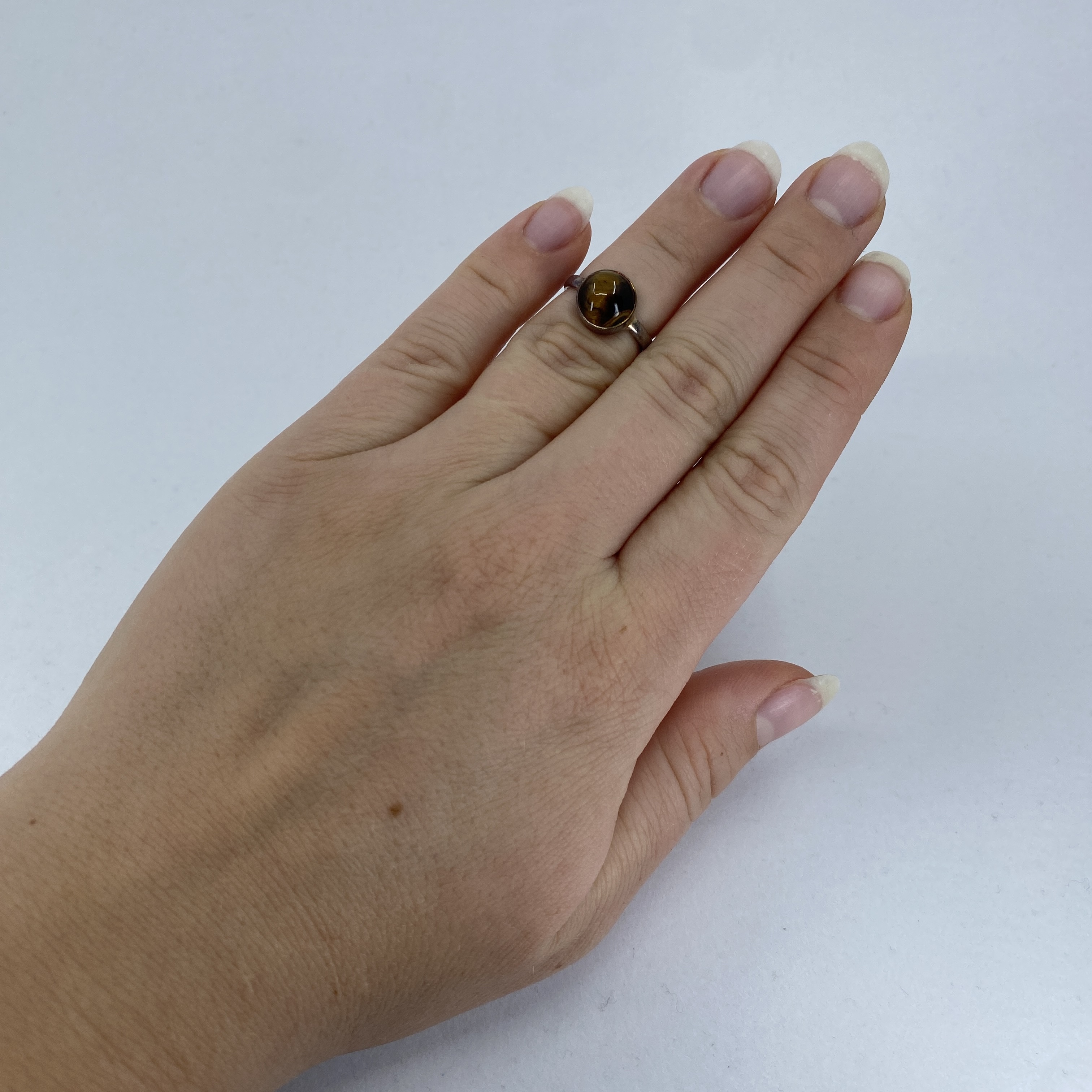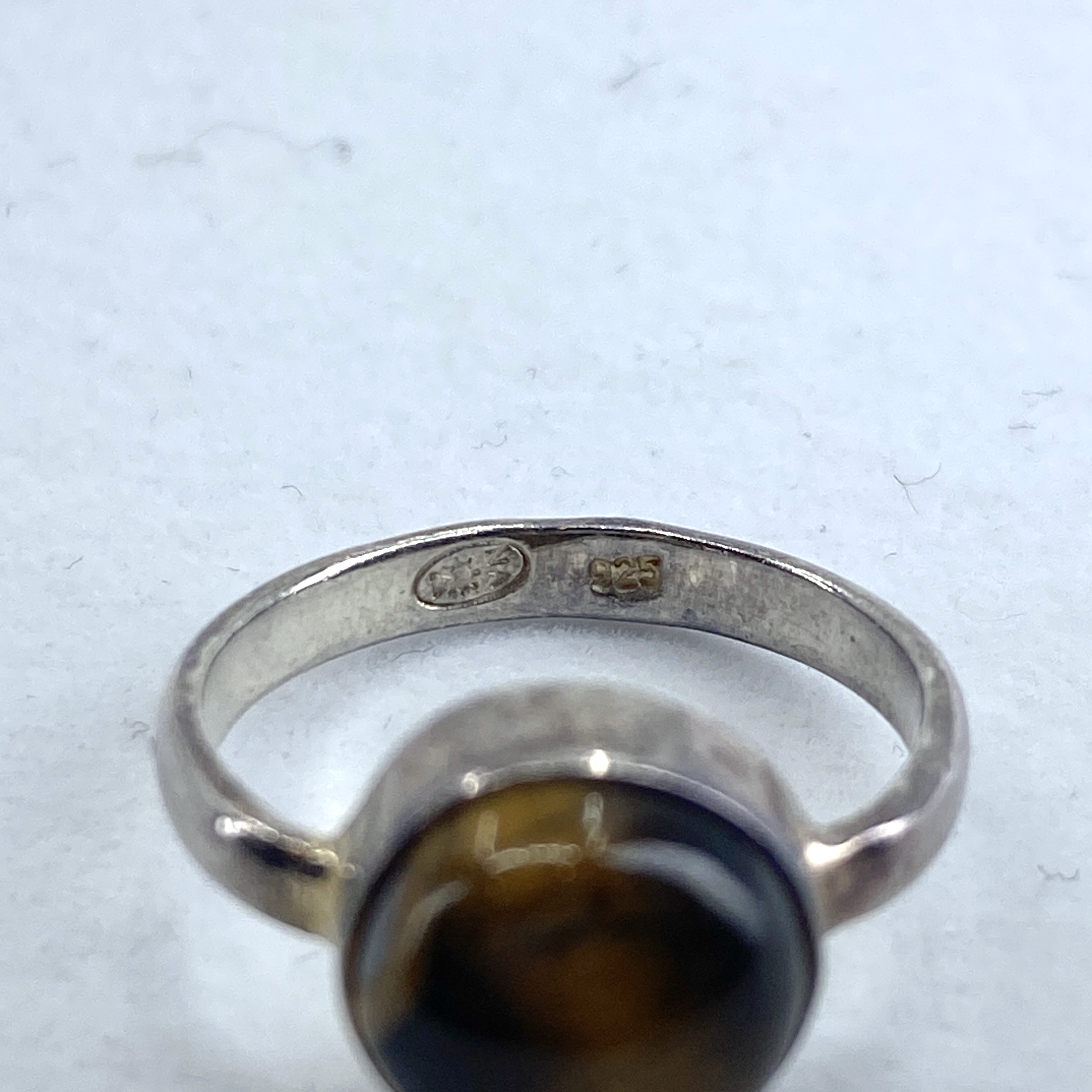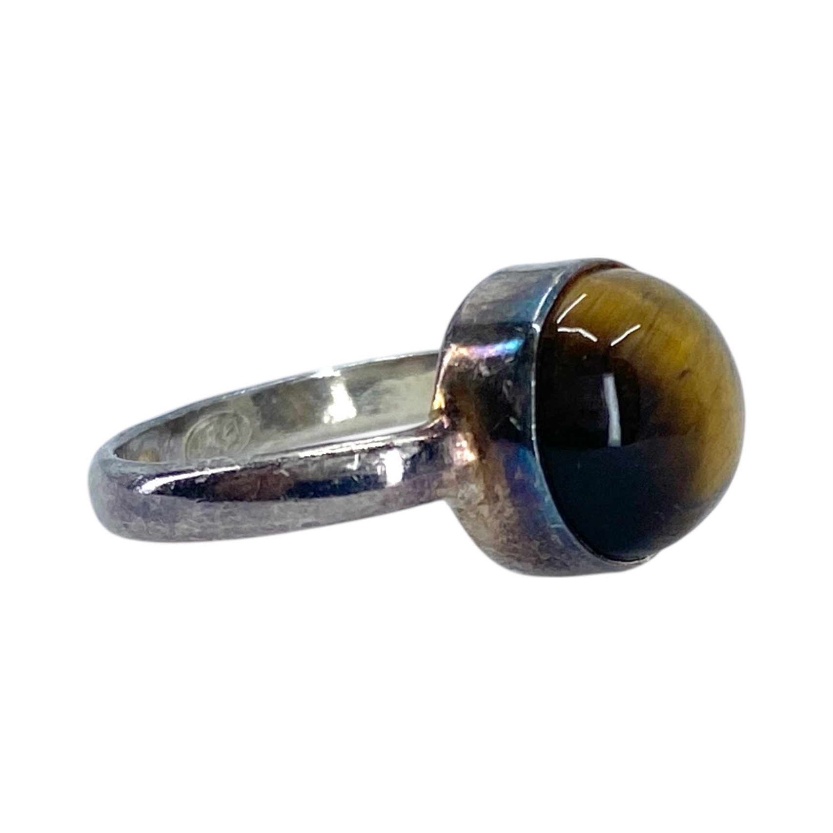 Signed Sterling Round Tigers Eye Simple Ring 3g sz 4.25 Engraved NA Hallmark 925
