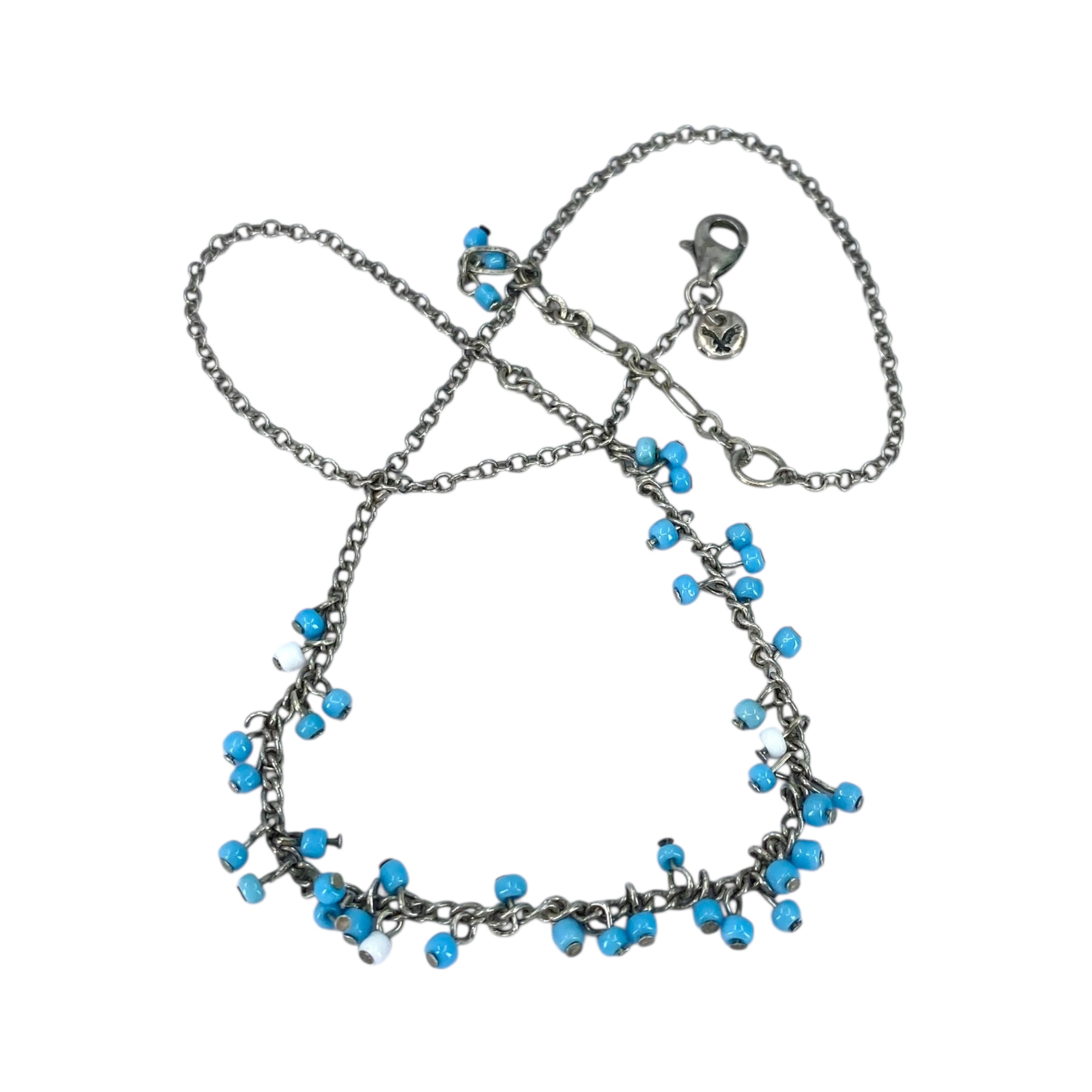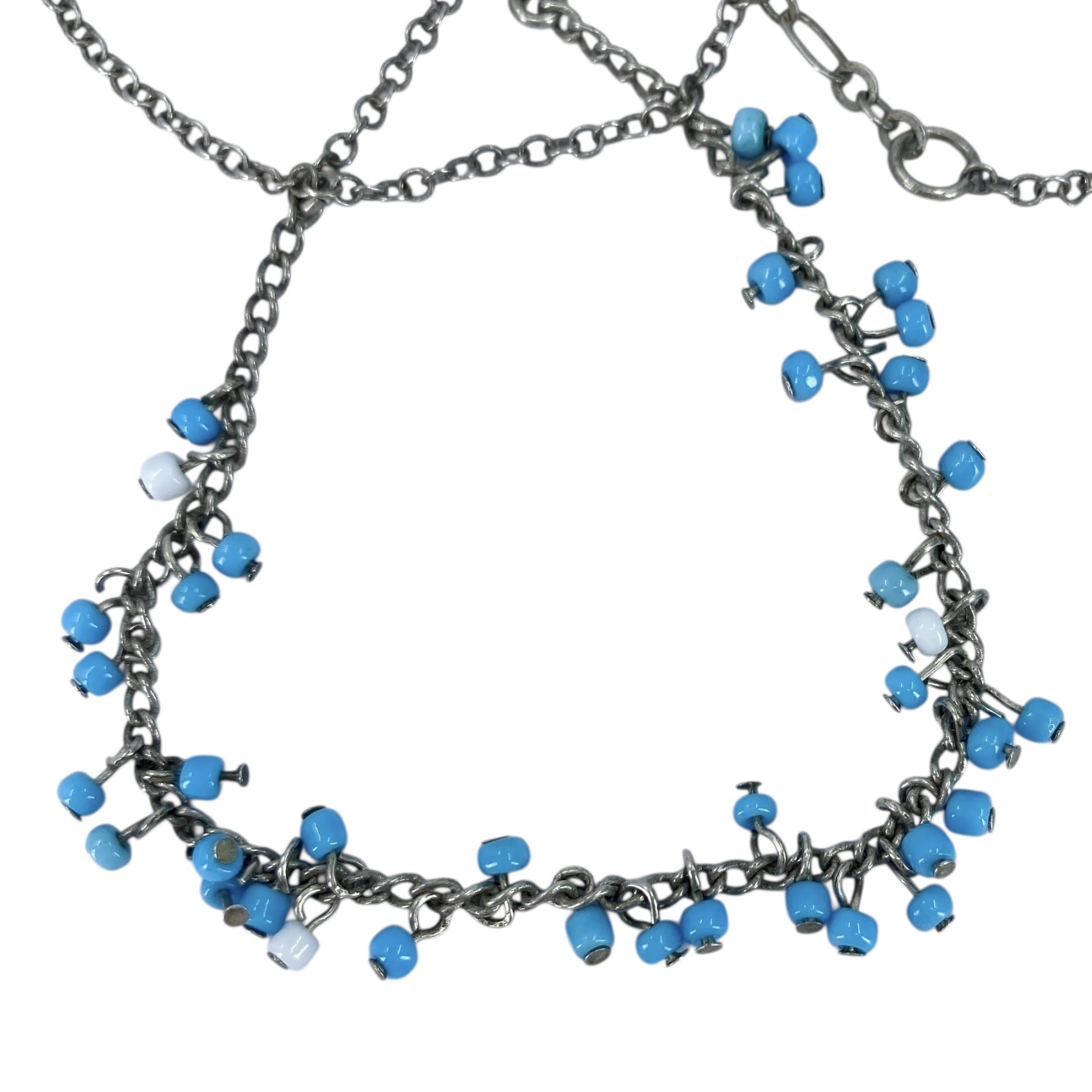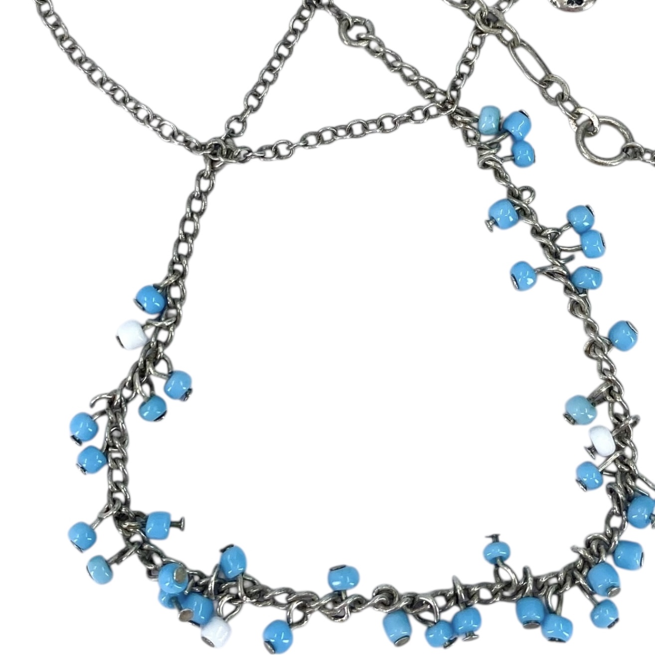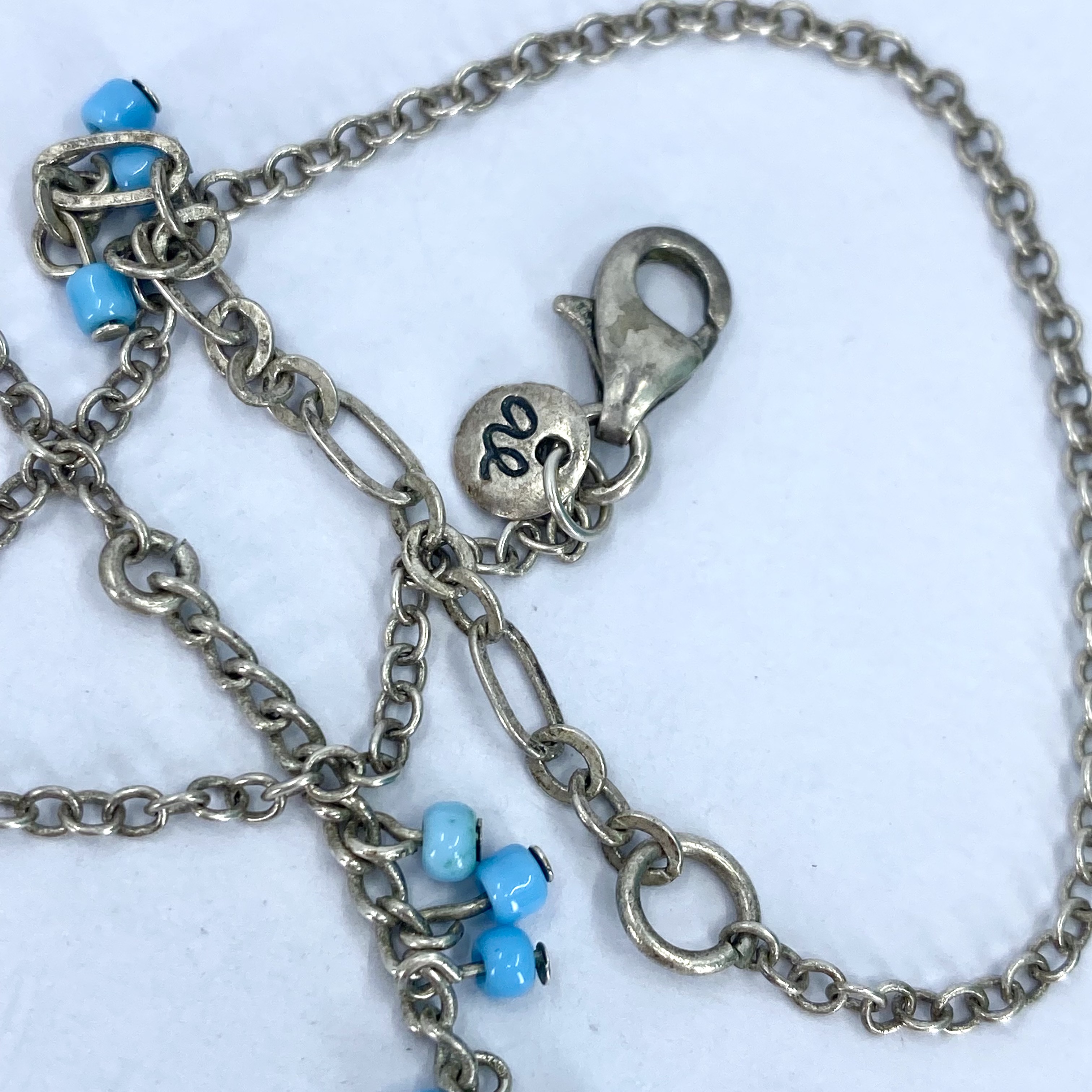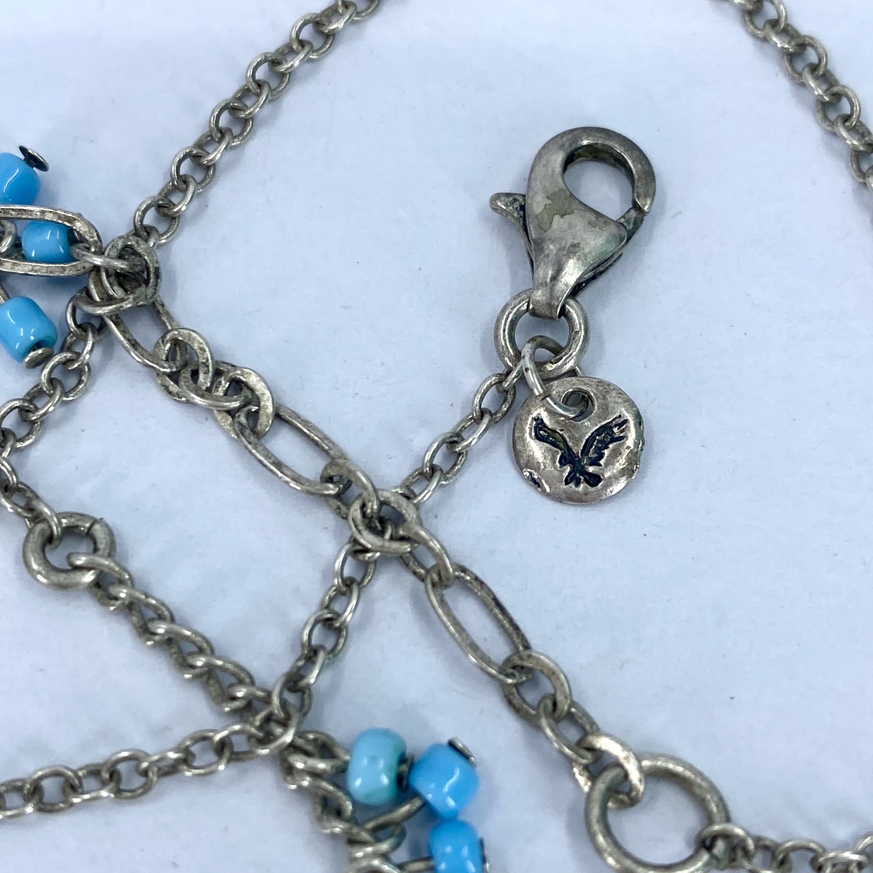 American Eagle Sterling Blue Bead Dangle Necklace 6.3g 19in Engraved 925 AE