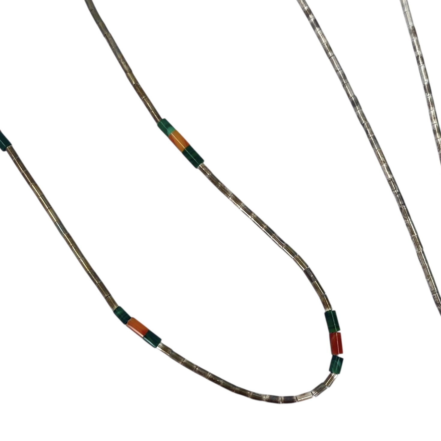 Sterling Tube Bead Coral and Turquoise Necklace 2.4g 18.5in