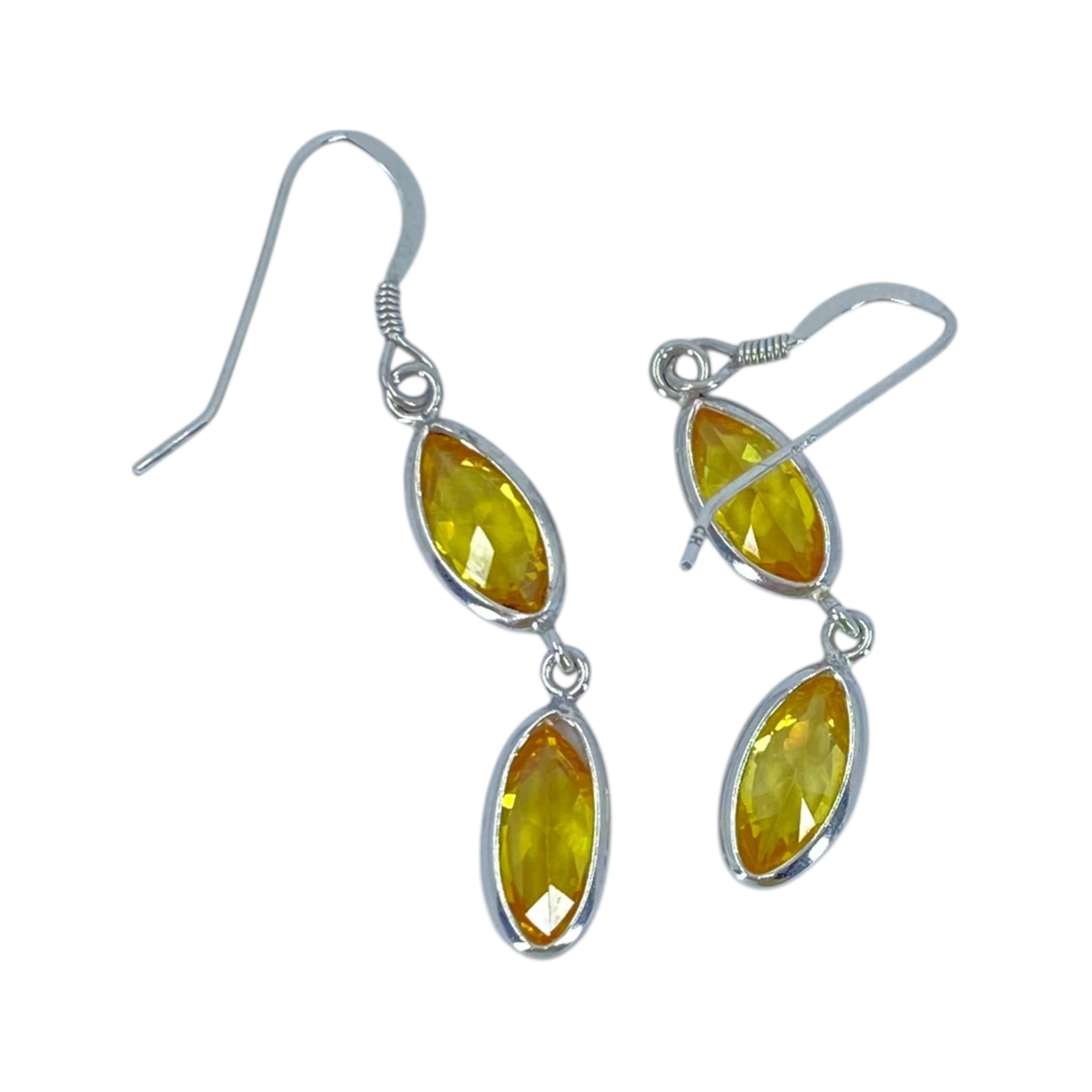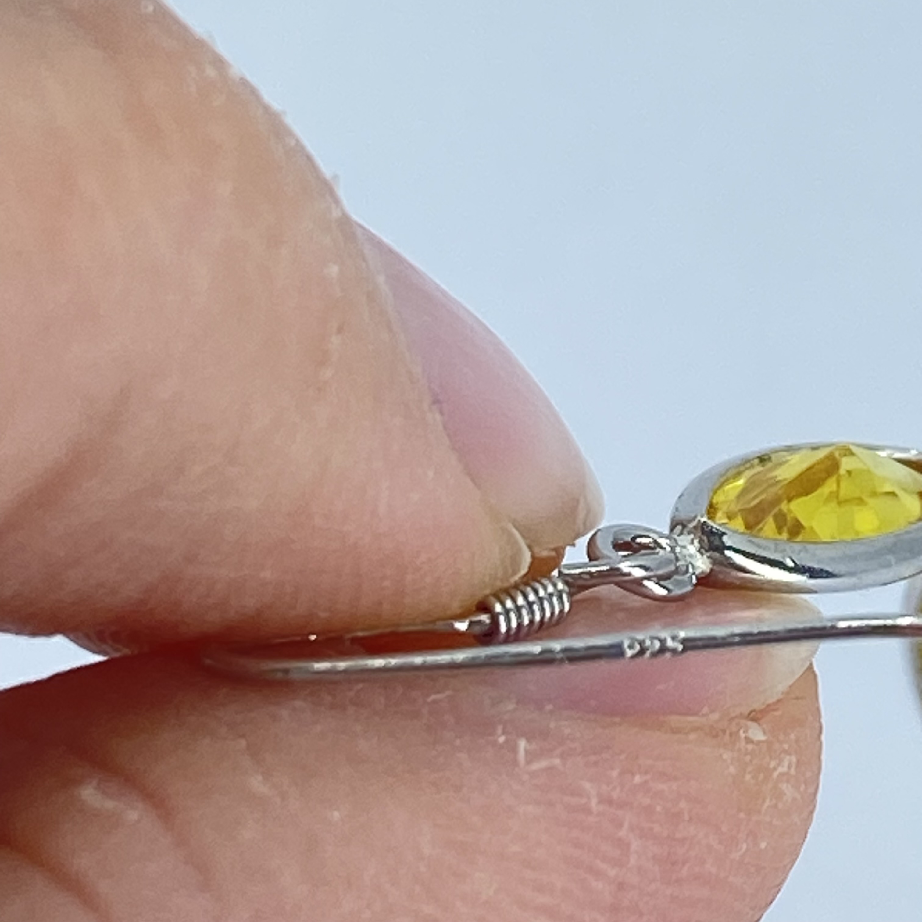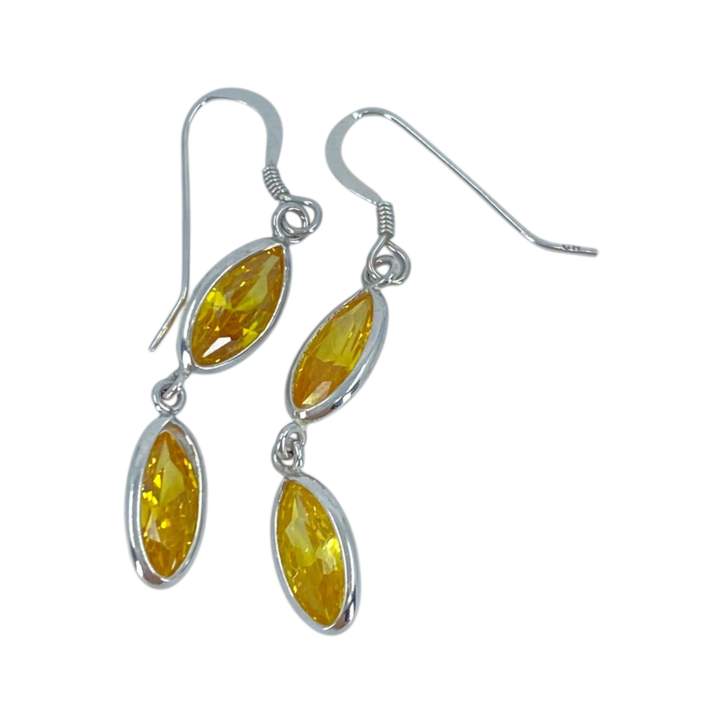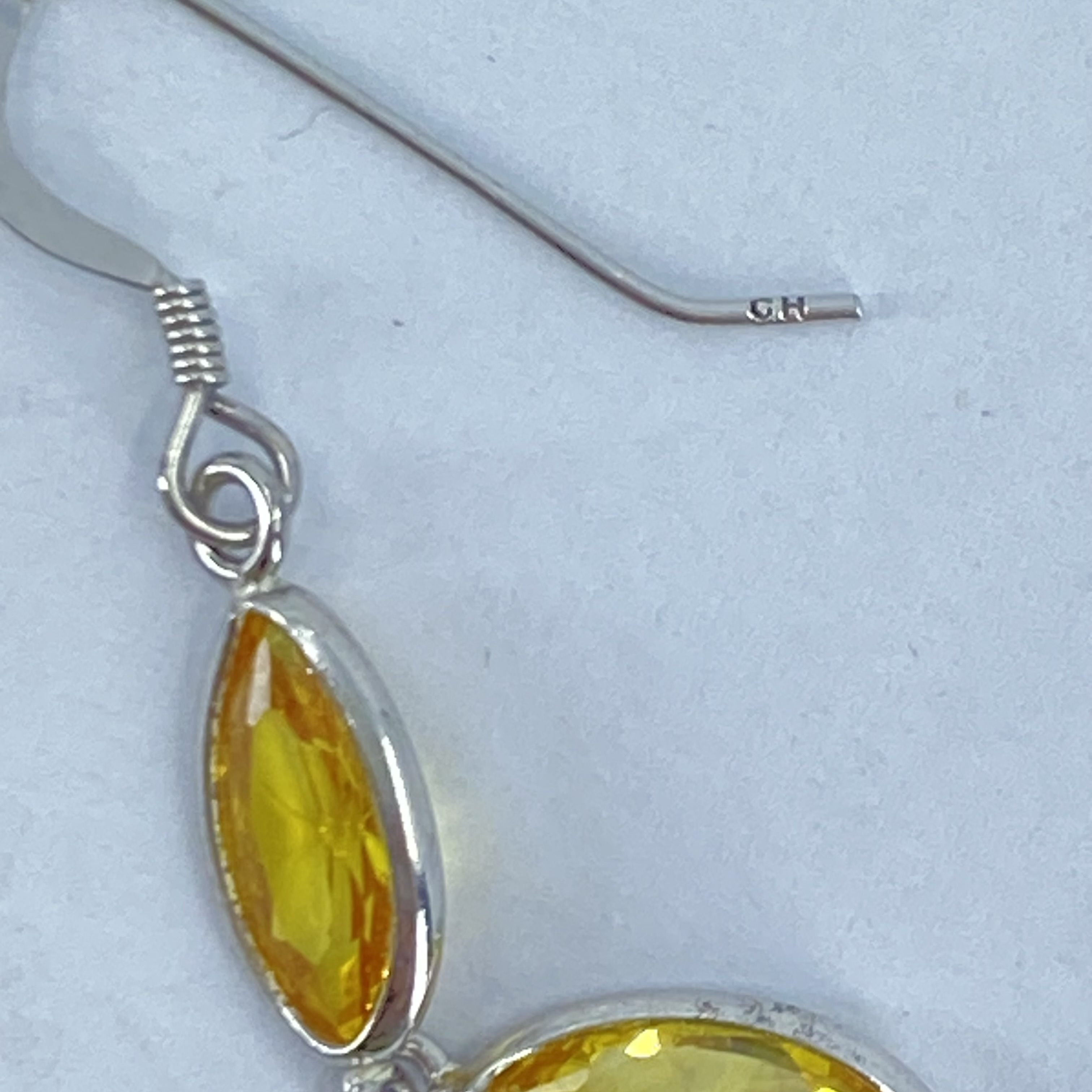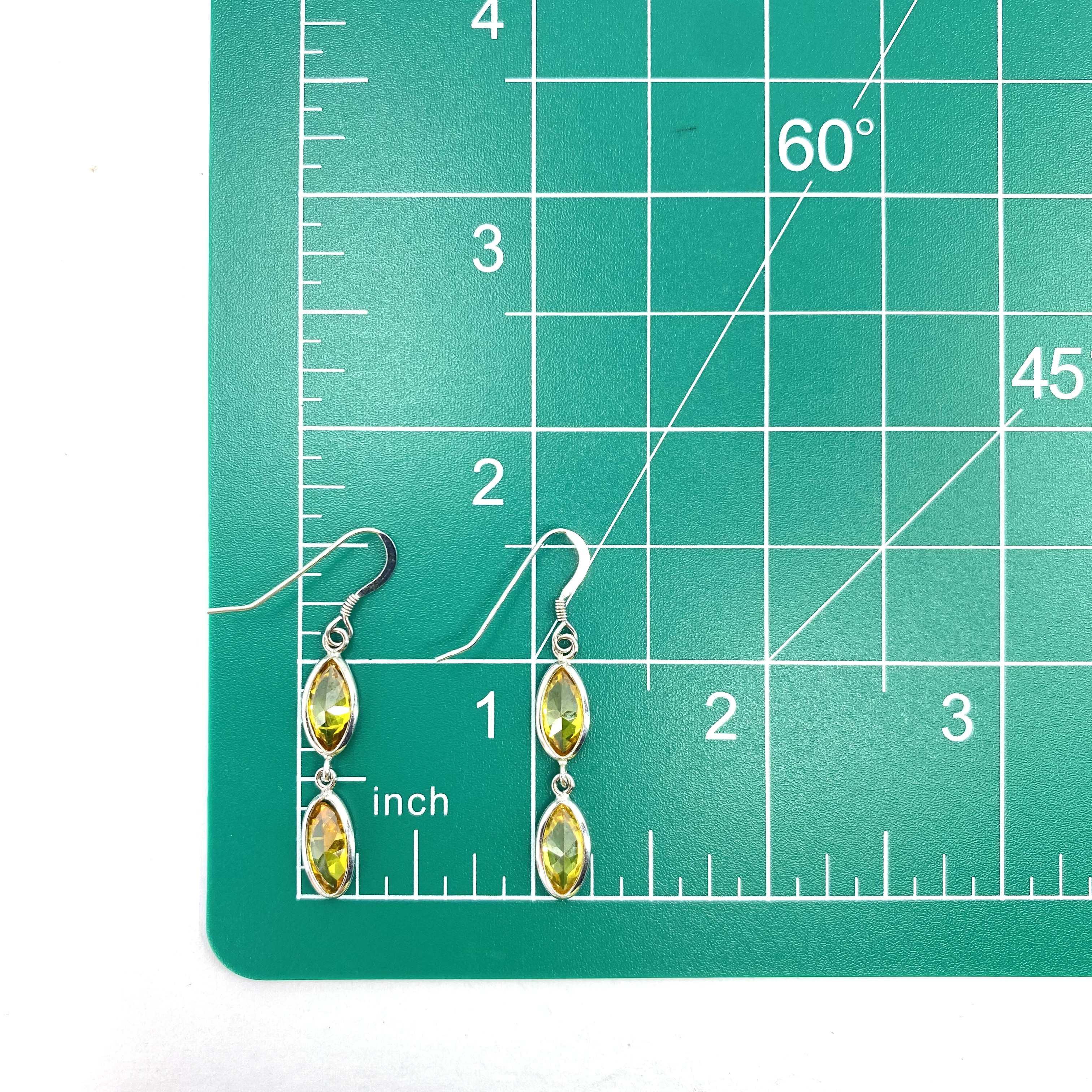 Sterling Marquise Yellow Rhinestone Dangle Earrings 2.4g, Engraved CH 925