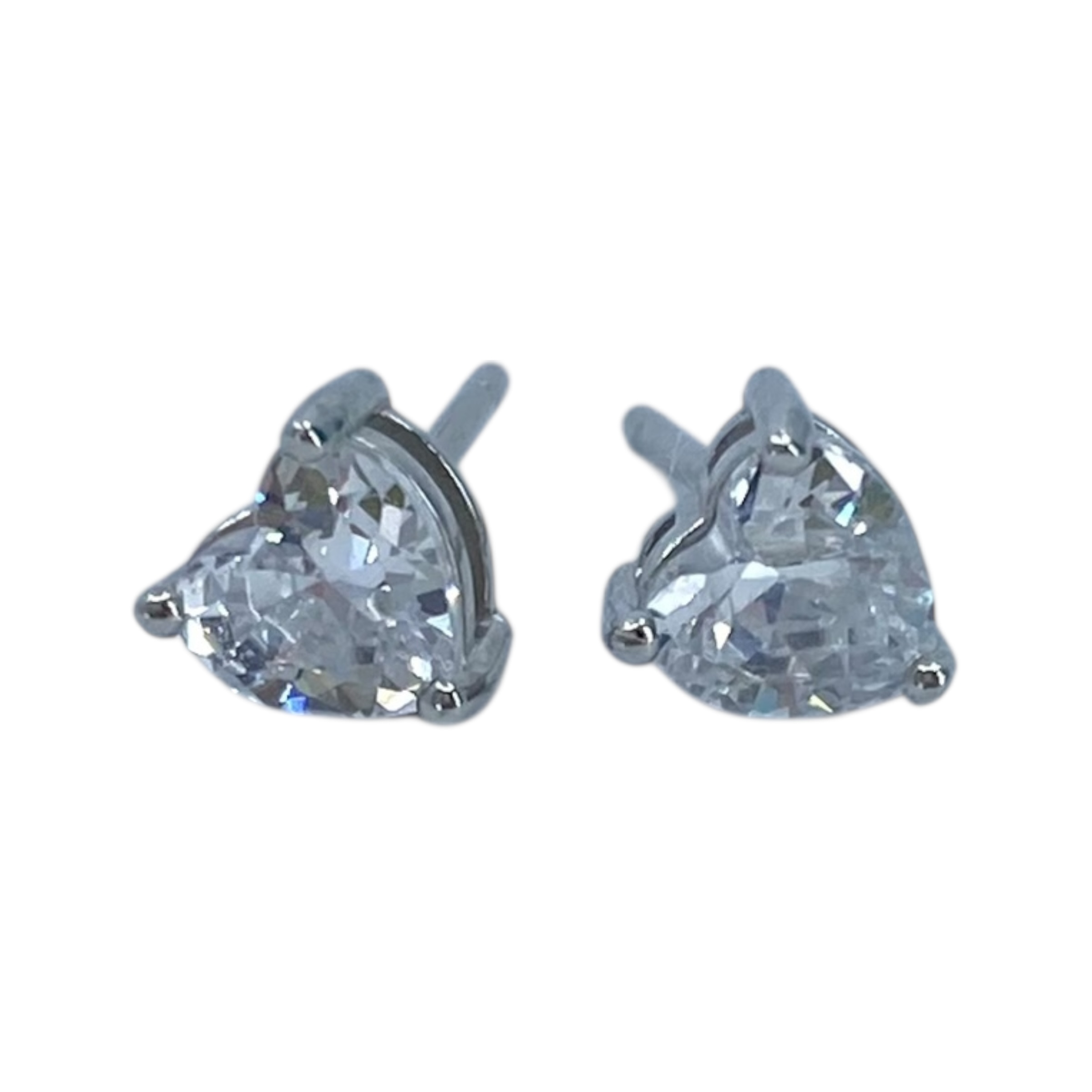 Sterling Heart Cut Rhinestone Stud Earrings 1g