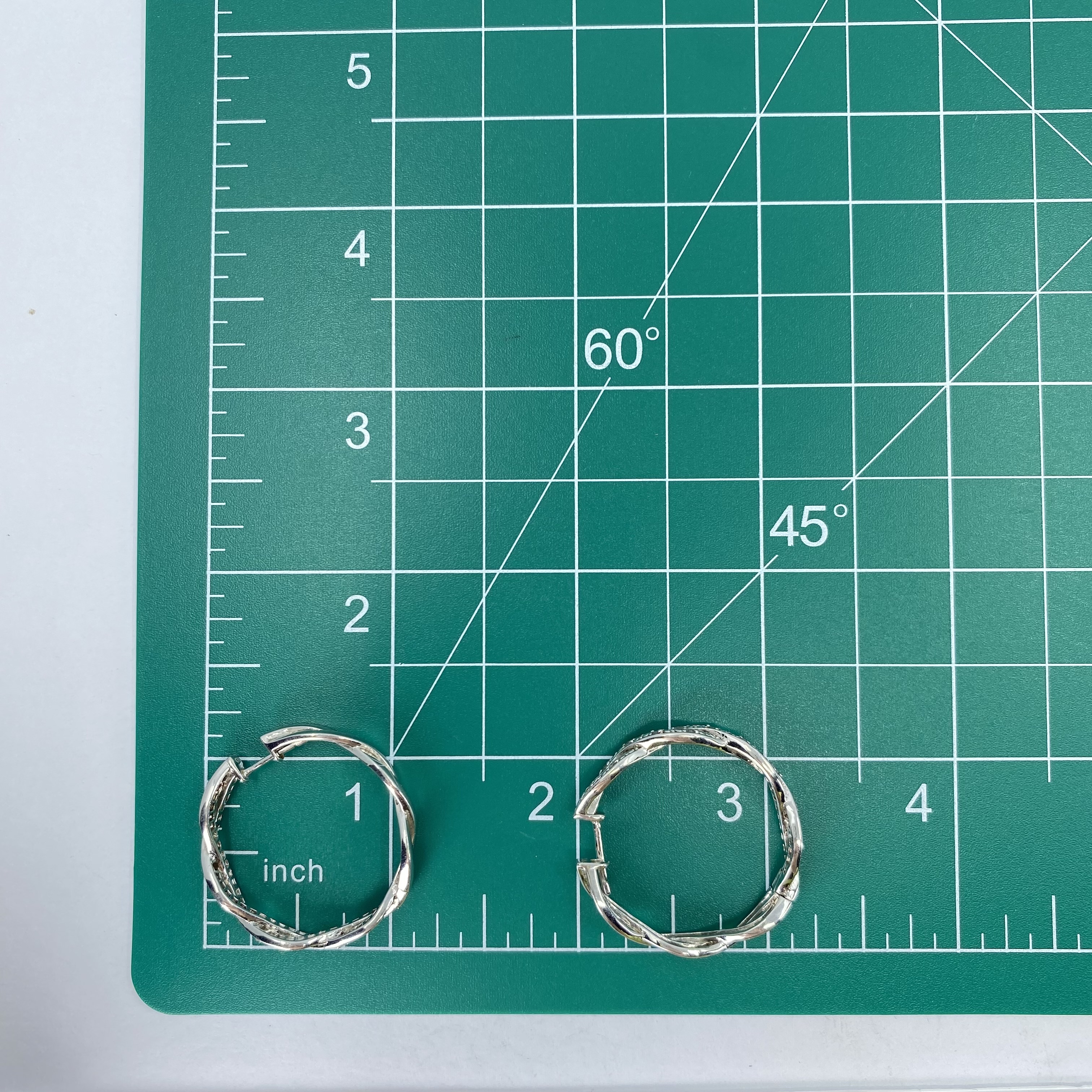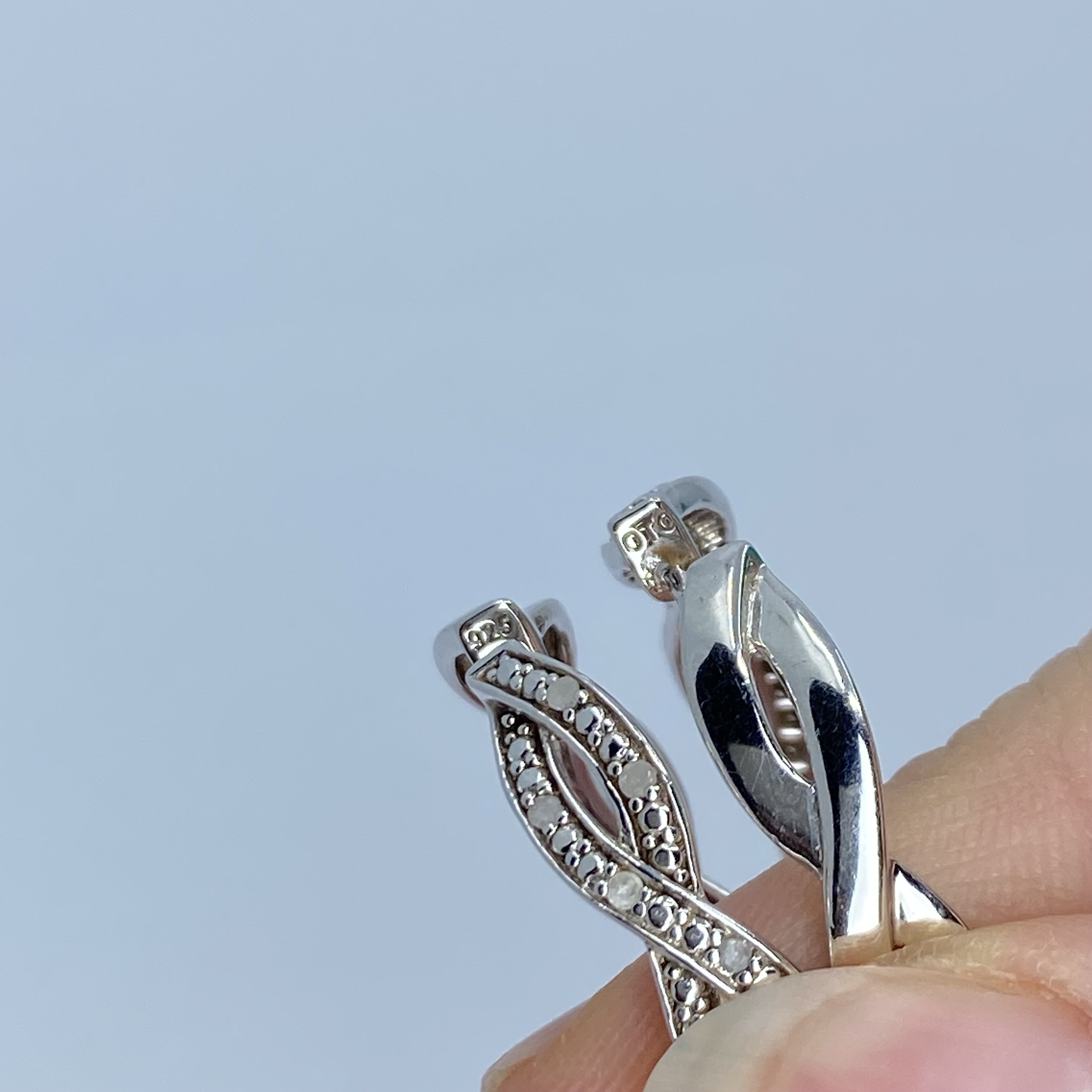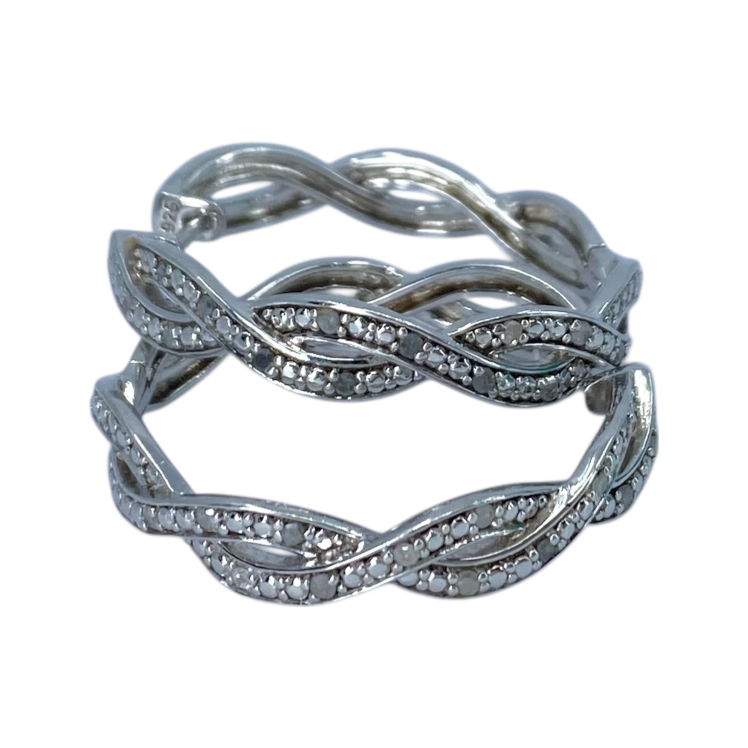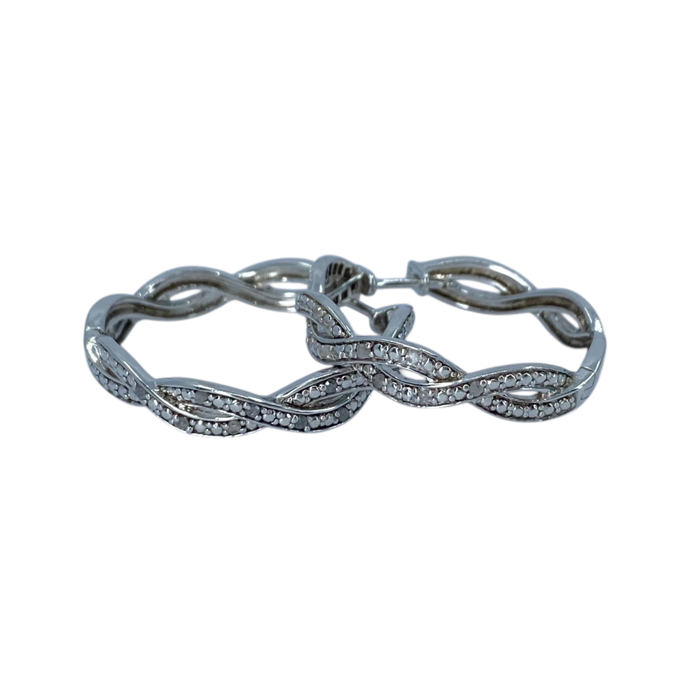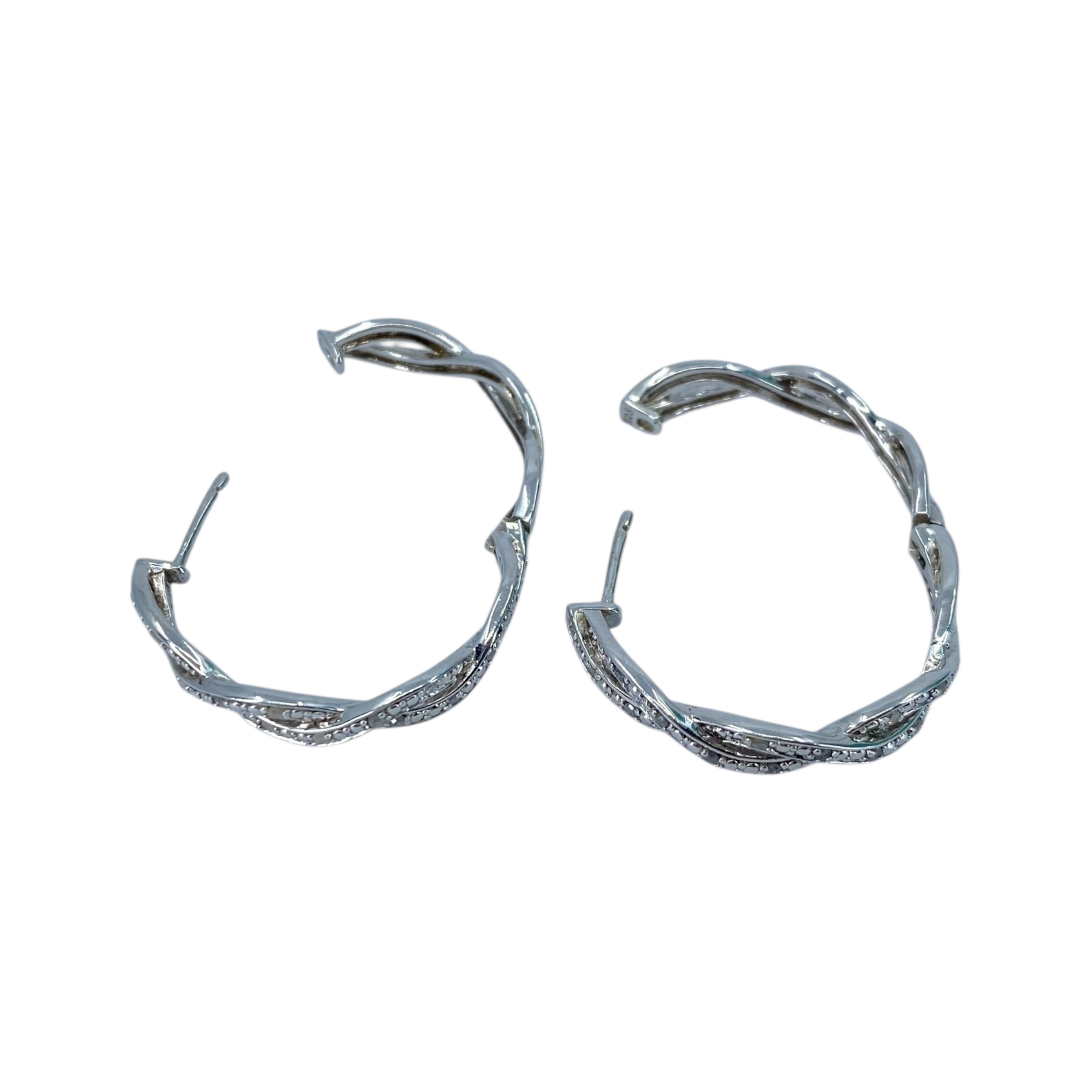 Signed Sterling Diamond Twist Hoop Earrings 9g, engraved OTC 925