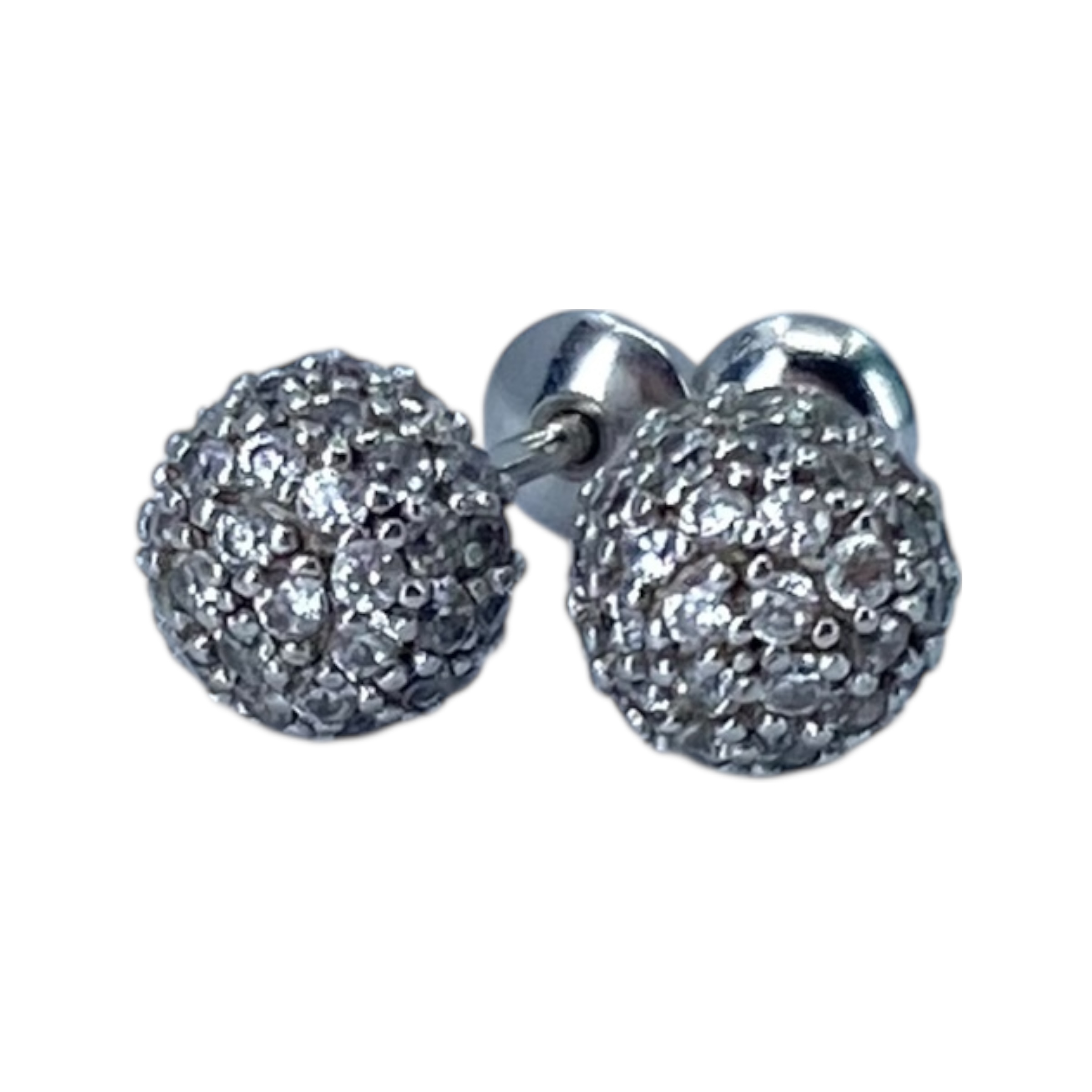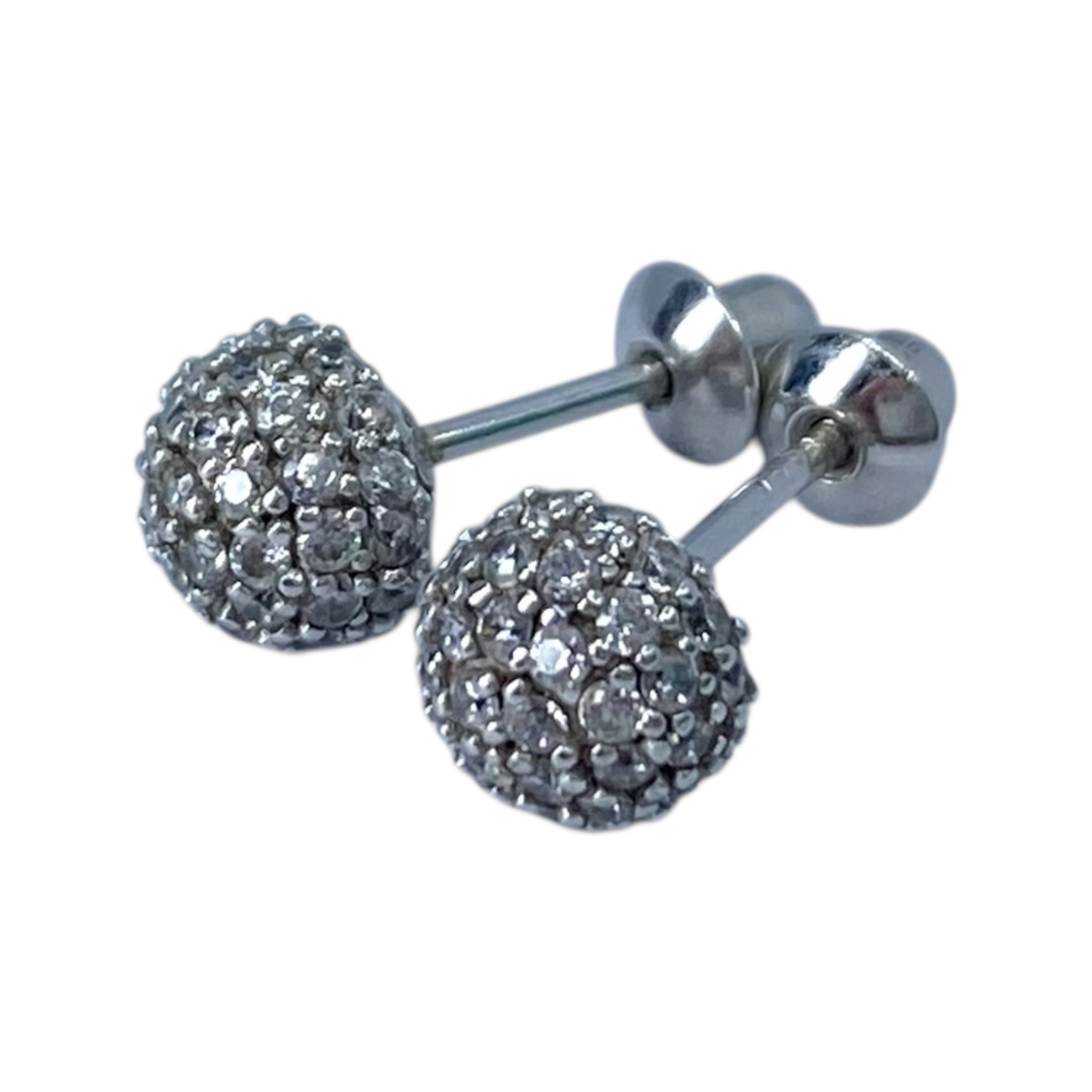 Sterling Rhinestone Cluster Ball Stud Earrings 1.4g