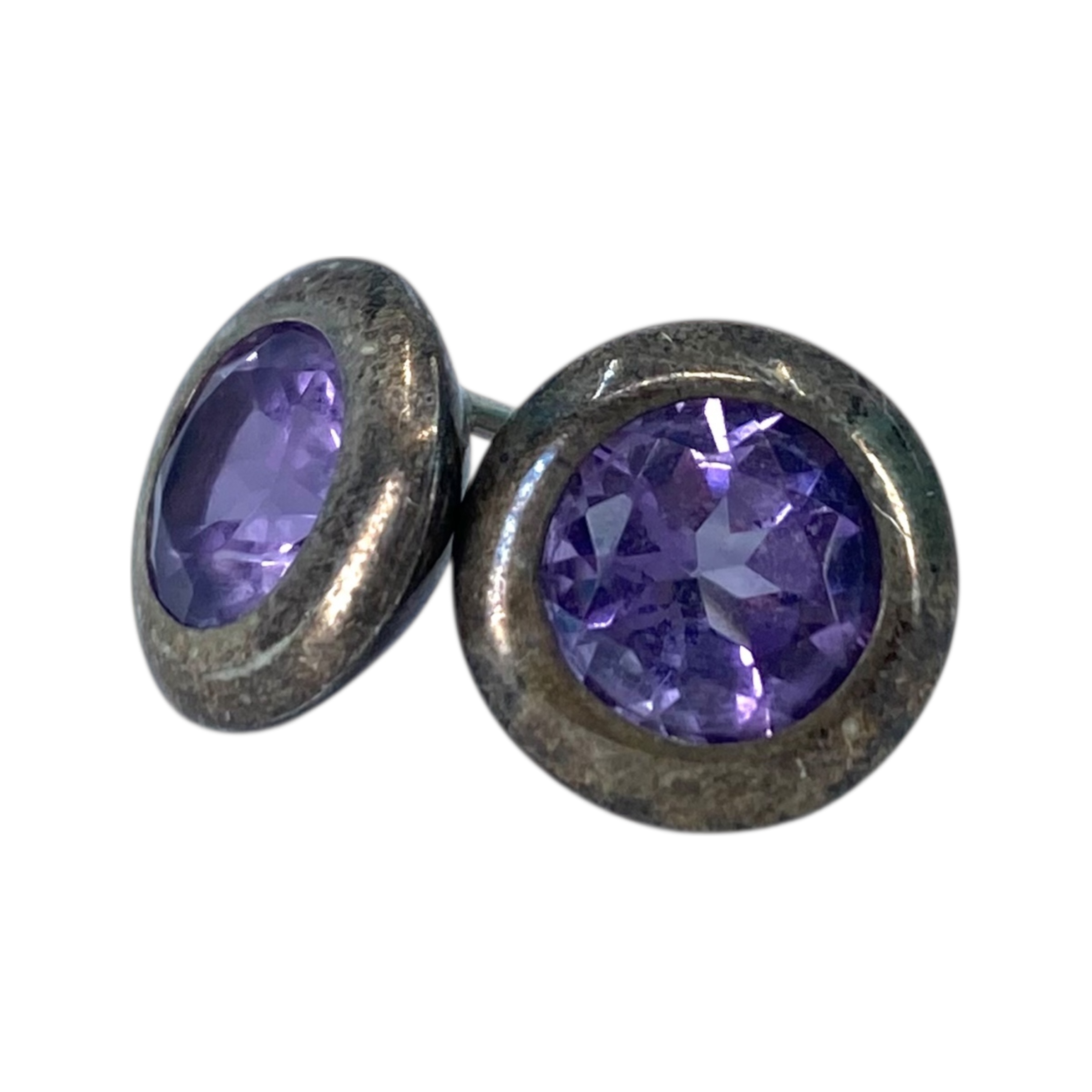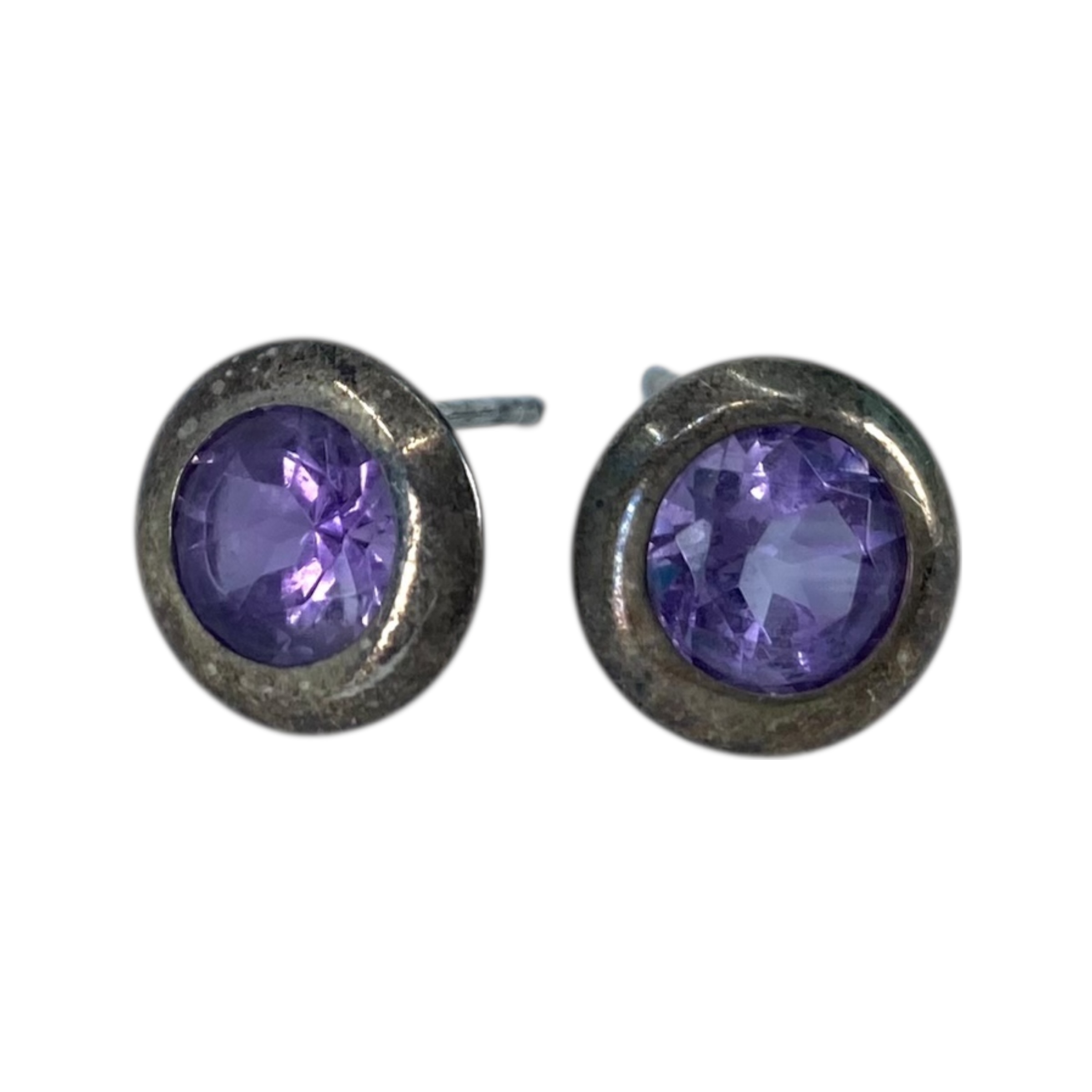 Sterling Round Amethyst Stud Earrings 4g