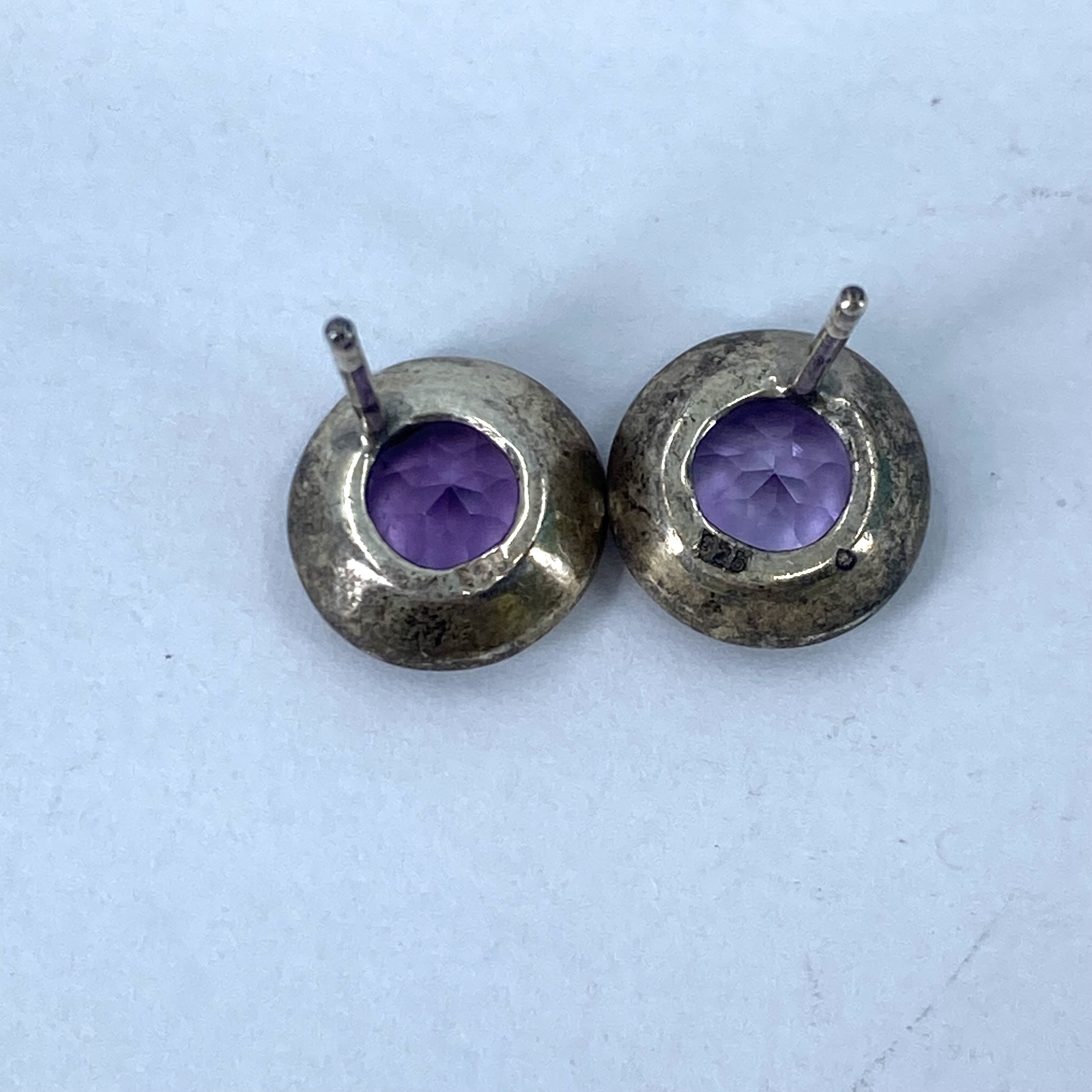 Sterling Round Amethyst Stud Earrings 4g, engraved 925